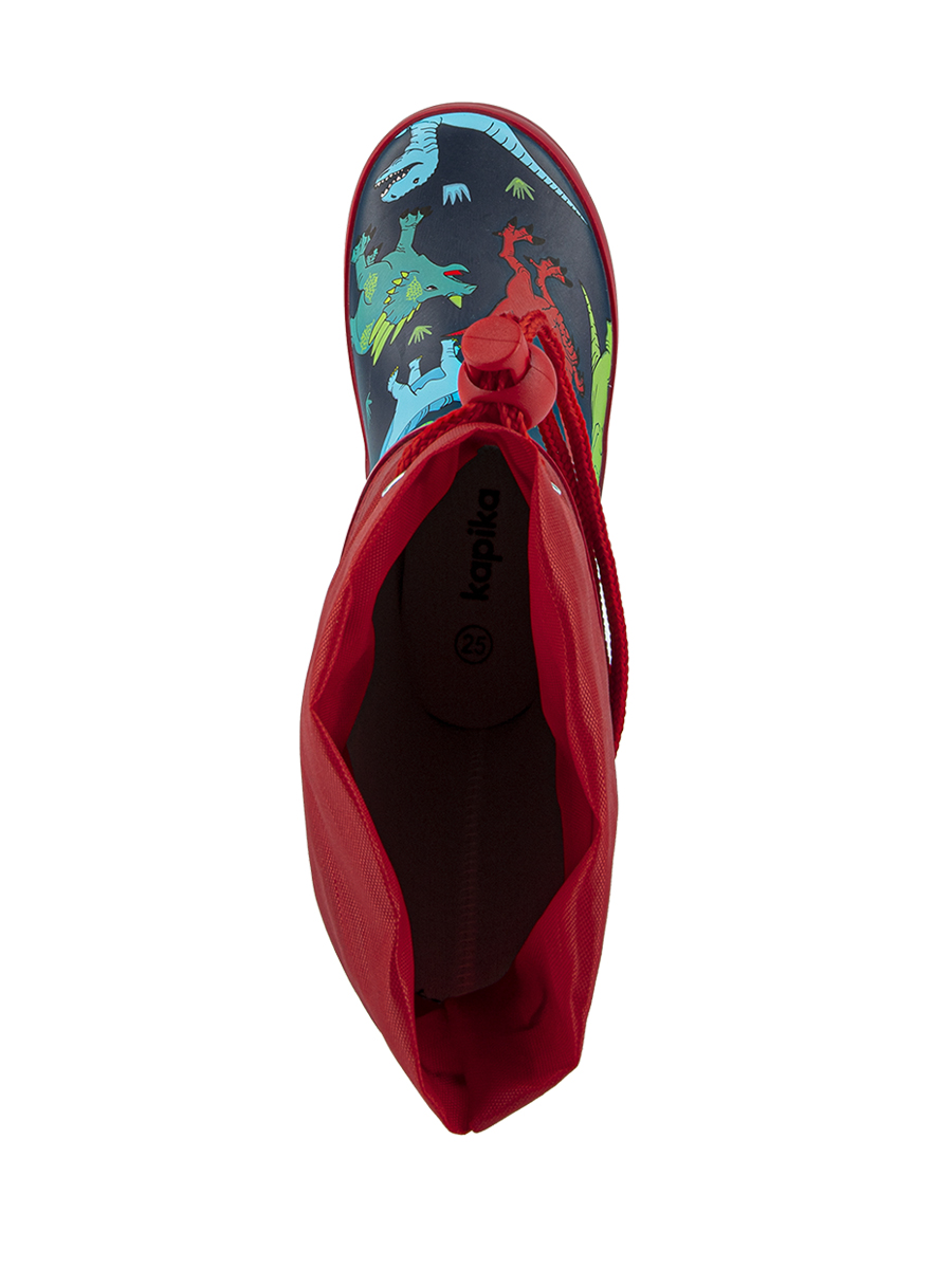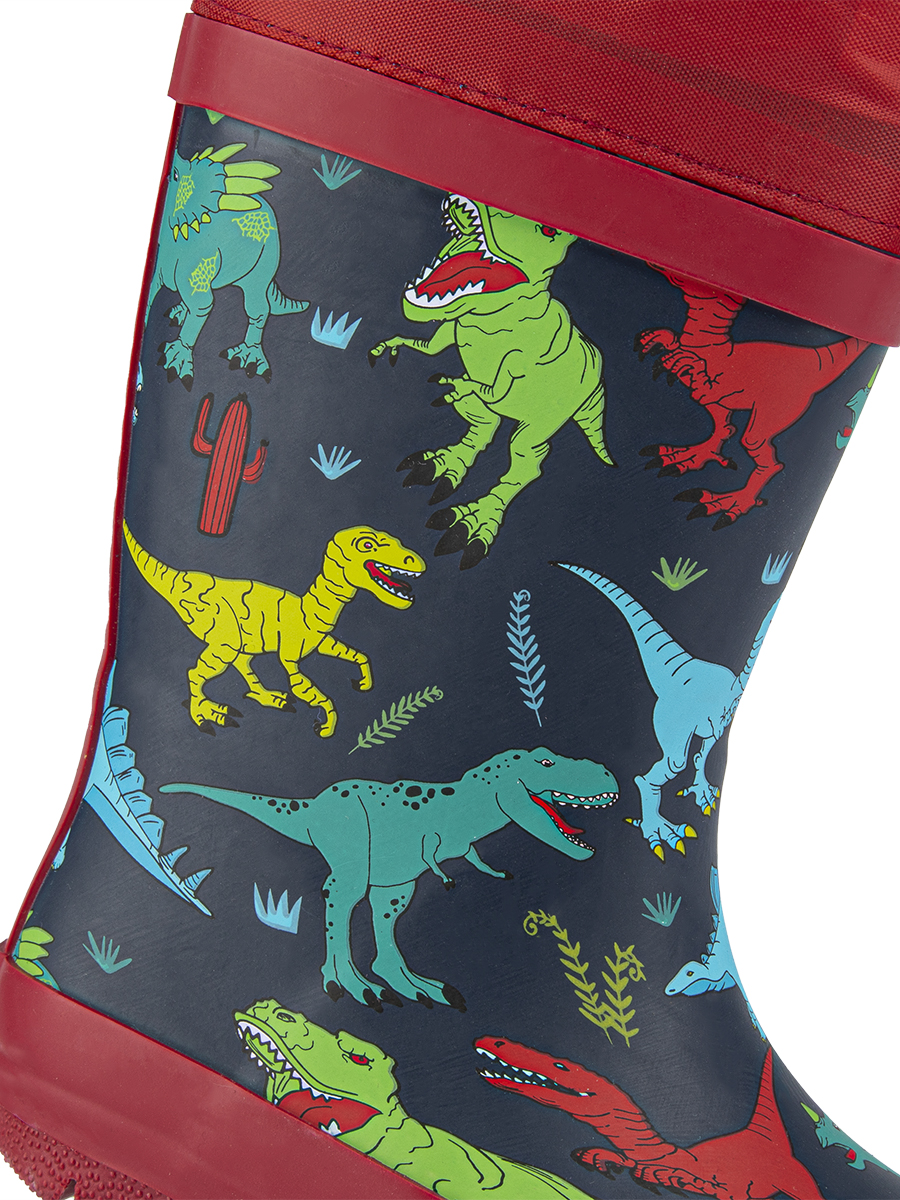 Резиновые сапожки сохранят ножки сухими в дождливую погоду. Насыщенный цвет и веселый принт привлекут внимание каждого мальчишки. Модель оснащена манжетом с кулиской, которую можно затянуть по ножке и внутрь не попадёт ни одна капелька дождя. Внутри сапожек текстильная подкладка и выемная стелька, которую можно почистить и просушить при необходимости.