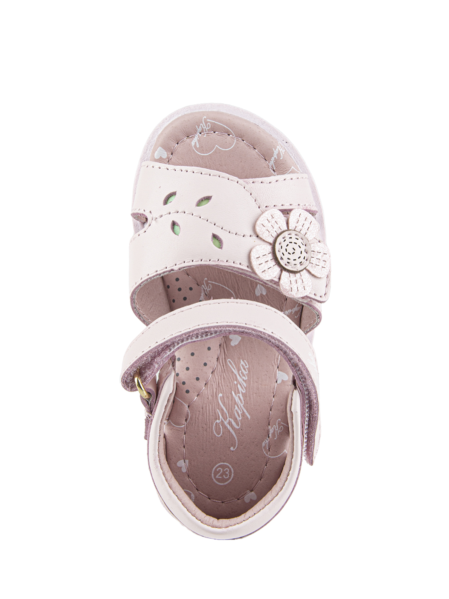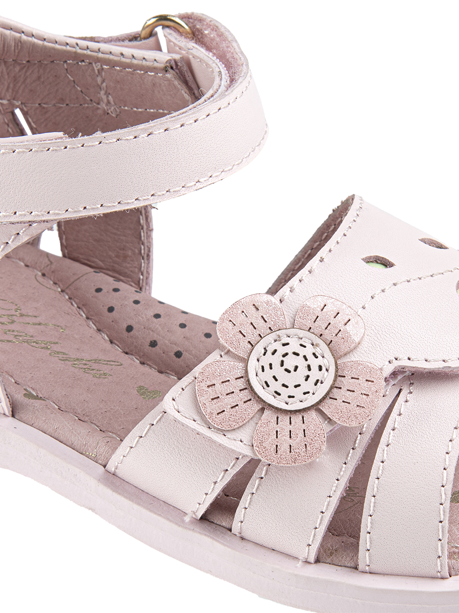 Сандалии для девочки изготовлены из натуральной кожи (верх, подкладка и стелька). Сандалии имеют жесткий задник и подсводник для поддержки и формирования правильной формы стопы. Подошва произведена из термопластичной резины (TPR), что обеспечивает долговечность и хорошее сцепление с поверхностью.