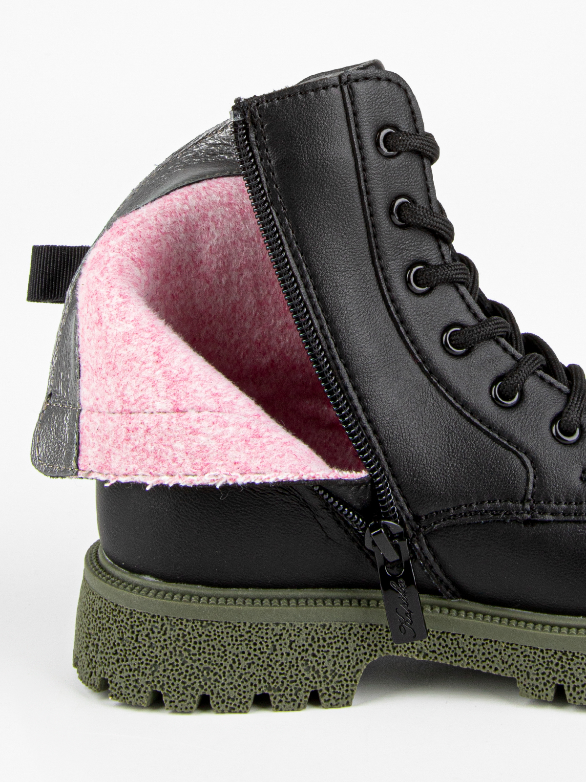 Стильные демисезонные ботинки для девочки.Утепленная подкладка защищает от холода. Подошва из ТЭПа продлевает срок службы обуви и хорошо сохраняет тепло. Антибактериальная стелька обеспечит гигиеничность.Застежка молния облегчает процесс обувания.