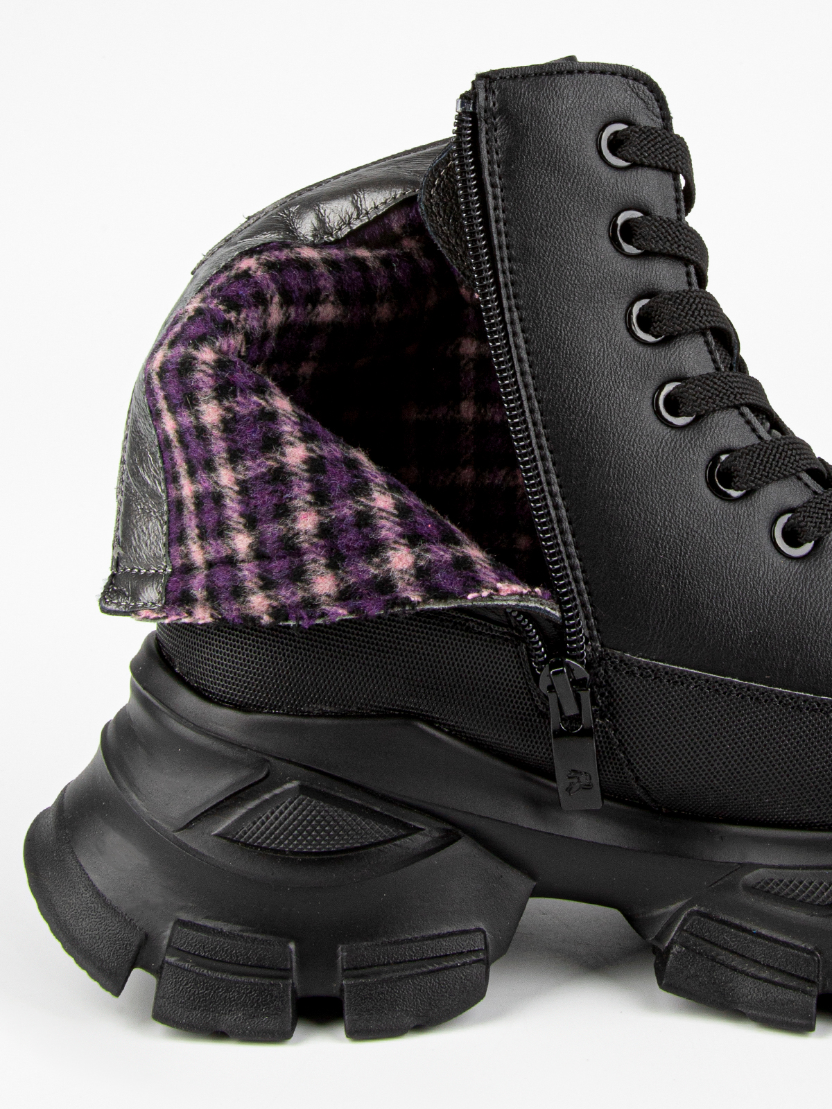 Стильные демисезонные ботинки для девочки оснащены утеплённой подкладкой с содержанием шерсти, которая надёжно защищает от холода. Подошва из материалов ЭВА и резины обеспечивает лёгкость и предотвращает скольжение. Антибактериальная стелька гарантирует гигиеничность, а застёжка-молния облегчает процесс обувания.