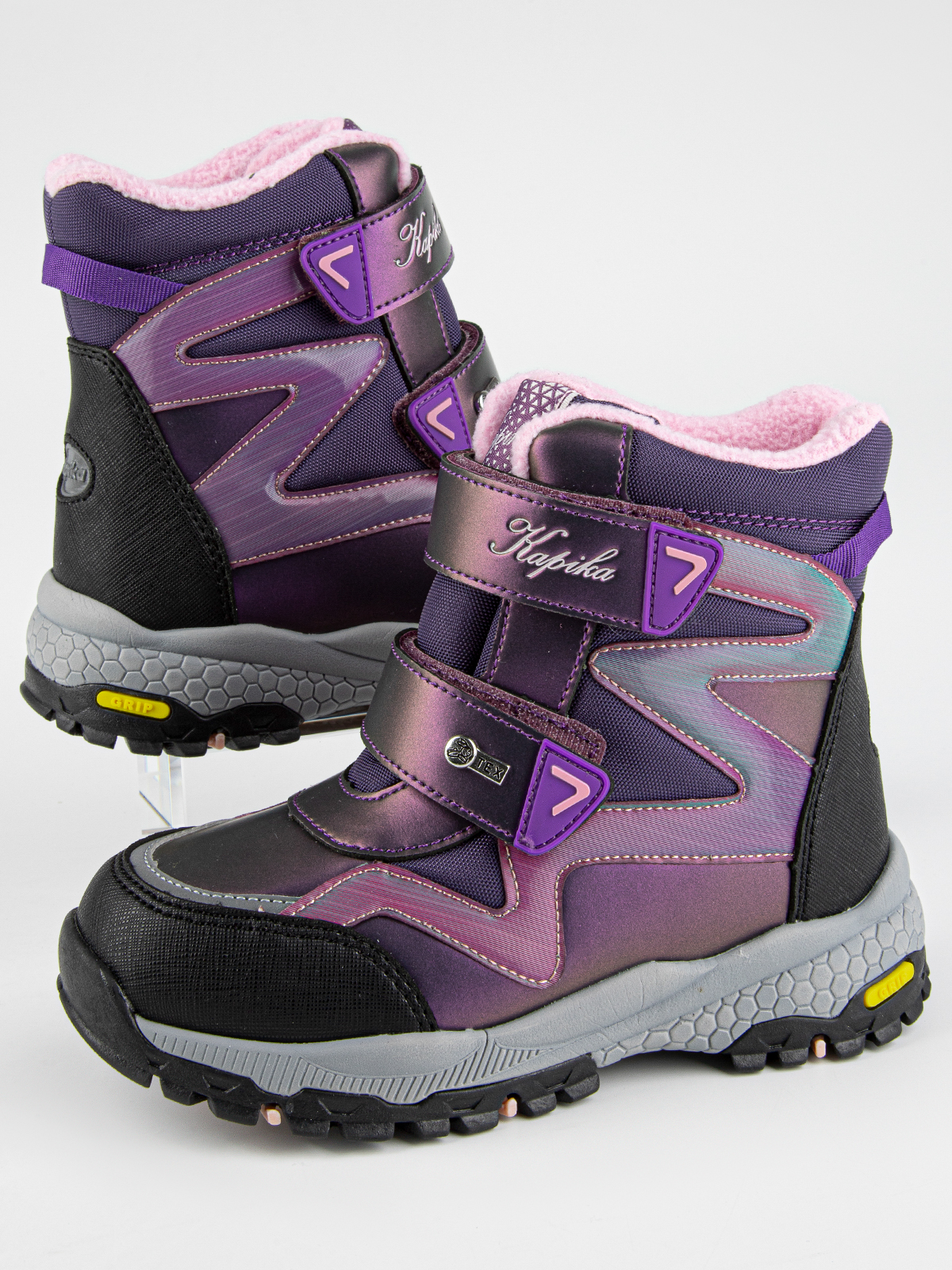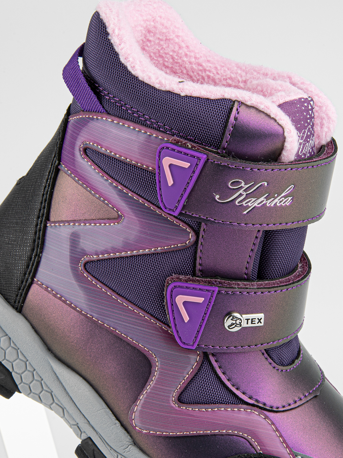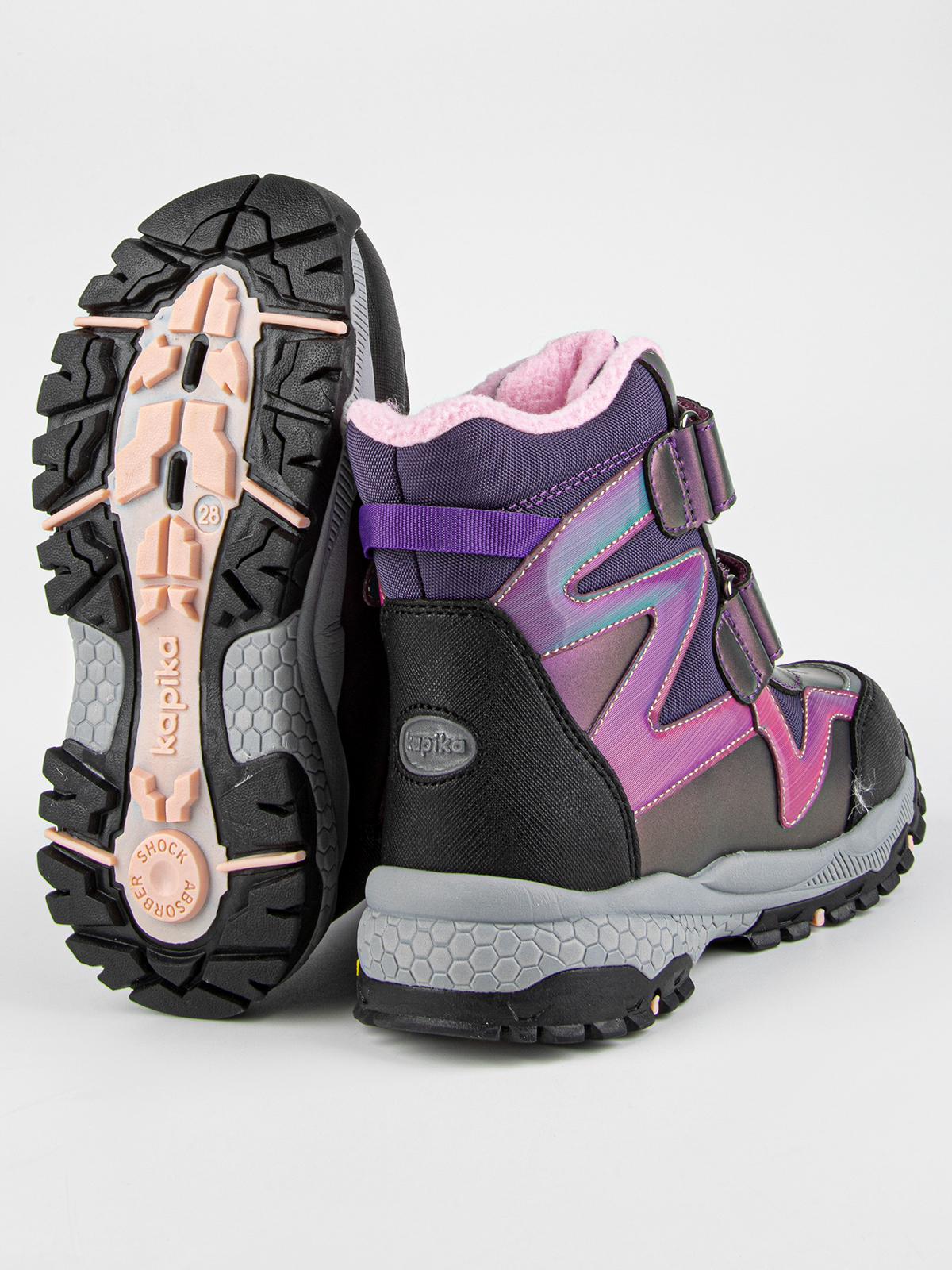 Зимние ботинки с мембраной для девочки – надежная защита от холода и влаги. Подошва, состоящая из материалов ЭВА и ТЭПа, обеспечивает легкость и, при этом, предотвращает скольжение. Модель оснащена теплой стелькой с фольгой, которая уберегает от охлаждения и обеспечивает сохранение тепла в течение длительного времени. Купить мембранные ботинки Kapika легко- необходимо всего лишь оформить заказ в фирменном интернет магазине.