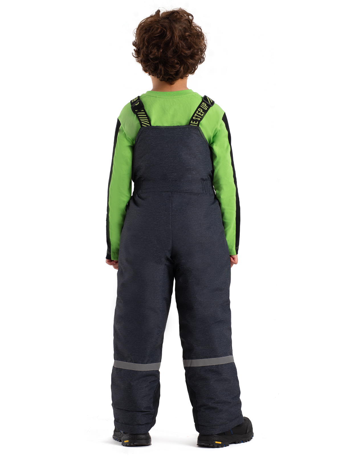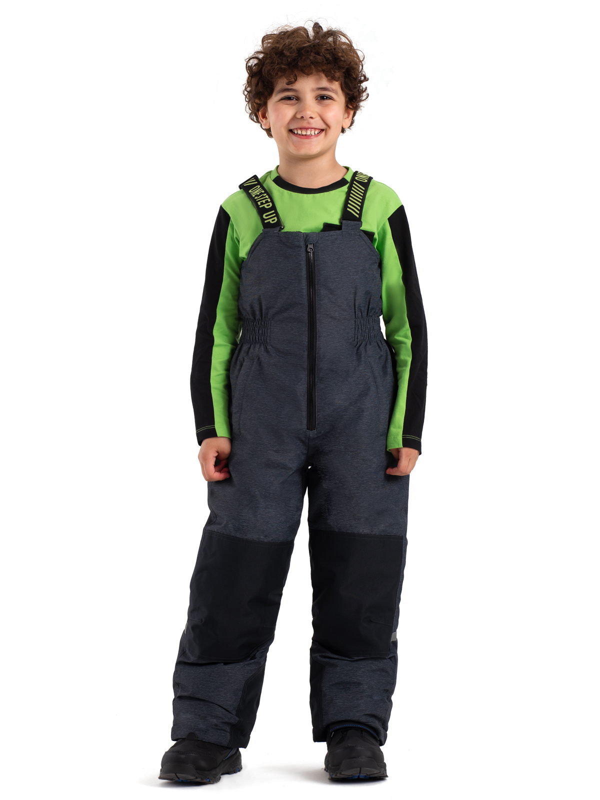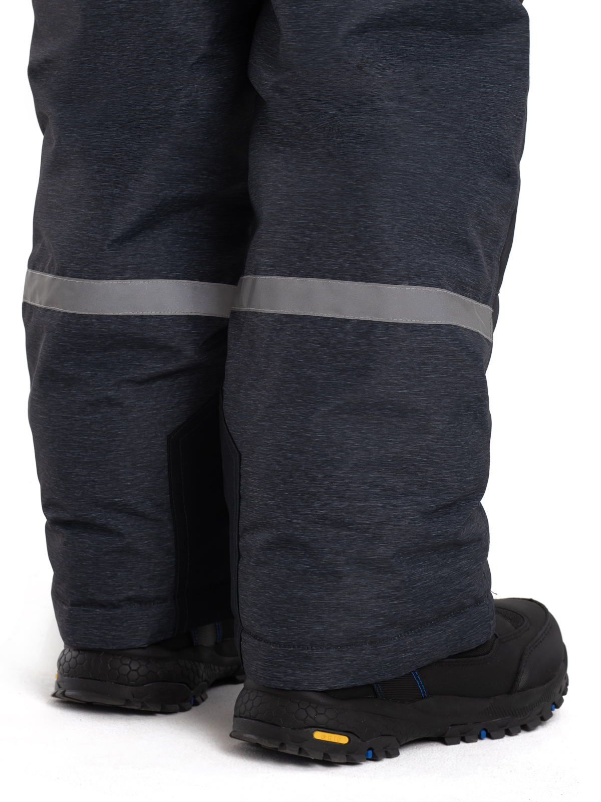Зимние утеплённые брюки в практичном сером цвете — надёжная модель для активных прогулок. Современная мембрана с показателями 8000мм/5000г/м2/24ч обеспечивает отличную защиту от влаги и эффективную терморегуляцию, а синтепоновый утеплитель плотностью 200 г/м² гарантирует тепло в холодную погоду. Комфортная конструкция включает застёжку-молнию, два удобных кармана, эластичную резинку по талии и регулируемые эластичные лямки. Усиленные вставки по низу брючин повышают износостойкость модели. Практичные детали: внутренние снежные гетры защищают от попадания снега, светоотражающие элементы обеспечивают безопасность в тёмное время суток. Яркие жёлтые акценты на фурнитуре добавляют динамичности образу.