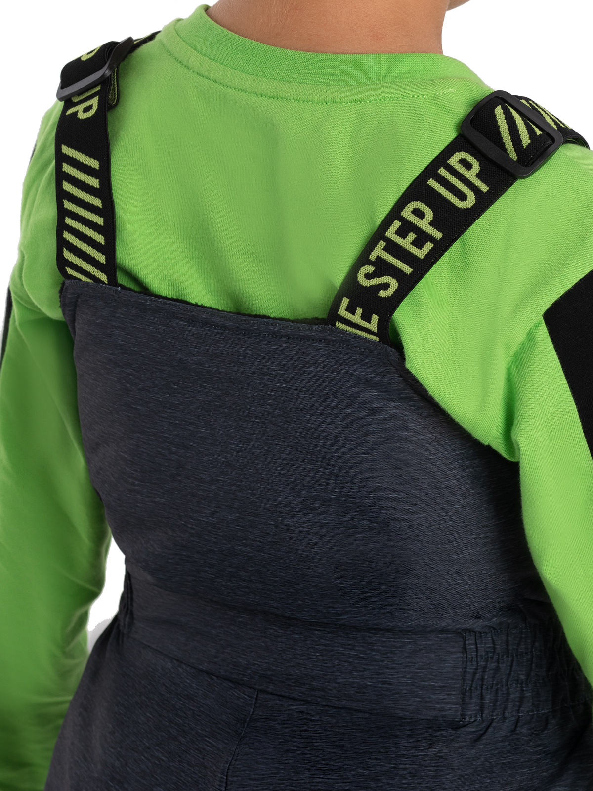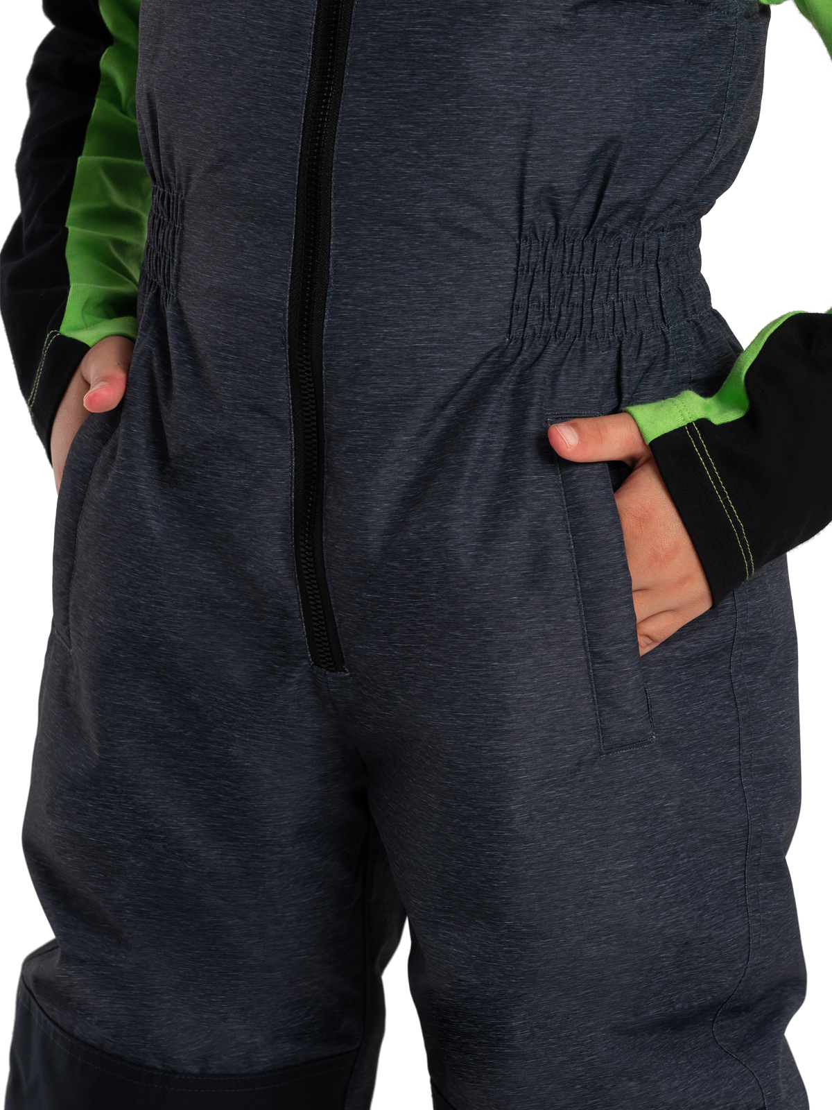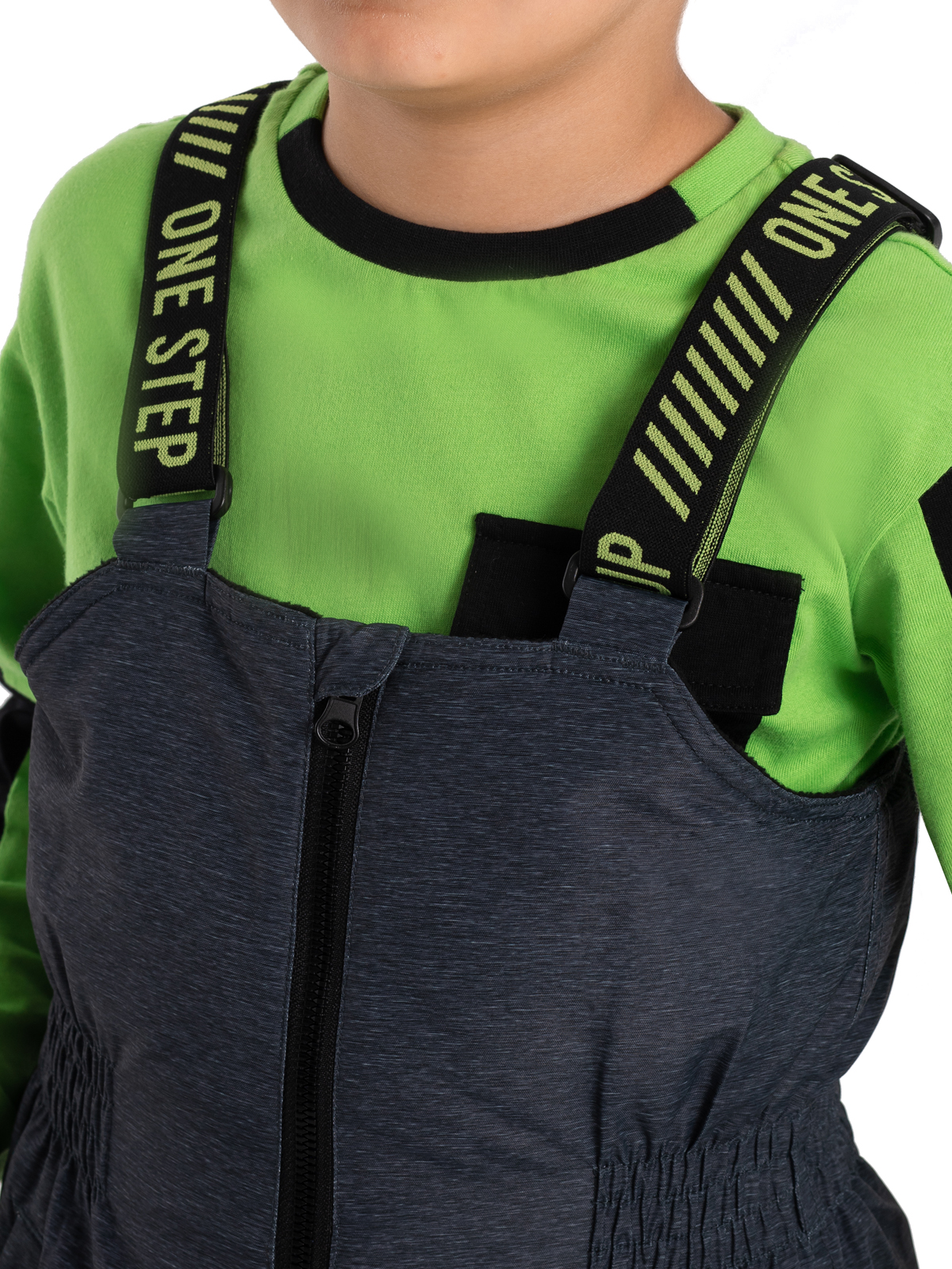 Зимние утеплённые брюки в практичном сером цвете — надёжная модель для активных прогулок. Современная мембрана с показателями 8000мм/5000г/м2/24ч обеспечивает отличную защиту от влаги и эффективную терморегуляцию, а синтепоновый утеплитель плотностью 200 г/м² гарантирует тепло в холодную погоду. Комфортная конструкция включает застёжку-молнию, два удобных кармана, эластичную резинку по талии и регулируемые эластичные лямки. Усиленные вставки по низу брючин повышают износостойкость модели. Практичные детали: внутренние снежные гетры защищают от попадания снега, светоотражающие элементы обеспечивают безопасность в тёмное время суток. Яркие жёлтые акценты на фурнитуре добавляют динамичности образу.