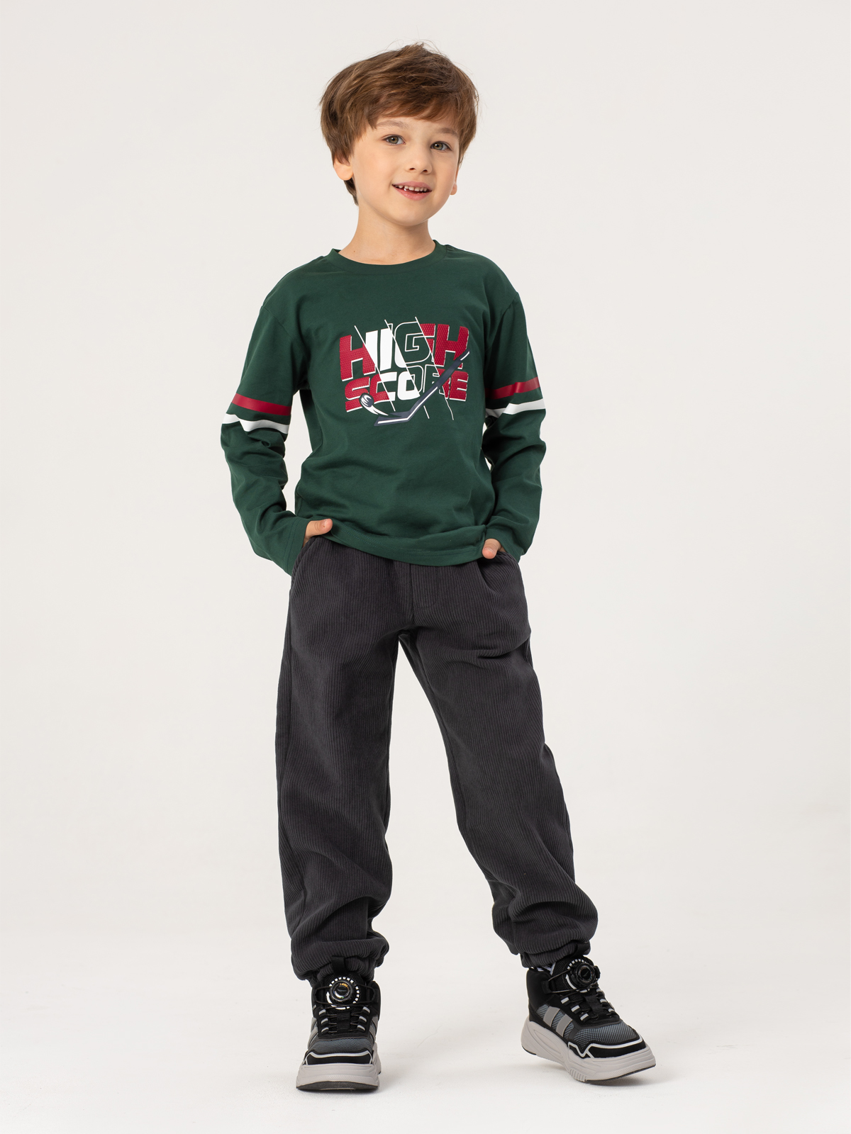 Вельветовые брюки для мальчика в темно-сером цвете — это идеальный выбор для комфортного и стильного образа. Изготовленные из мягкого вельвета с флисом внутри, они обеспечивают тепло и уют в прохладную погоду. Эластичная резинка по низу брючин и в поясе гарантирует удобную посадку и свободу движений. Практичность модели дополняют два боковых кармана. Универсальный темно-серый цвет позволяет сочетать брюки как с официальной одеждой, так и с повседневной, делая их отличным выбором для активных детей.