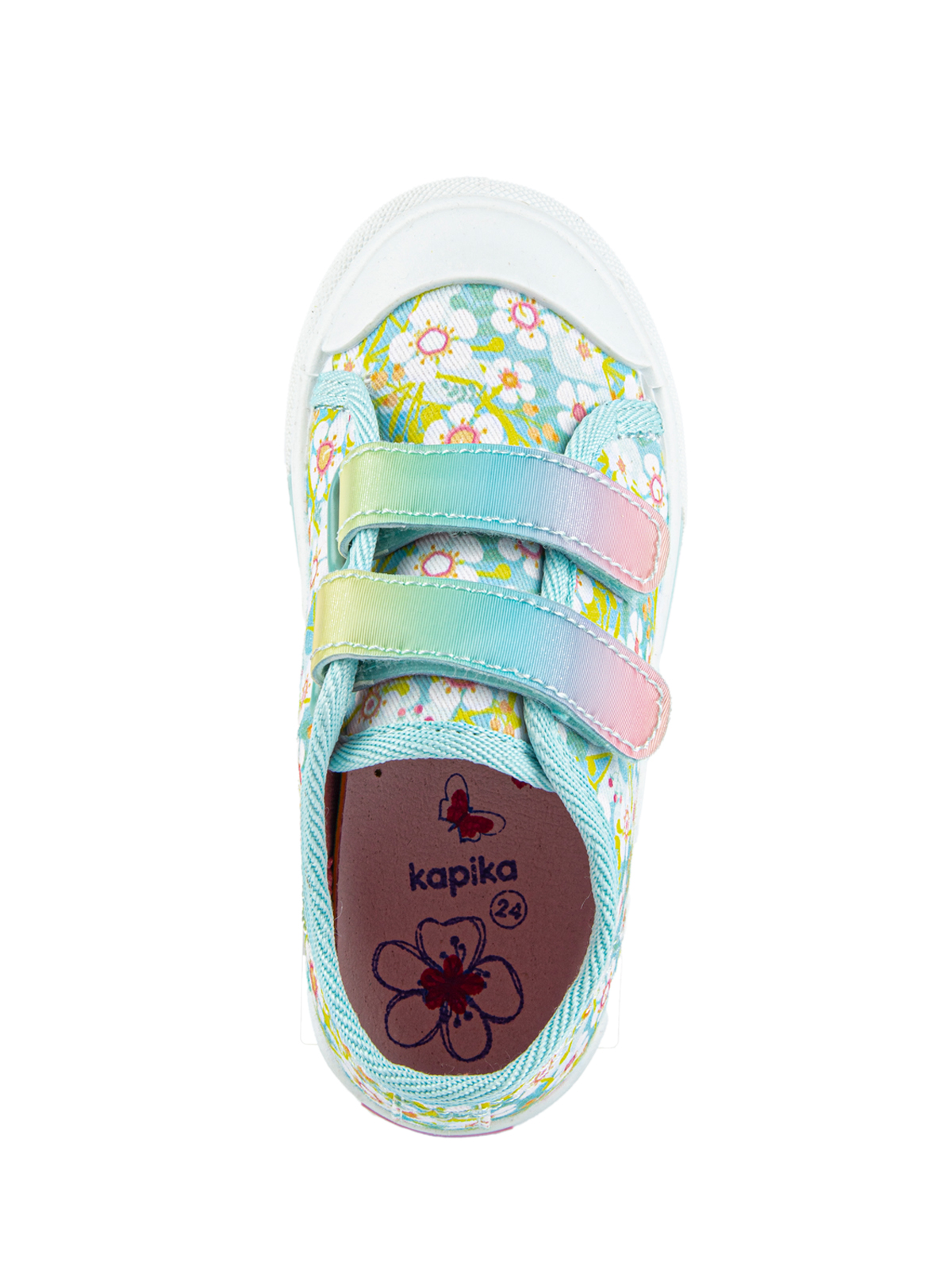 Кеды Капика из плотного хлопка с яркими застежками-липучками и принтом обязательно понравятся каждой девочке. Подкладка из хлопка, гибкая подошва с защищенной носовой частью из ПВХ и кожаная стелька обеспечивают комфорт и удобство при ношении. Капика создает качественную и стильную обувь для маленьких модниц.