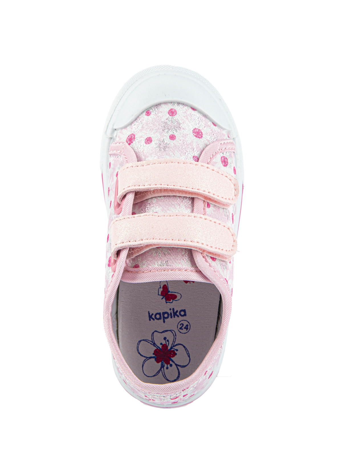 Кеды Капика из плотного хлопка с яркими застежками-липучками и принтом обязательно понравятся каждой девочке. Подкладка из хлопка, гибкая подошва с защищенной носовой частью из ПВХ и кожаная стелька обеспечивают комфорт и удобство при ношении. Капика создает качественную и стильную обувь для маленьких модниц.
