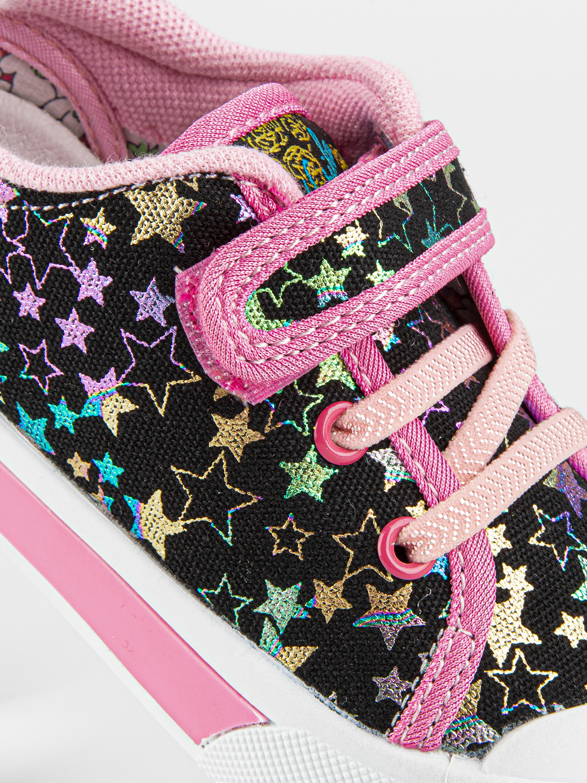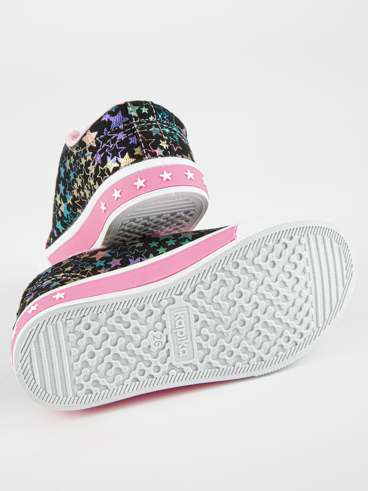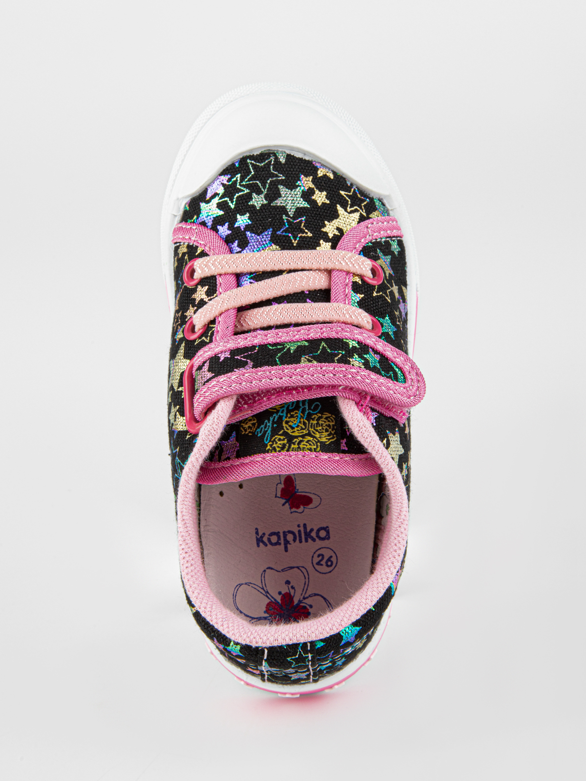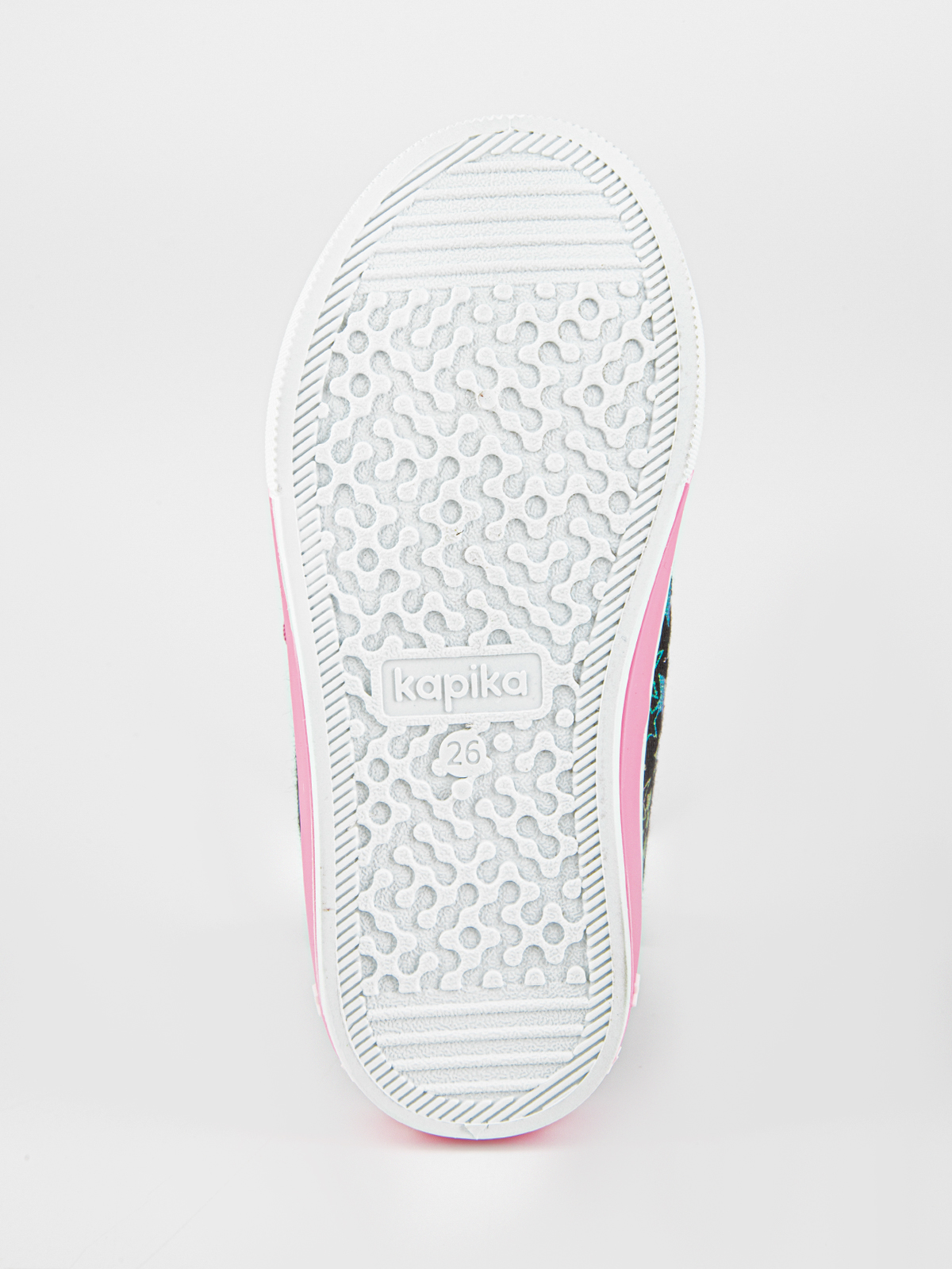 Кеды из плотного хлопка с ярким оригинальным принтом — стильный и удобный выбор для активных детей. Хлопковая подкладка обеспечивает мягкость и комфорт, подошва из ПВХ гарантирует лёгкость и хорошее сцепление с поверхностью, а шнурки-резинки позволяют быстро и легко надевать обувь без лишних хлопот. Кожаная антибактериальная стелька способствует поддержанию гигиены и свежести ног в течение всего дня. Эти кеды объединяют в себе практичность и яркий дизайн, идеально подходя для повседневной носки.