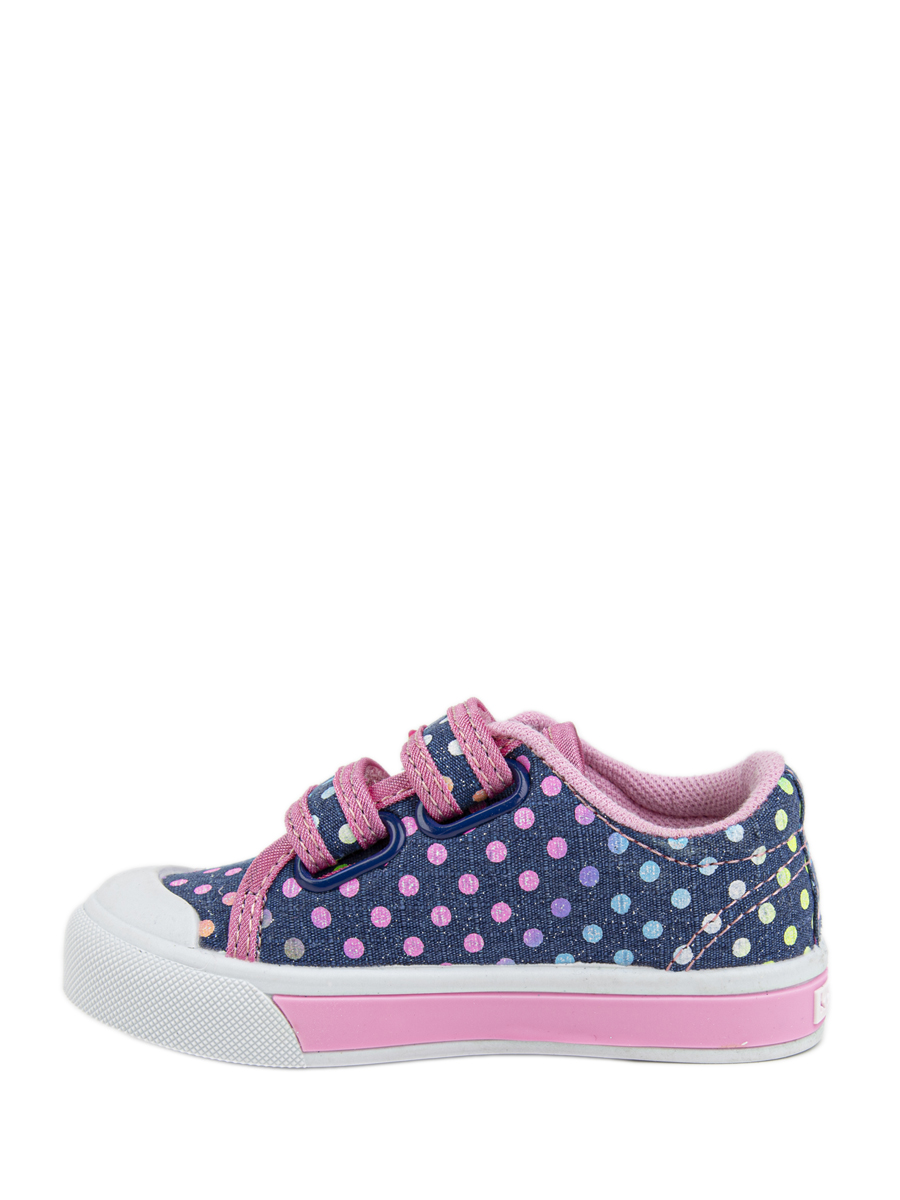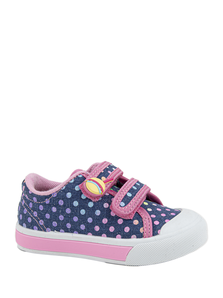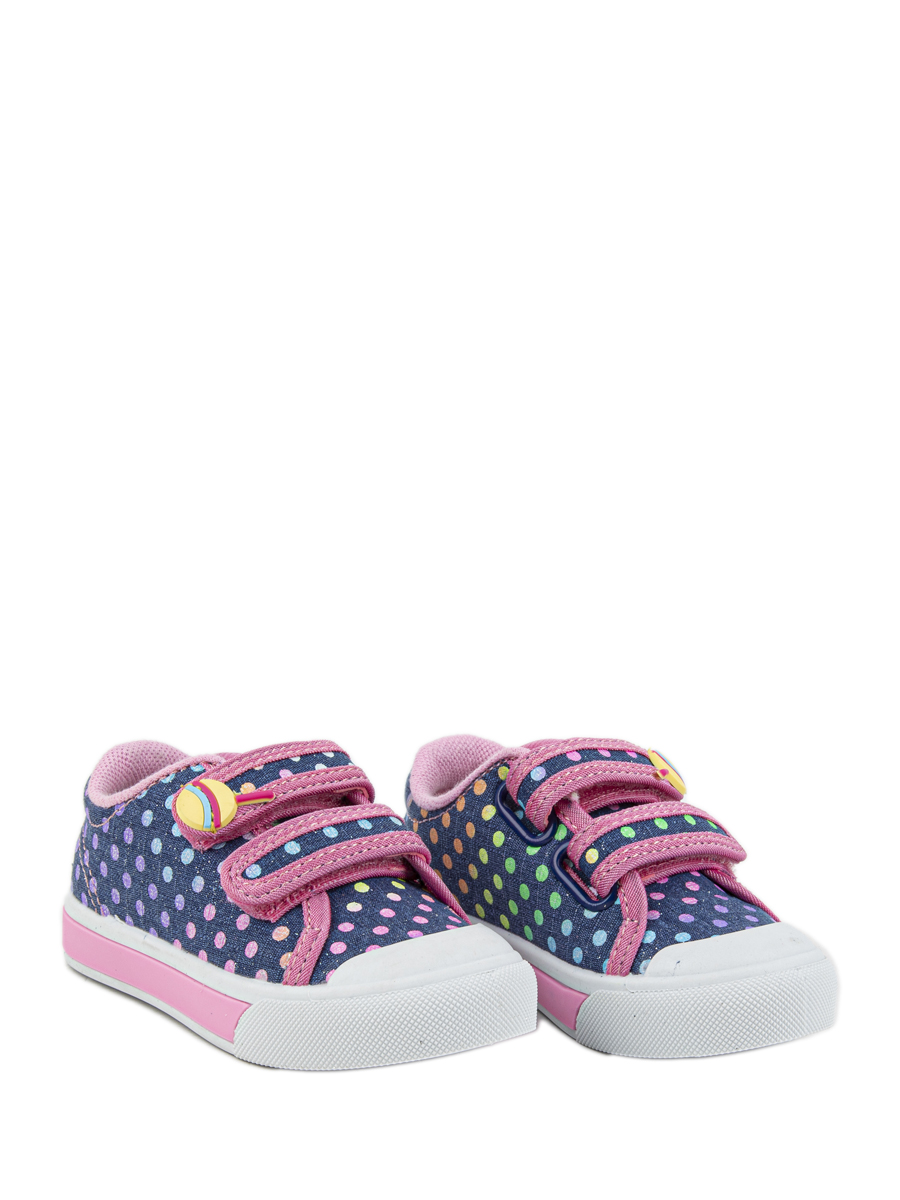 Кеды из плотного хлопка с ярким принтом и разноцветными застежками-липучками понравятся каждой девочке. Хлопковая подкладка, резиновая гибкая подошва с защищенным носом и кожаная стелька обеспечат комфорт и удобство при носке.
