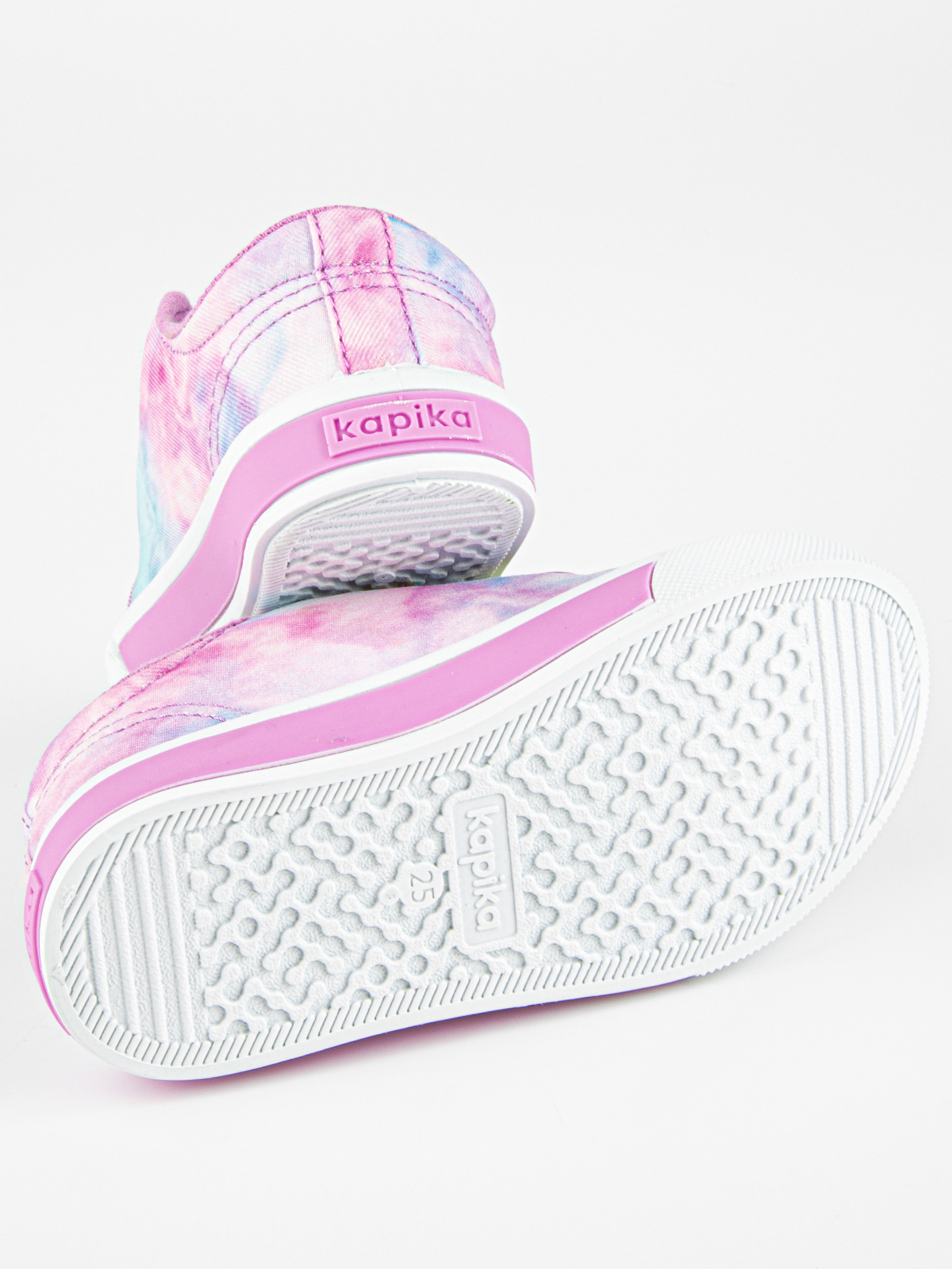 Кеды из плотного хлопка — стильный и удобный выбор для активных детей. Хлопковая подкладка обеспечивает мягкость и комфорт, подошва из ПВХ гарантирует лёгкость и отличное сцепление с поверхностью, а застёжки-липучки позволяют быстро и легко надевать обувь без лишних хлопот. Кожаная антибактериальная стелька способствует поддержанию гигиены и свежести ног в течение всего дня. Эти кеды объединяют практичность и яркий дизайн, идеально подходя для повседневной носки.