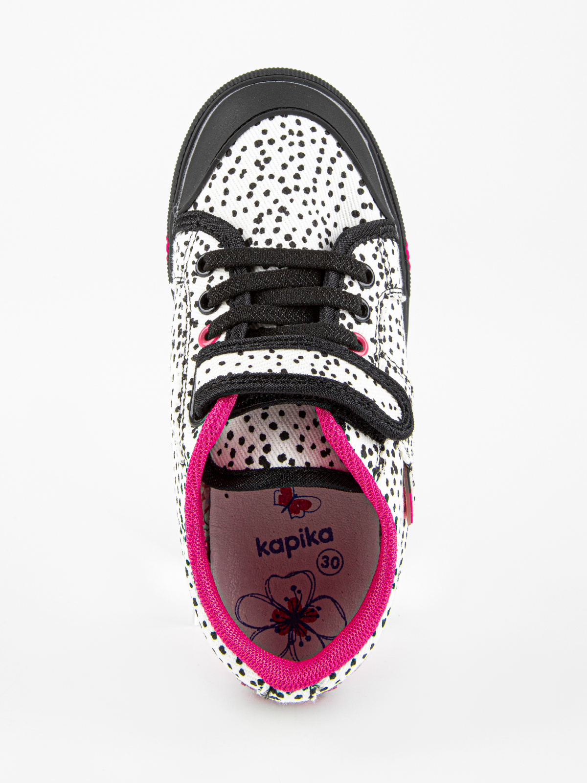 Кеды из плотного хлопка с ярким оригинальным принтом — стильный и удобный выбор для активных детей. Хлопковая подкладка обеспечивает мягкость и комфорт, подошва из ПВХ гарантирует лёгкость и хорошее сцепление с поверхностью, а шнурки-резинки позволяют быстро и легко надевать обувь без лишних хлопот. Кожаная антибактериальная стелька способствует поддержанию гигиены и свежести ног в течение всего дня. Эти кеды объединяют в себе практичность и яркий дизайн, идеально подходя для повседневной носки.