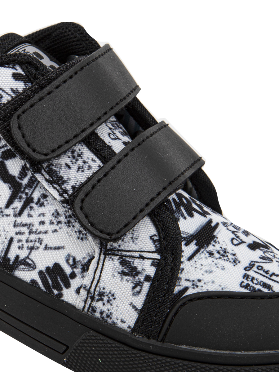 Текстильные кеды с яркими акцентами и липучками оценит каждый мальчик. Хлопковая подкладка и кожаная стелька обеспечат комфорт и удобство при носке, дополнительная защита на носу продлят срок службы обуви
