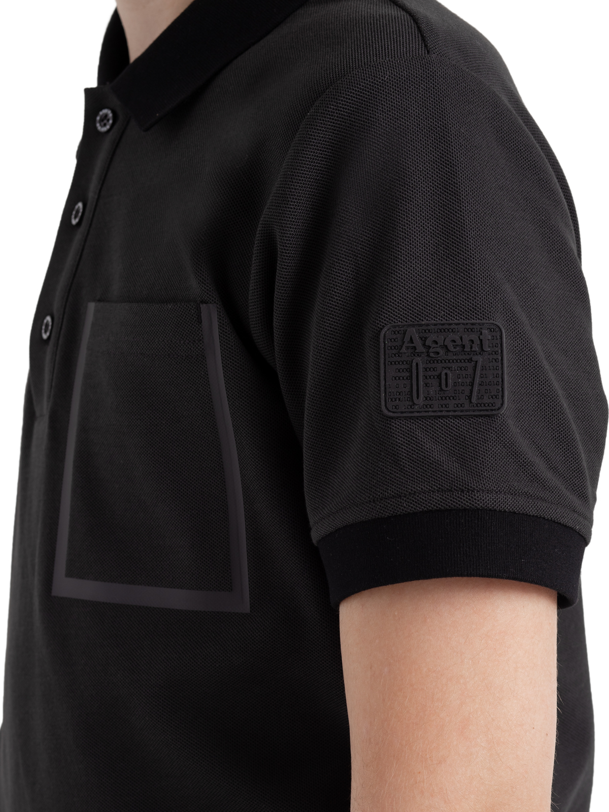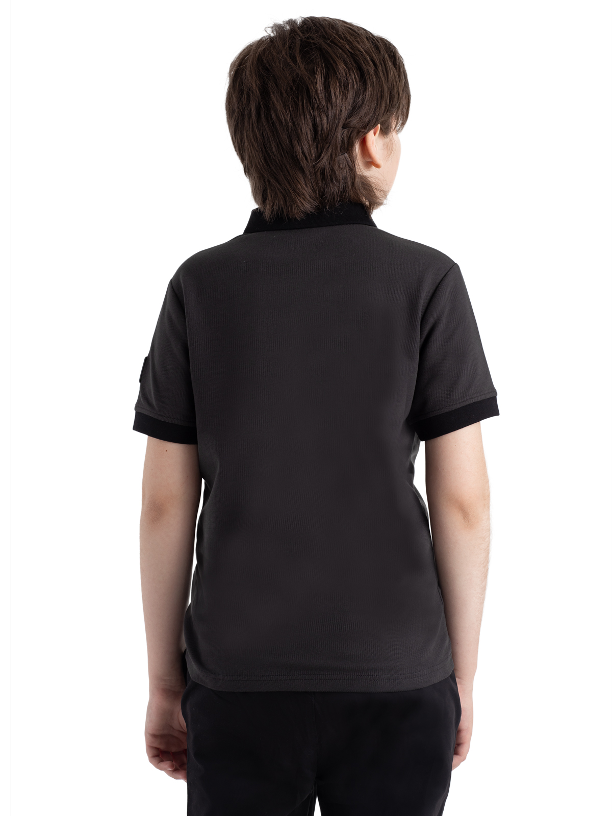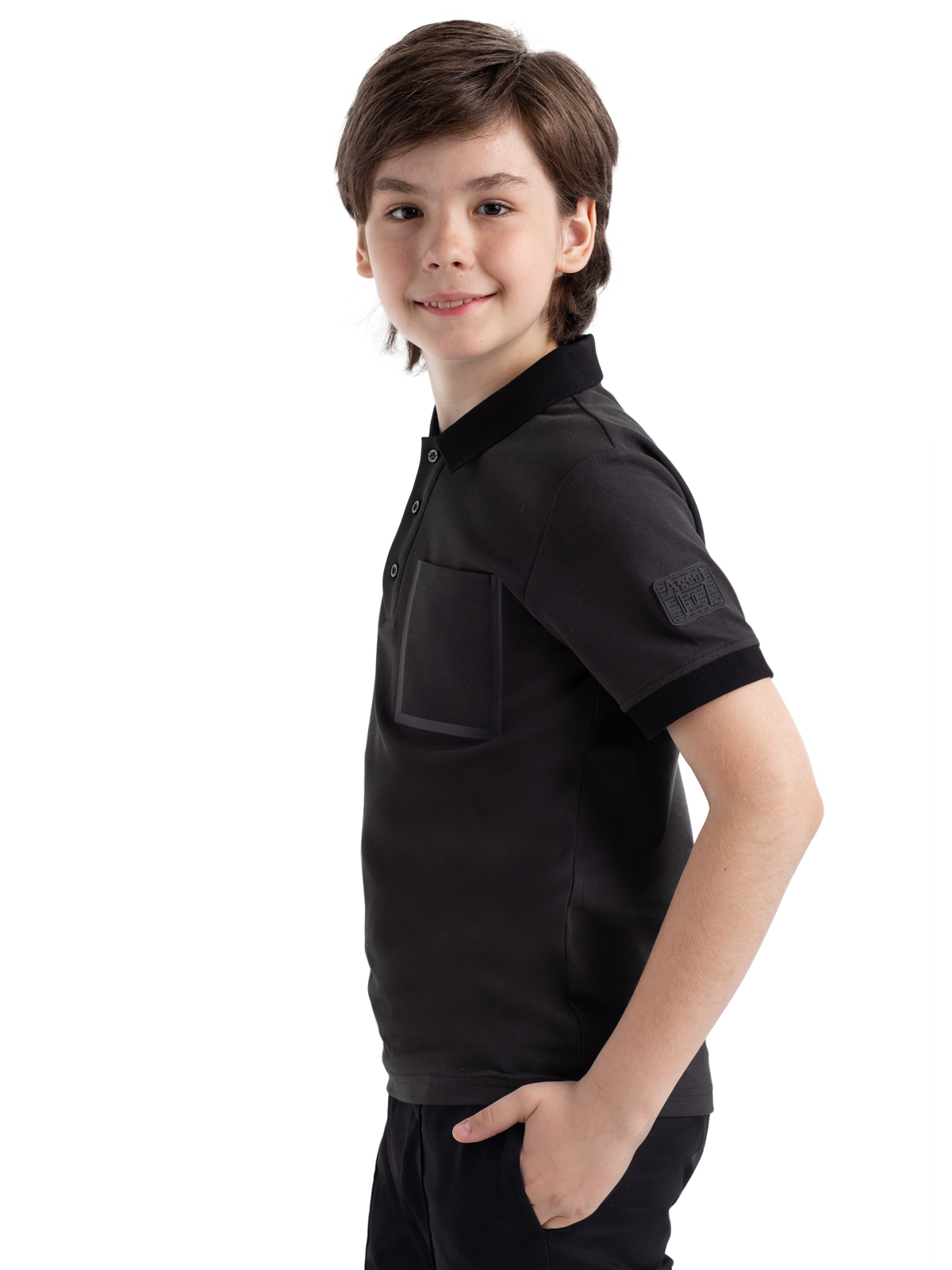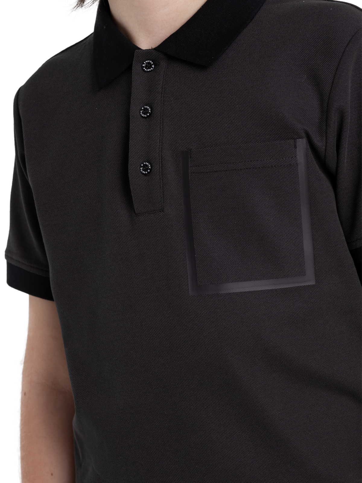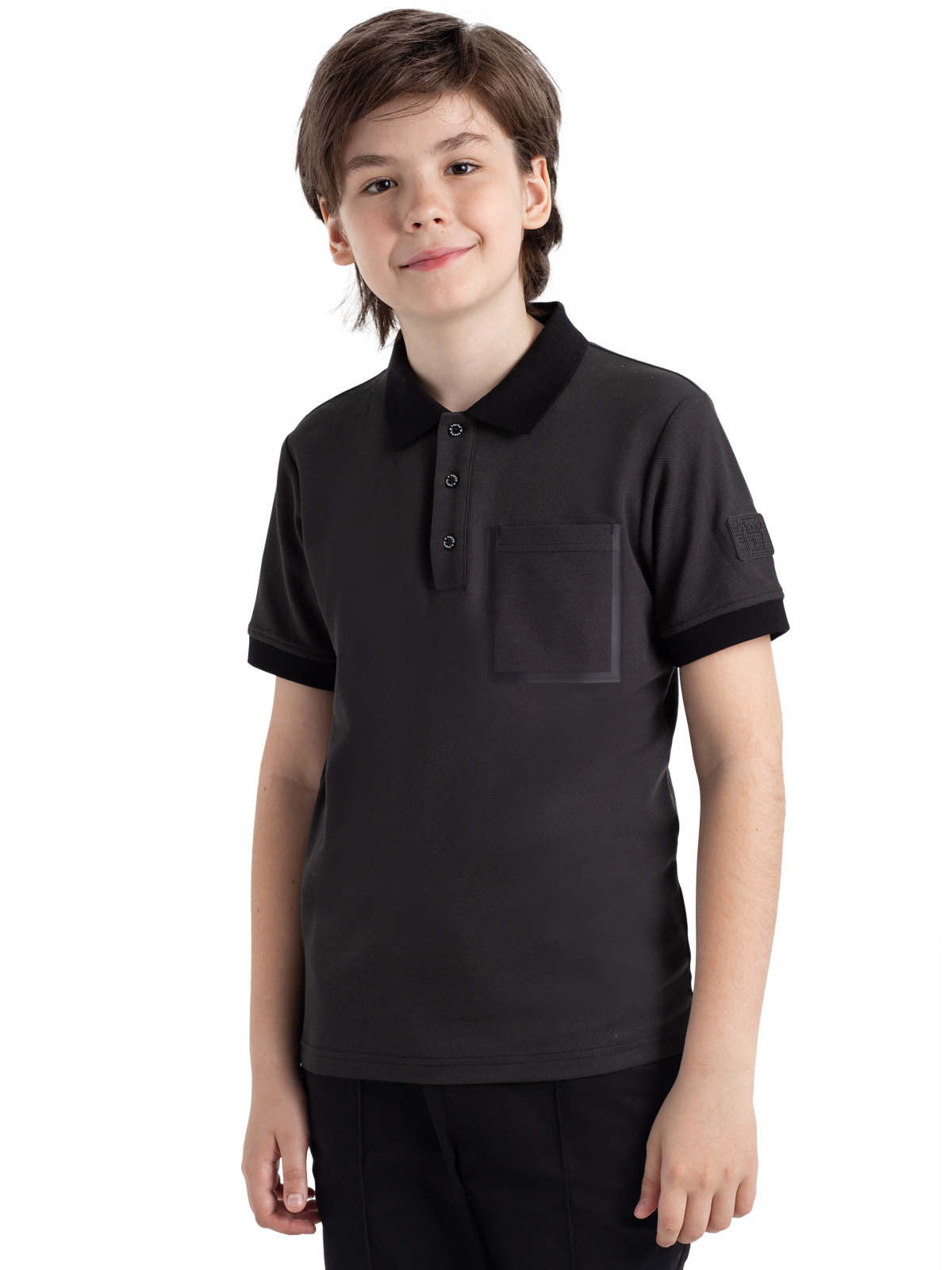 Футболка-поло для школы с коротким рукавом, отложным воротничком и застежками на три пуговицы выполнена из высококачественного хлопка черного цвета. Воротник и манжеты футболки-поло выполнены из риба. Дополнена силиконовым патчем на рукаве и функциональным кармашком на груди. Воротник школьного поло не теряет форму после стирки. Все швы аккуратно обработаны и не раздражают кожу ребенка.
