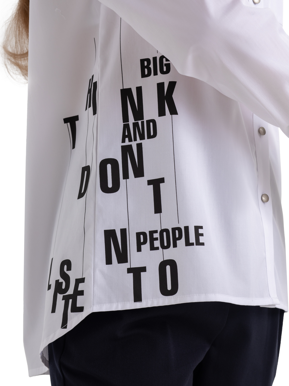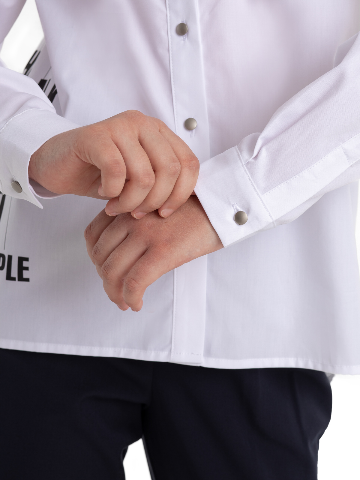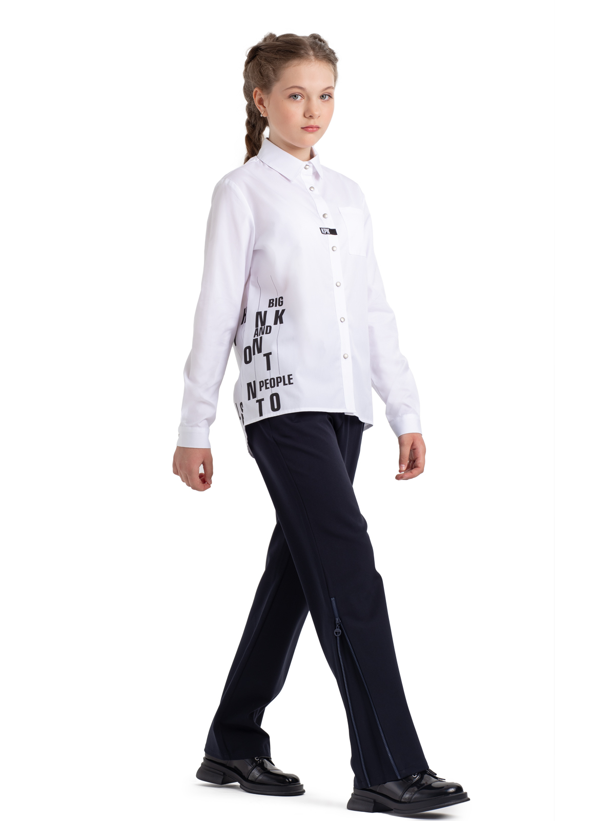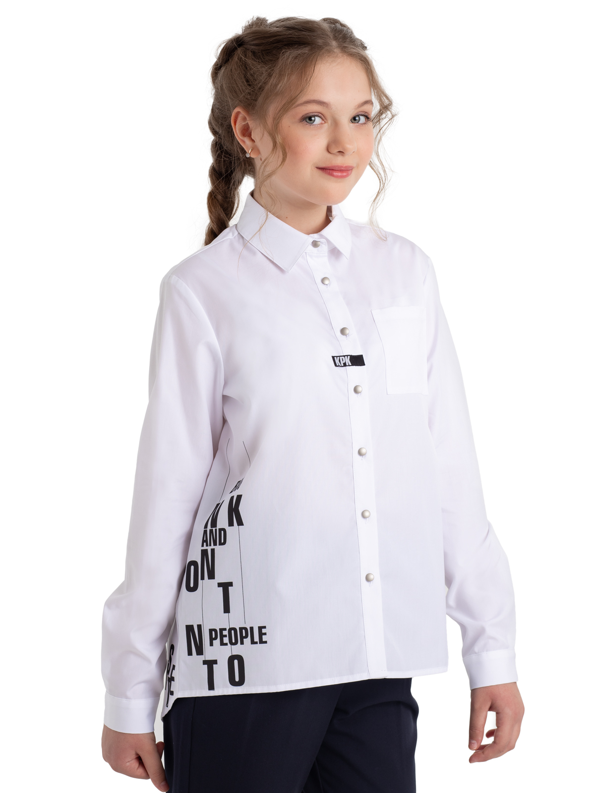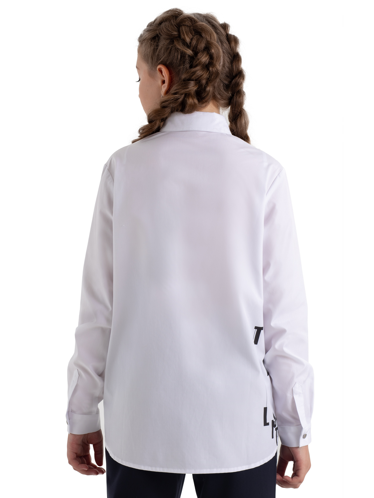 Школьная рубашка для девочки в классическом белом цвете из высококачественного поликоттона дополнена контрастными принтами по одному боку изделия. Модель рубашки для школы классического силуэта хорошо сочетается с юбками, брюками или джинсами. Комфортная дышащая ткань легка в уходе, не скатывается, держит форму. Рубашка отлично подойдет как для школьных занятий, и торжественных мероприятий так и для ежедневной носки.