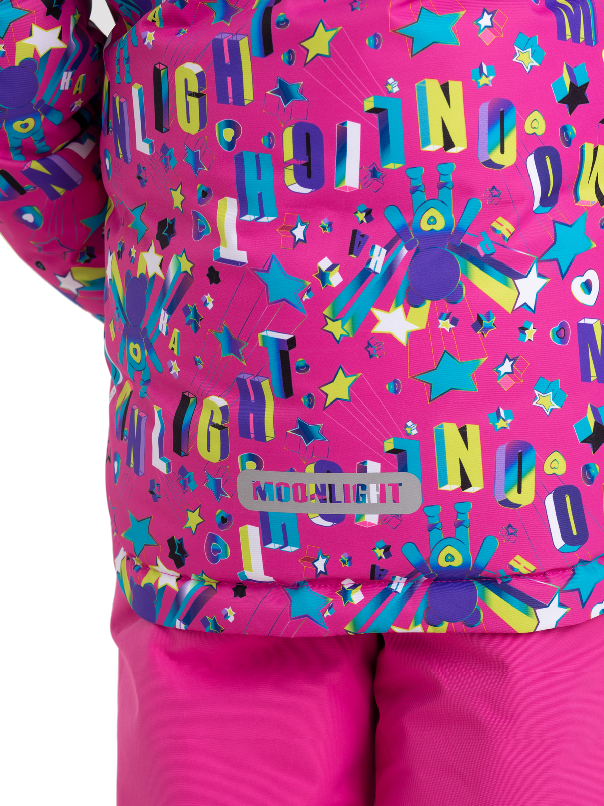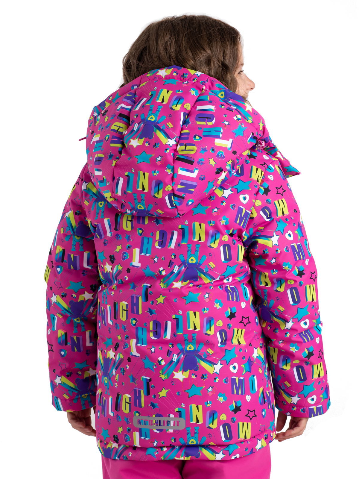 В этой зимней куртке ребенок будет не только защищен от всех зимних непогод, но и будет выглядеть ярко и стильно. Пуховик с яркими принтами изготовлен из влагозащитной, грязеотталкивающей, не продуваемой мембранной ткани 8000мм/5000г/м2/24ч, а утеплитель из искусственного пуха 350г/м2 не даст ребенку замерзнуть. Пуховик со съемным капюшоном, на регулируемой кулисе, имеет снежную «юбку», служащую для исключения попадания снега при падении или катания по глубокому снегу, а также – для защиты от ветра. Центральная молния закрыта ветрозащитной планкой, карманы на липучке. Куртка дополнена тематическими светоотражающими элементами на спинке и рукаве, защищающими в темное время суток, также имеется съемный брелок с милым мишкой. Манжеты из риба сохраняют тепло. Рефлективная подкладка с фольгированным принтом (OMNI-HEAT) эффективно удерживает тепло внутри.
