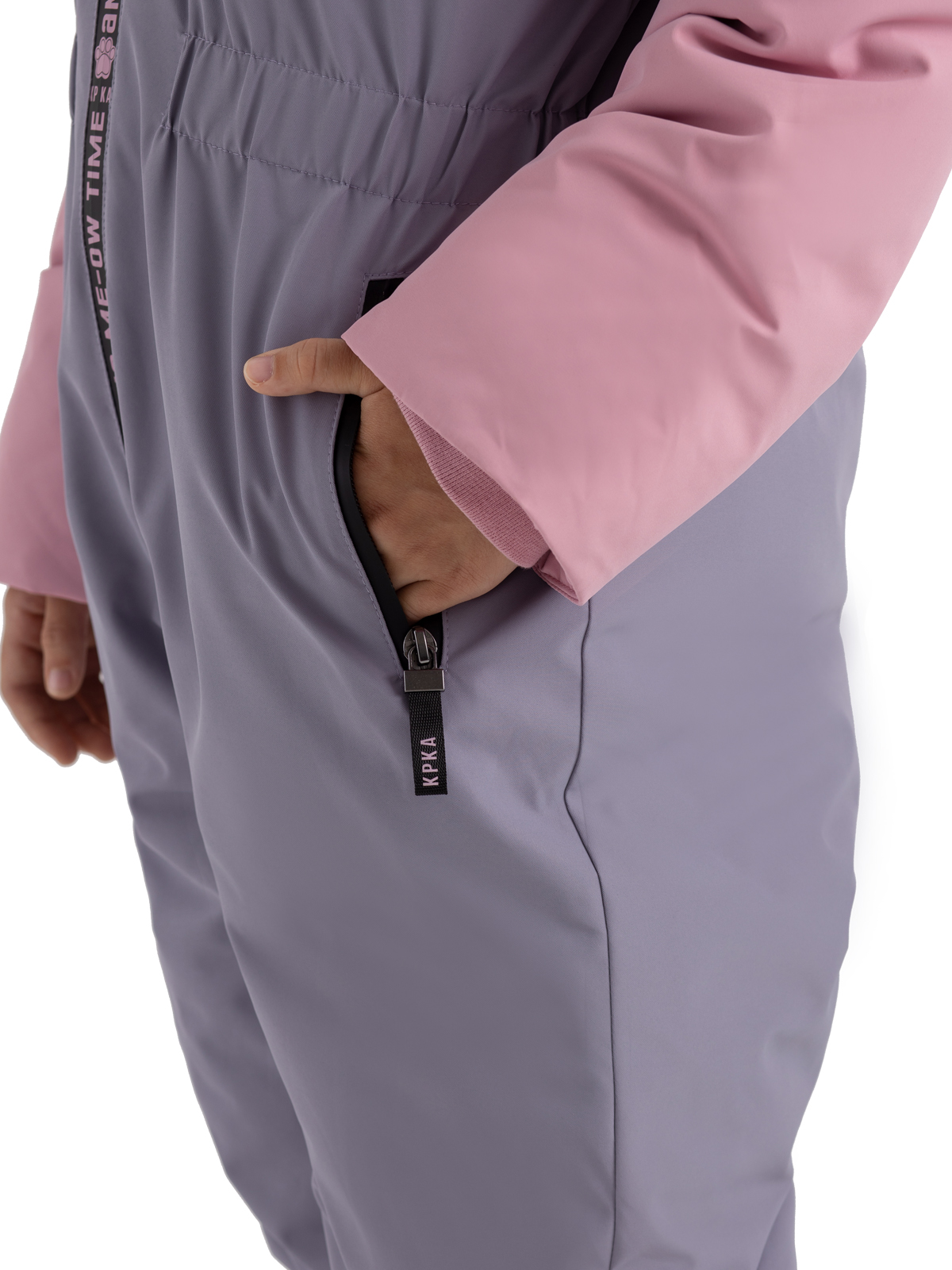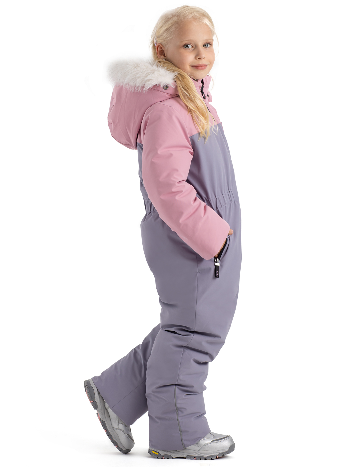 Зимний двухцветный комбинезон для девочки из тканей с водостойким PU-покрытием. От холодов защитит утеплитель - искуственный пух 200 г/м2 и дополнительное утепление синтепоном, а рефлективная подкладка с фольгированным принтом (OMNI-HEAT) эффективно удержит тепло внутри. Комбинезон дополнен подкладкой из мягкого микрофлиса в воротнике и верхней части изделия. Съемный капюшон имеет регулируемую кулису по краюи декорирован искуственным съемным мехом. Высокий воротник, манжеты из риба и центральная ветрозащитная, непромокаемая молния с внутренней планкой надежно защищают от ветра. Кулиса на талии - с резинкой для удобства прилегания. Комбинезон имеет два боковых кармана. На комбинезоне имеются светоотражающий принт на спине, и нашивные светоотражающие элементы по низу брючин для защиты ребенка в темное время суток.