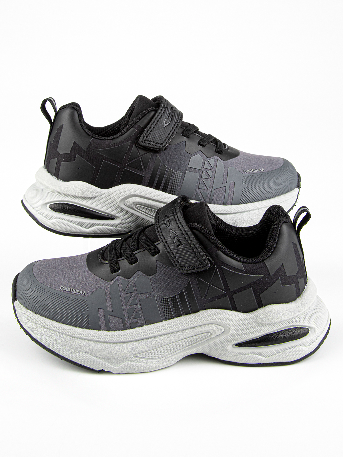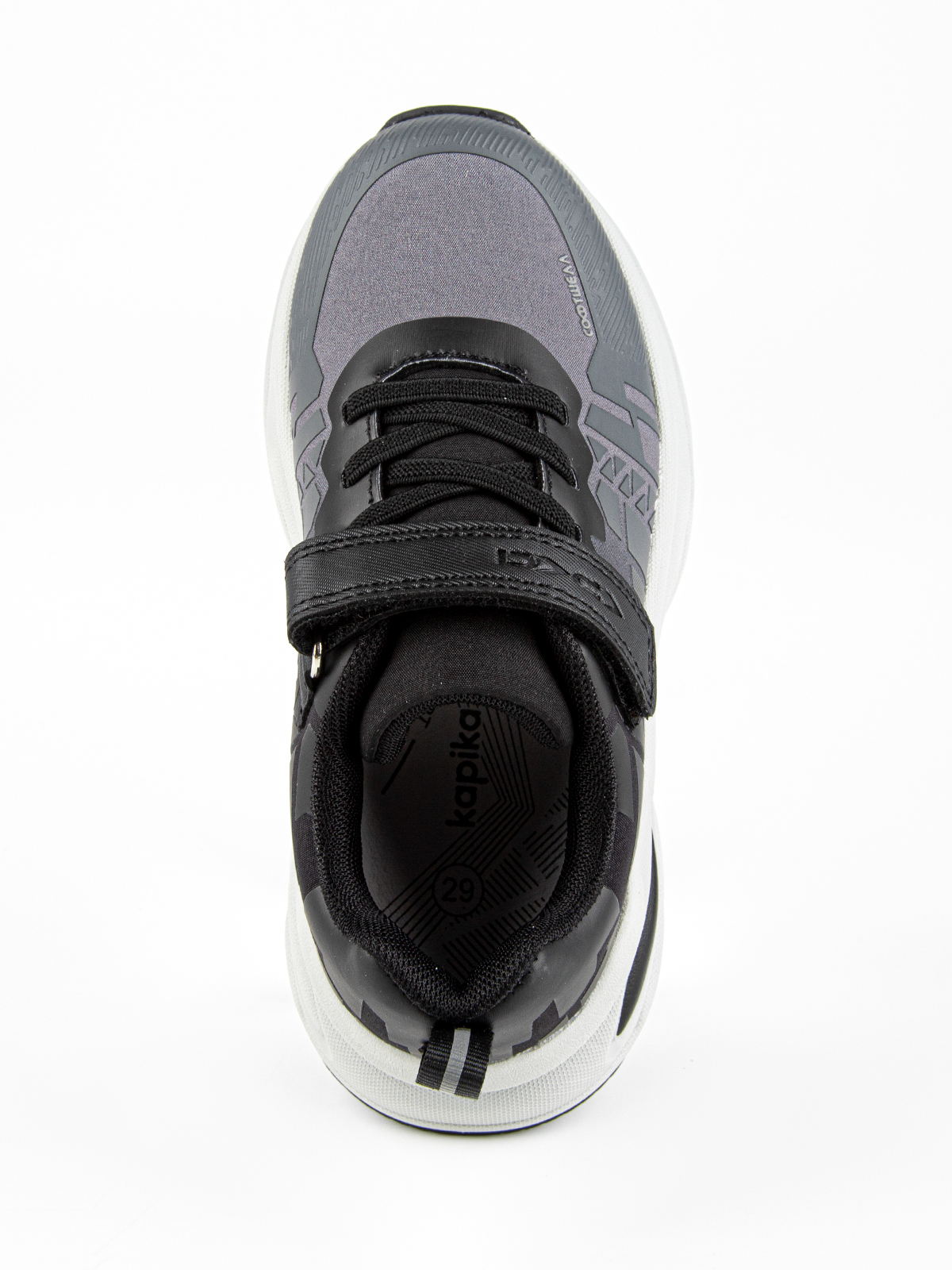 Кроссовки из водоотталкивающего материала софтшелл обеспечивают комфорт в разную погоду и стильный вид благодаря продуманным деталям. Защищённая носовая часть, мягкий верх, лёгкая амортизирующая подошва и современный дизайн делают эти кроссовки незаменимыми для ребёнка. Кожаная антибактериальная стелька эффективно поглощает влагу и запахи, снижая нагрузку на стопу.