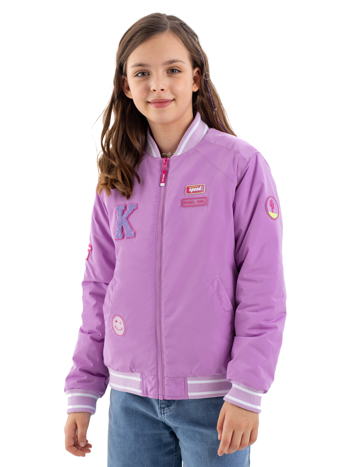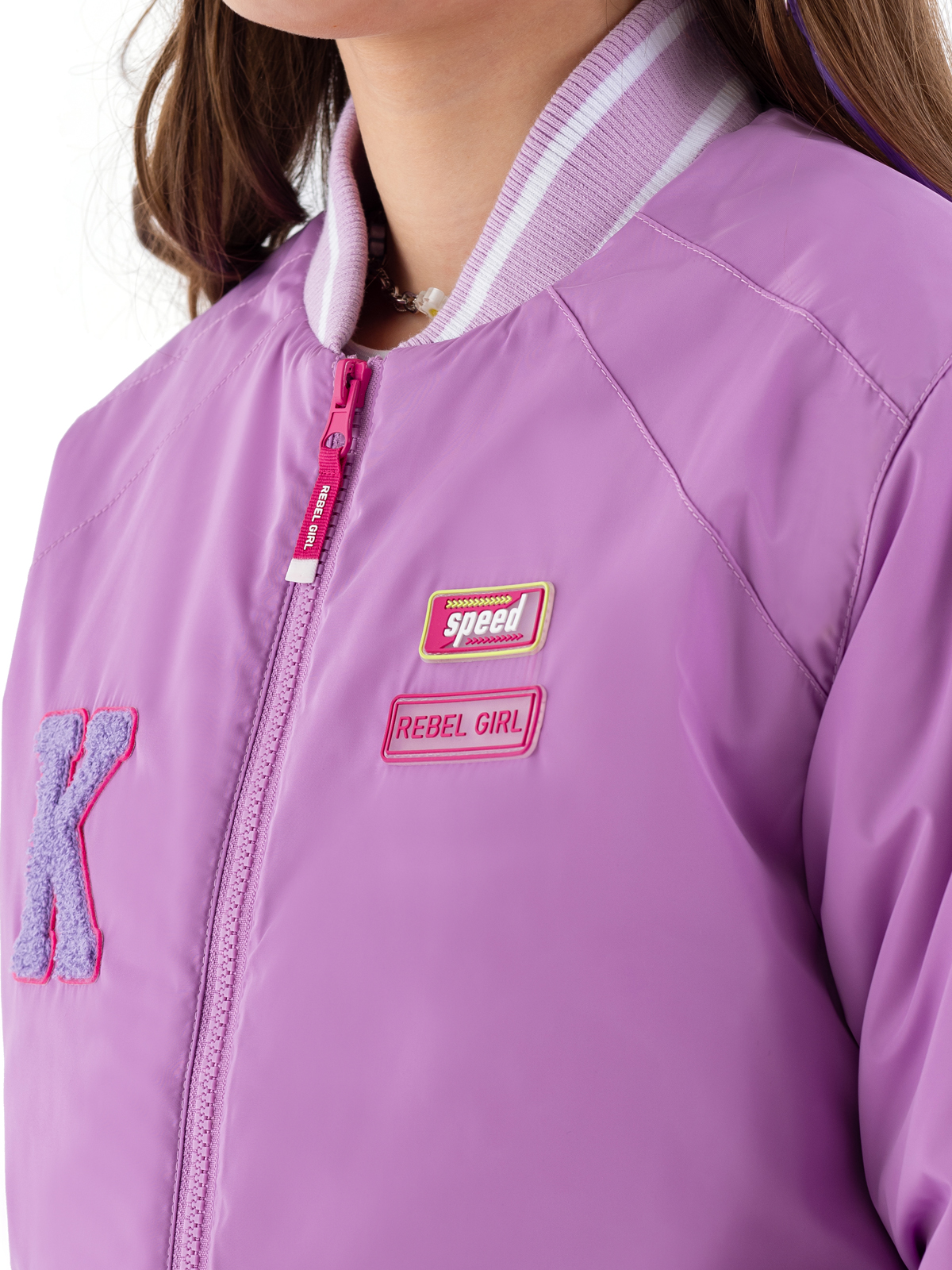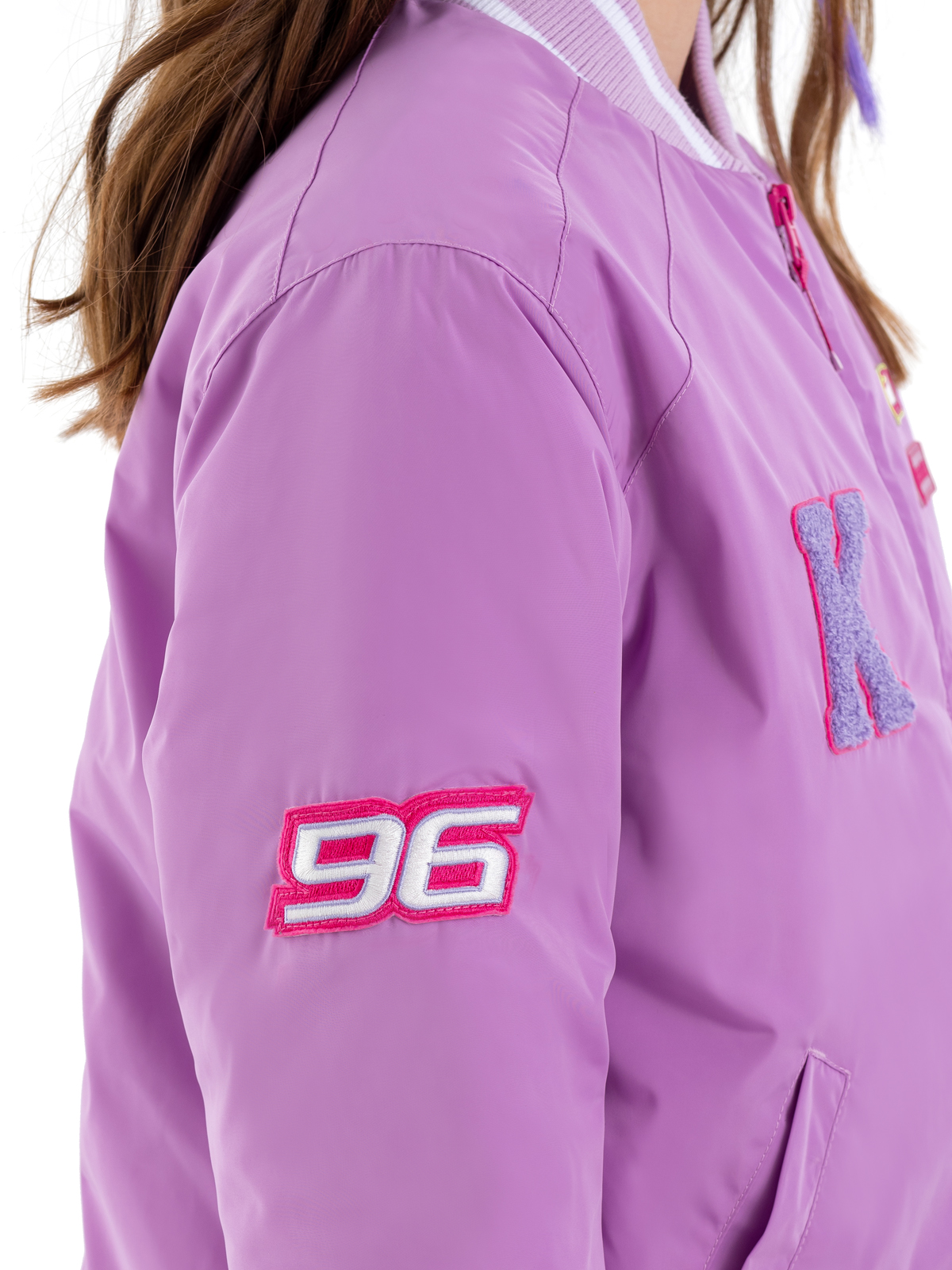 Стильный бомбер в розовом цвете — модная модель для девочек-подростков. Простёганная подкладка с утеплителем синтепоном плотностью 160 г/м² обеспечивает комфортную температуру. Особую элегантность модели придают мягкие рибы в полоску, расположенные по низу изделия, манжетам рукавов и горловине. Удобная застёжка-молния позволяет легко надевать и снимать бомбер. Функциональность модели подчёркивают два практичных прорезных кармана с листочками. Декоративные элементы — яркие патчи и выразительная вышивка на спинке — делают образ современным и запоминающимся.