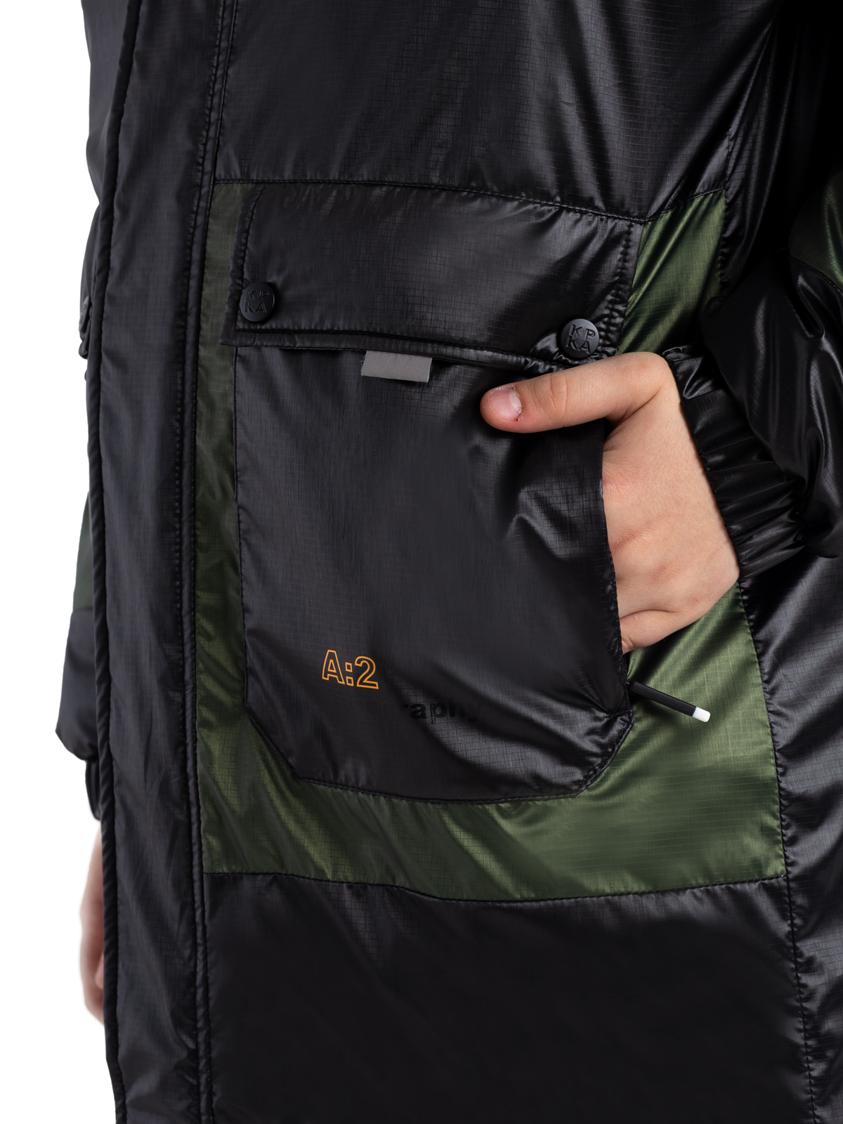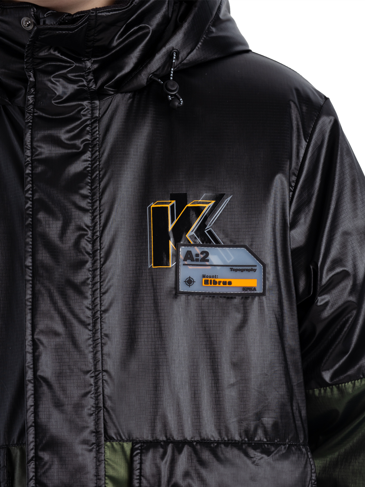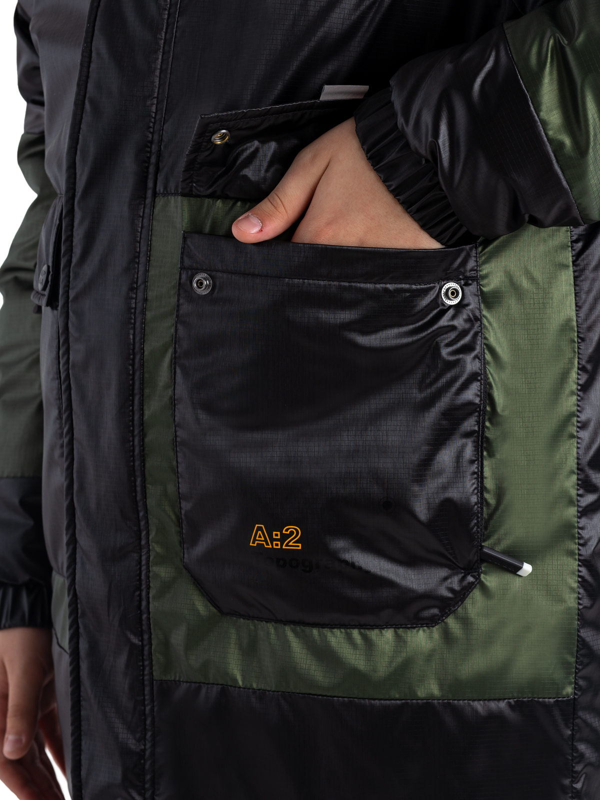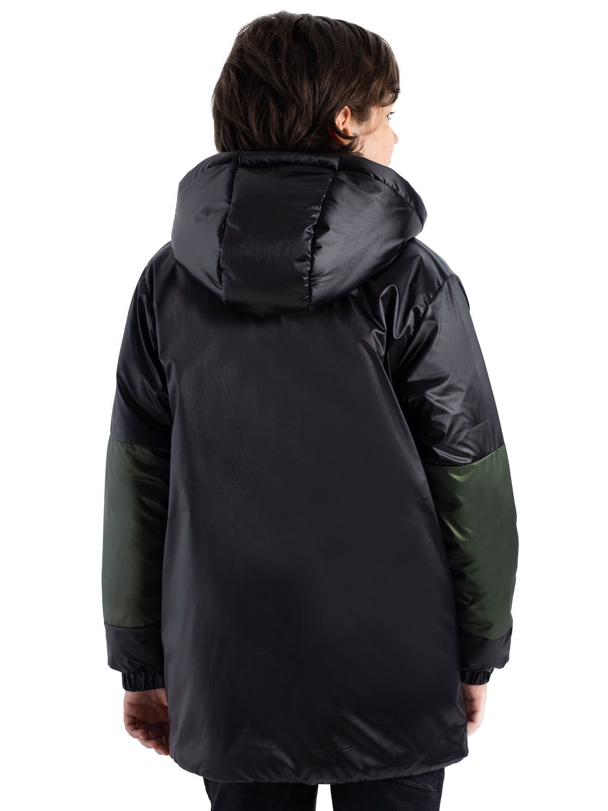 Демисезонная куртка прямого силуэта с вставками темно-зеленого цвета в ткани рипстоп имеет утеплитель 240г/м2. Капюшон несъемный, по краю капюшона регулируемая кулиса, воротник изнутри утеплен флисом. Ветрозащитная планка на кнопках и манжеты на резинках обеспечивает дополнительную защиту от ветра. Рефлективная подкладка с фольгированным принтом (OMNI-HEAT) эффективно удерживает тепло внутри. Куртка дополнена тематическими принтами на рукавах, груди и накладных карманах, также имеются светоотражающие элементы и стильный силиконовый патч.