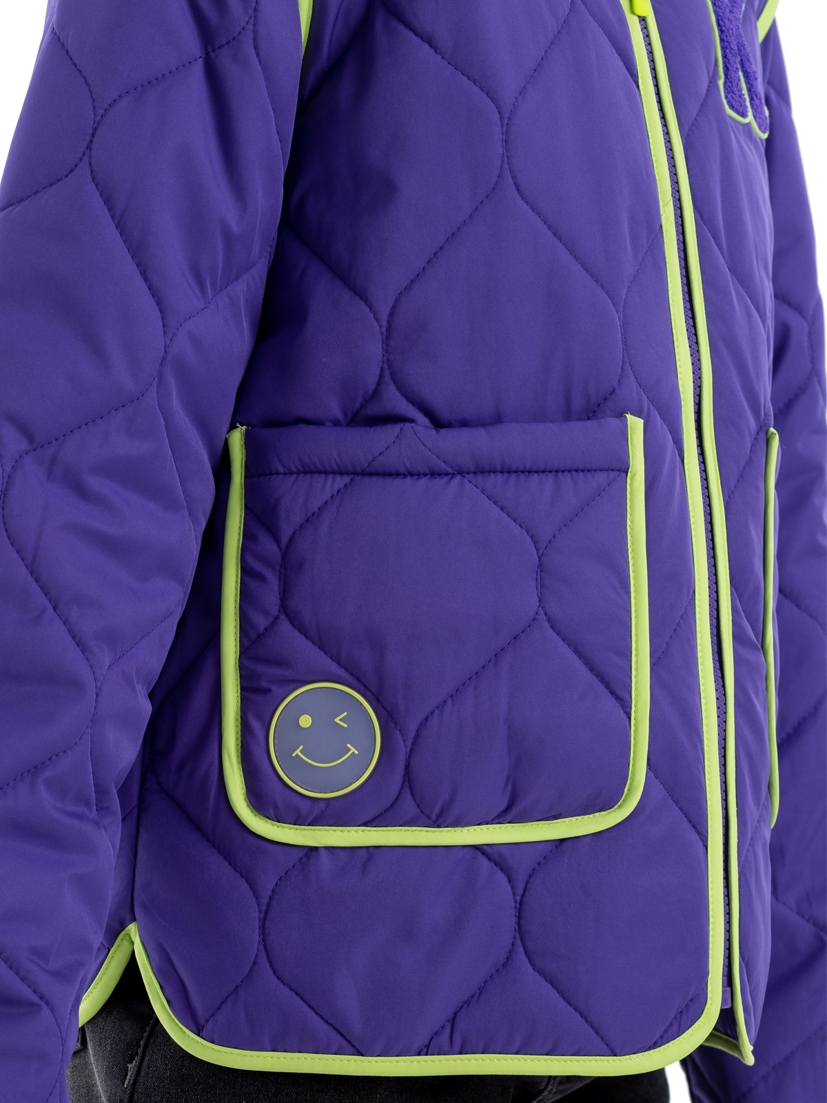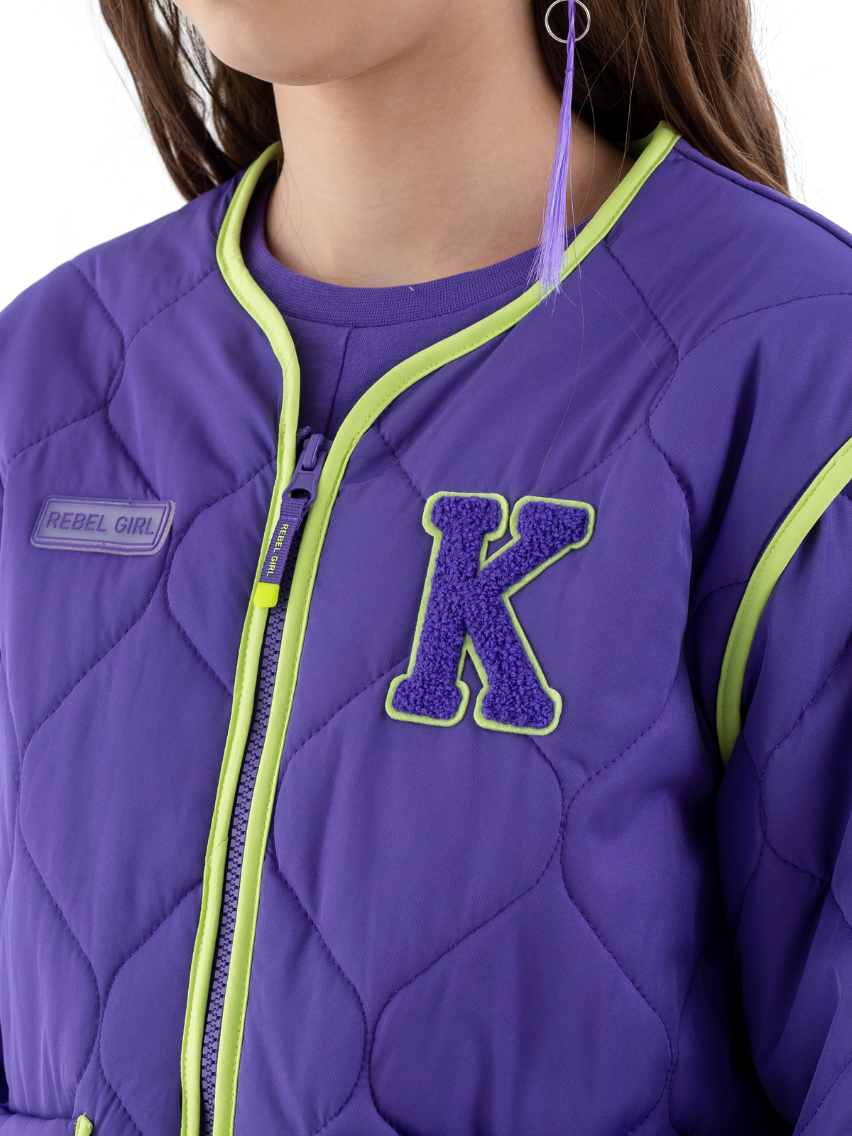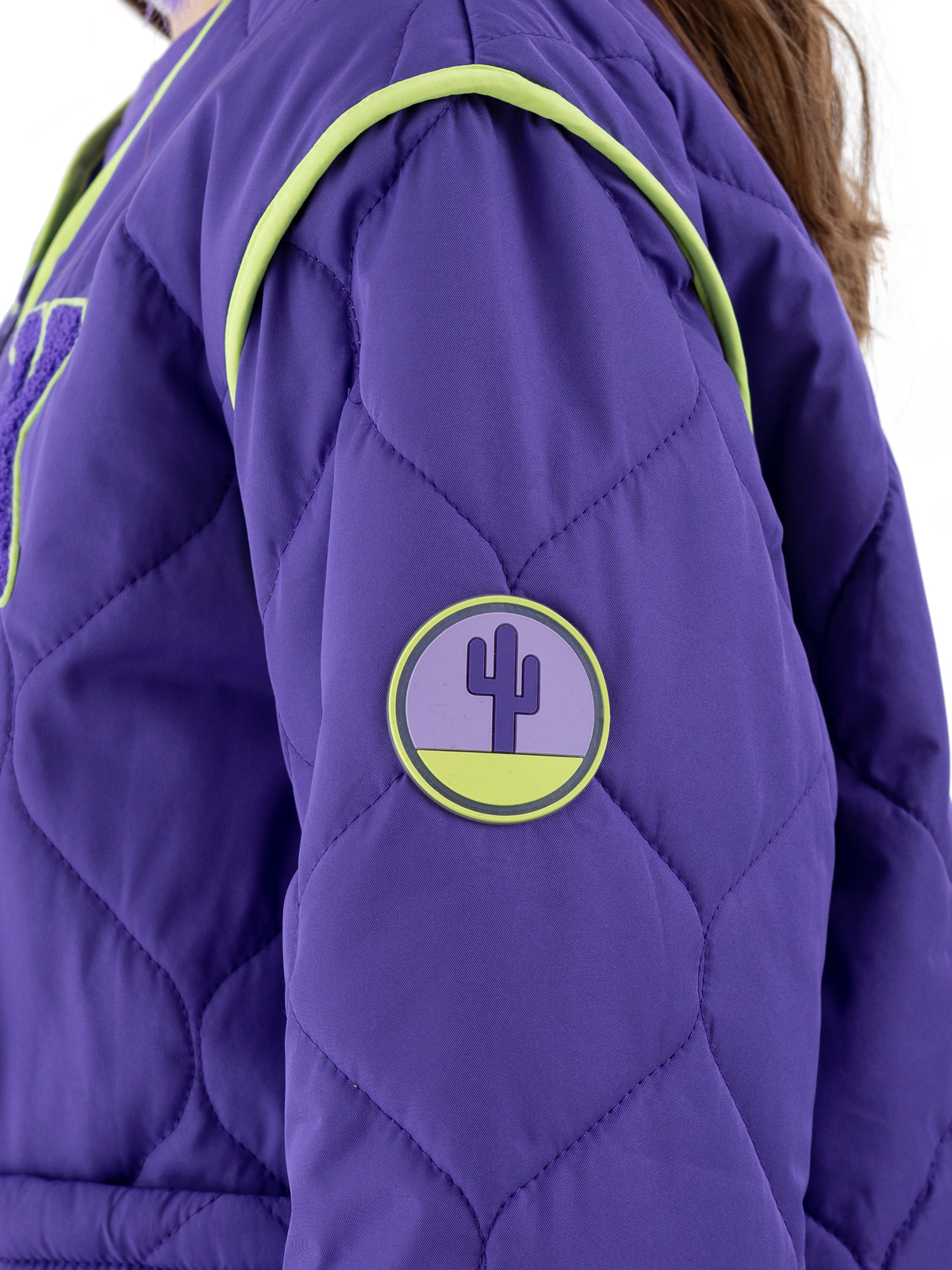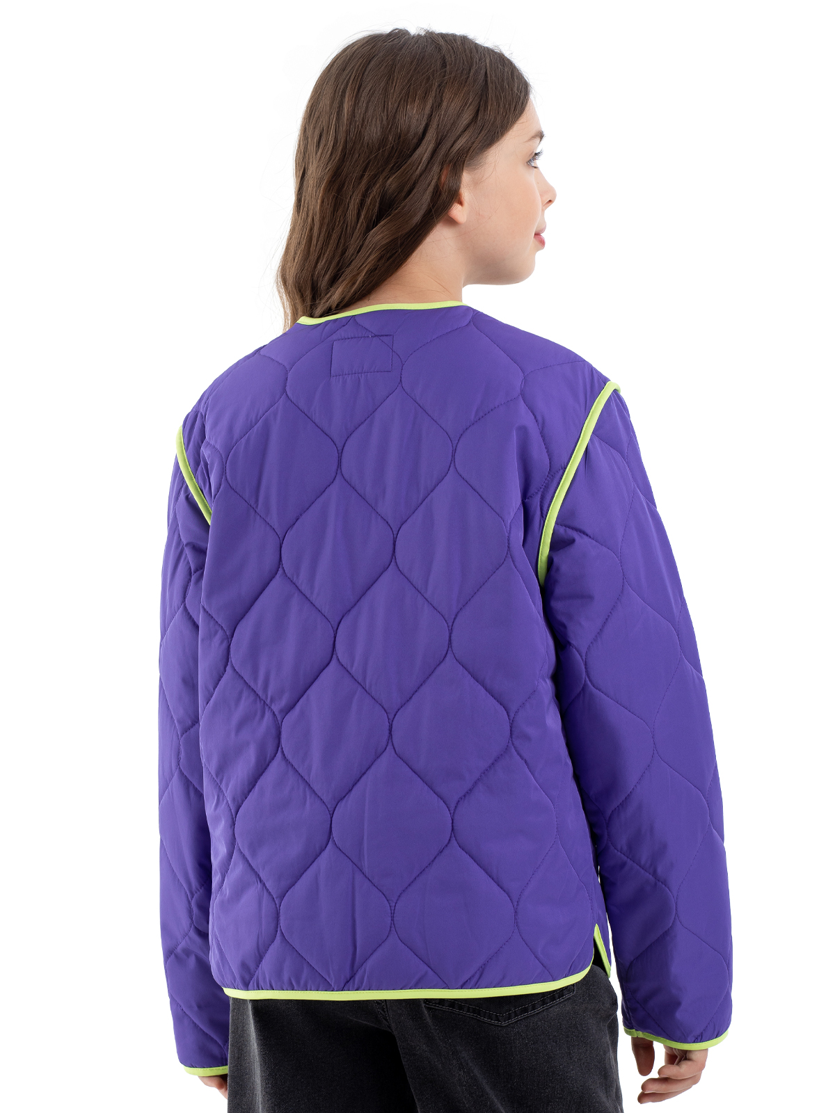 Стёганая куртка в насыщенном фиолетовом цвете — идеальный выбор для стильной девочки-подростка. Благодаря современной мембране с показателями 5000мм/5000г/м2/24ч модель надёжно защищает от влаги и ветра, а синтепоновый утеплитель плотностью 160 г/м² обеспечивает комфорт в прохладную погоду. Практичная конструкция включает удобную застёжку-молнию и два функциональных накладных кармана. Особую изюминку образу придают выразительные контрастные окантовки салатового цвета, которые украшают края изделия и карманов. Стильный дизайн дополняют яркие нашивные патчи, которые делают куртку современной и модной. Продуманная конструкция гарантирует комфорт при носке в демисезонный период.