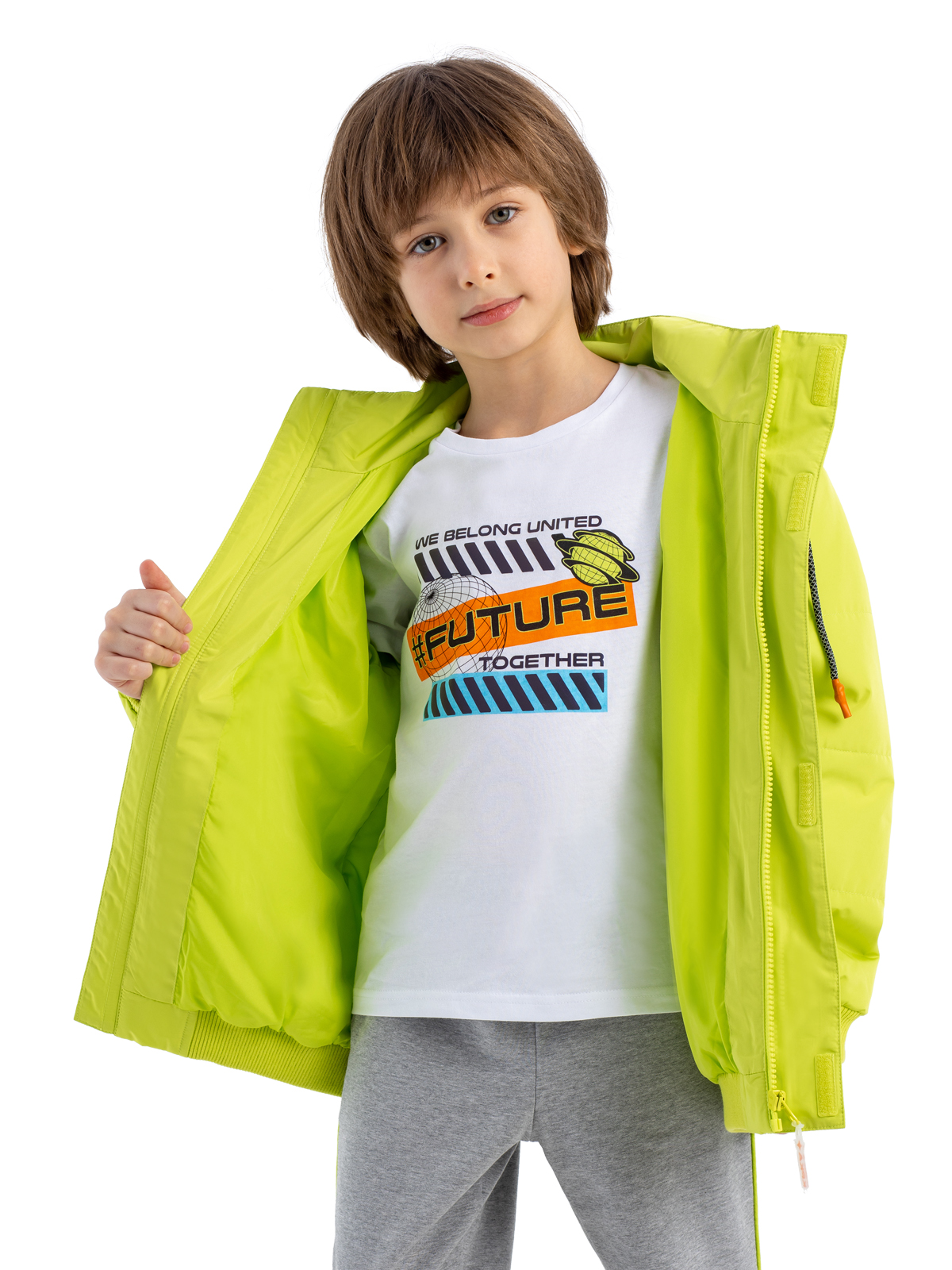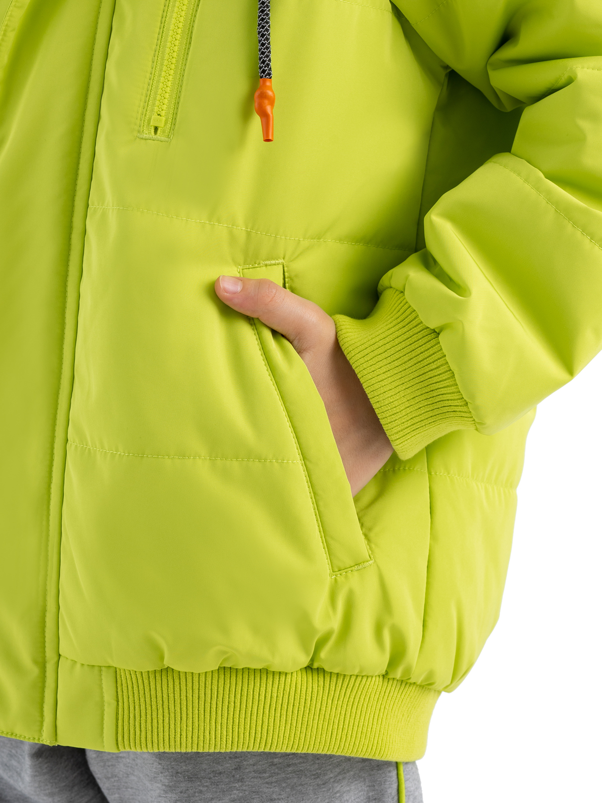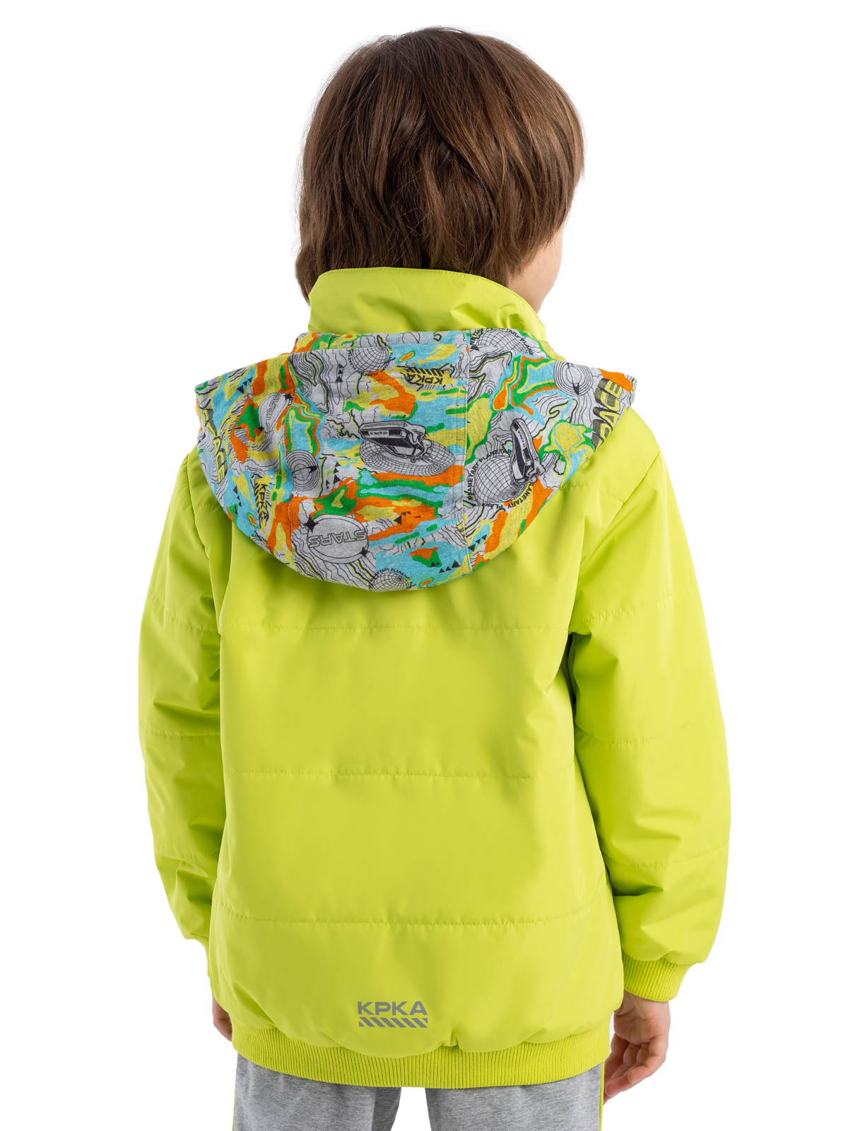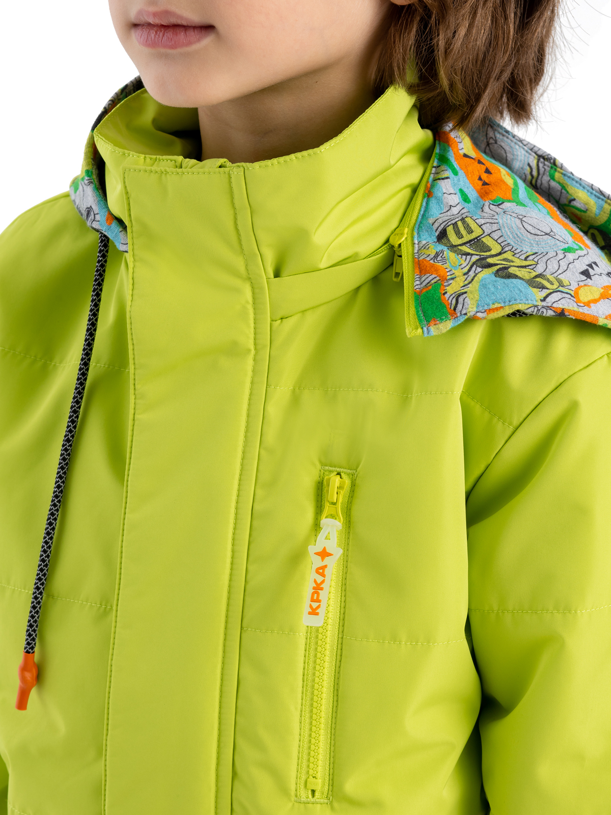 Стильная демисезонная куртка яркого цвета из влагозащитной, грязеотталкивающей, не продуваемой мембранной ткани 5000мм/5000г/м2/24ч имеет утеплитель 80г/м2. Центральная молния закрыта широкой внешней планкой на "липучках" для защиты от ветра. Куртка со съемным капюшоном из принтованного трикотажа-джерси с регулируемой кулисой дополнена светоотражающим шнурком. Карман на груди - закрывается на молни. Фигурный светоотражающий принт на спинке изделия защищает в темное время суток.