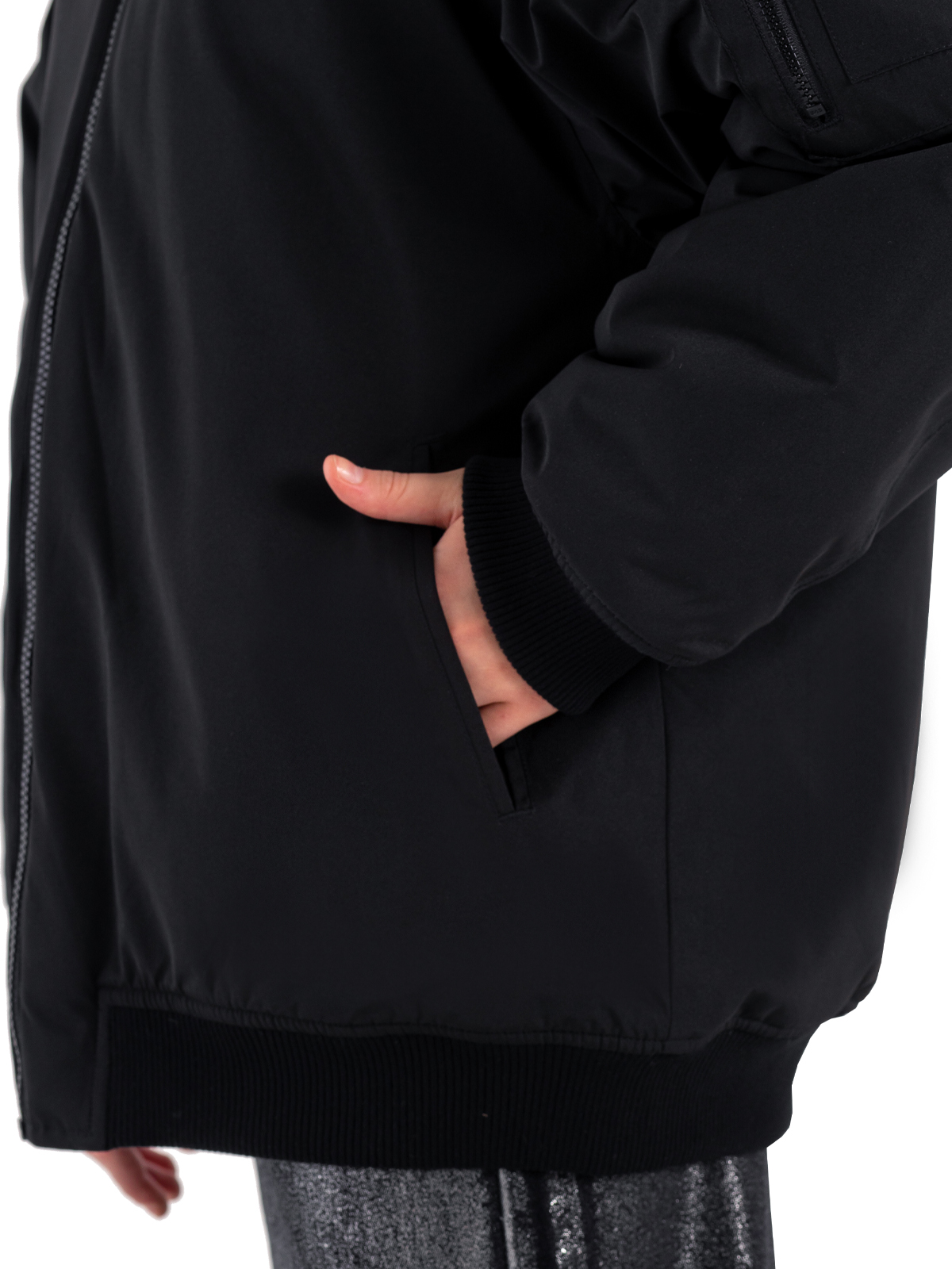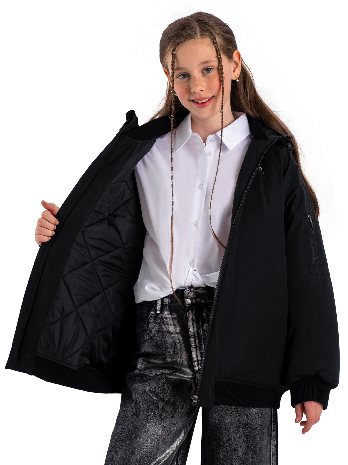 Модная куртка в черном цвете — стильный выбор для современной девочки-подростка. Благодаря мембране 5000мм/5000г/м2/24ч модель отлично защищает от влаги и обеспечивает комфортный микроклимат, а стёганая подкладка с синтепоном плотностью 160 г/м² создаёт уютное тепло в прохладную погоду. Силуэт оверсайз придаёт куртке современный и модный вид, который подчеркнёт индивидуальность своей обладательницы. Практичная застёжка-молния и регулируемый капюшон обеспечивают удобство использования, а мягкие эластичные рибы по низу изделия и рукавам добавляют комфорта при носке. Функциональность куртки подчёркивают два удобных прорезных кармана спереди и практичный накладной карман на рукаве с молнией. Продуманная конструкция делает эту модель идеальным выбором для повседневной носки и активного образа жизни.