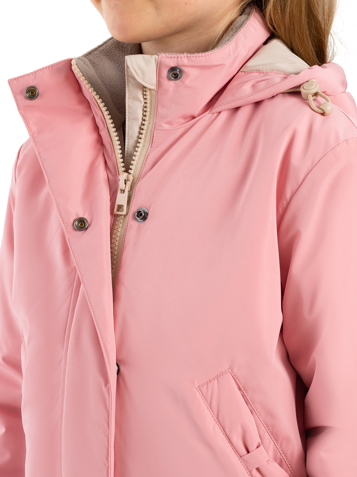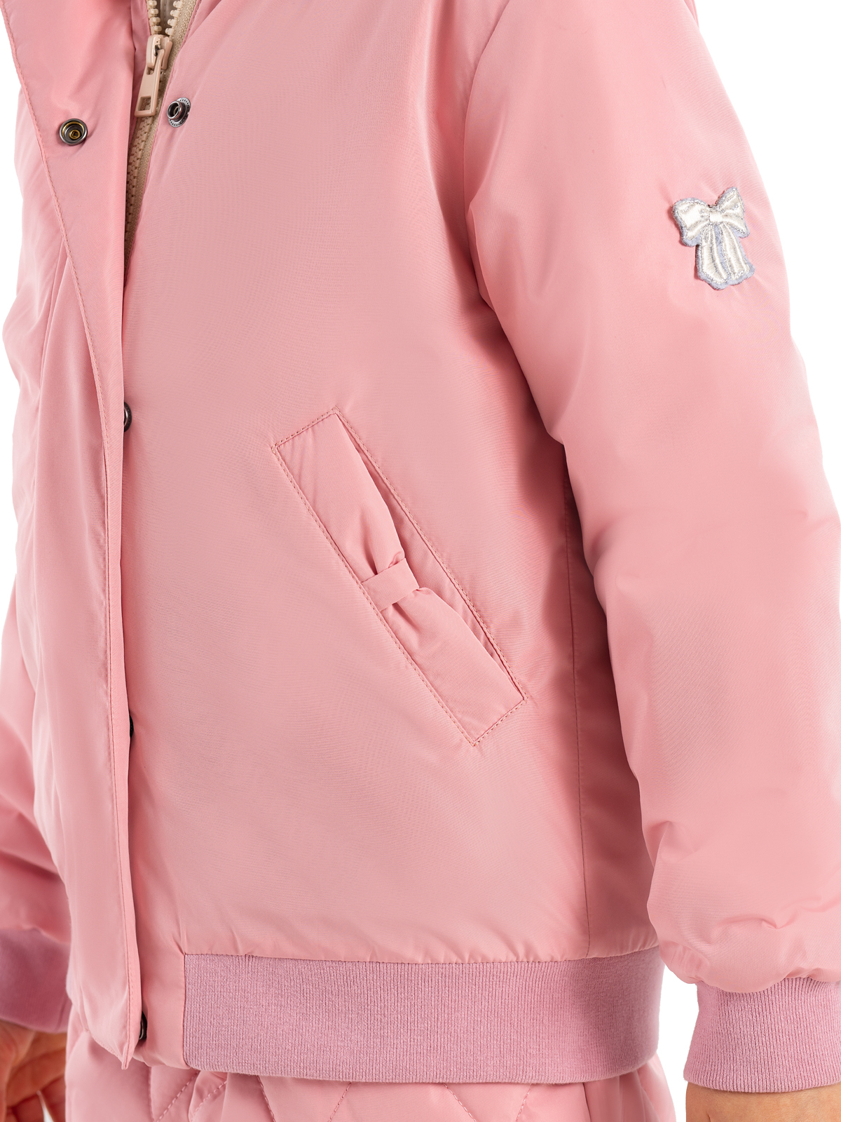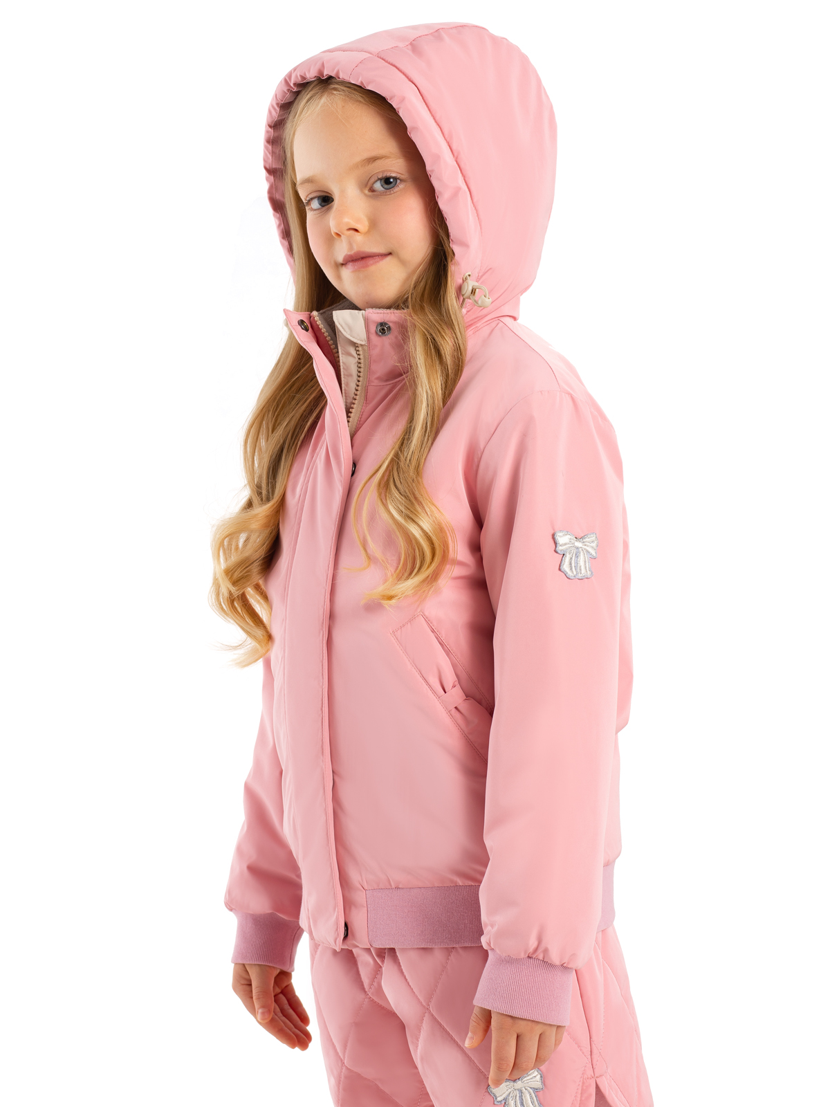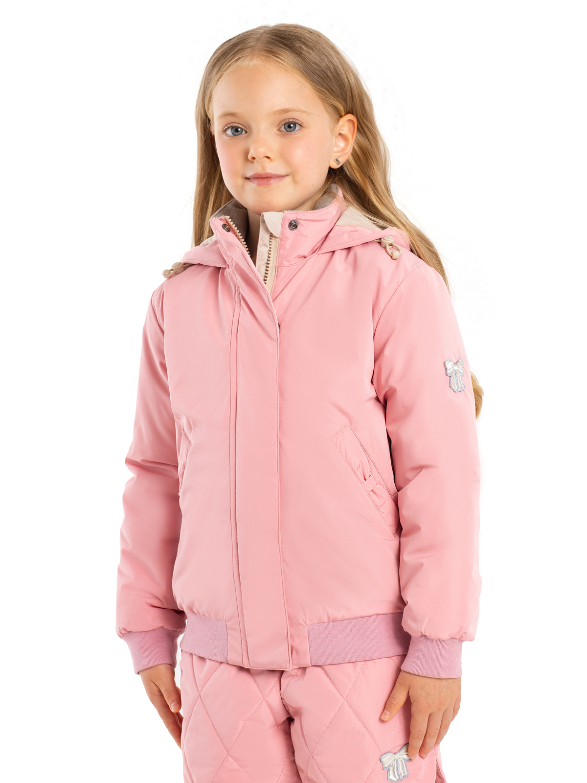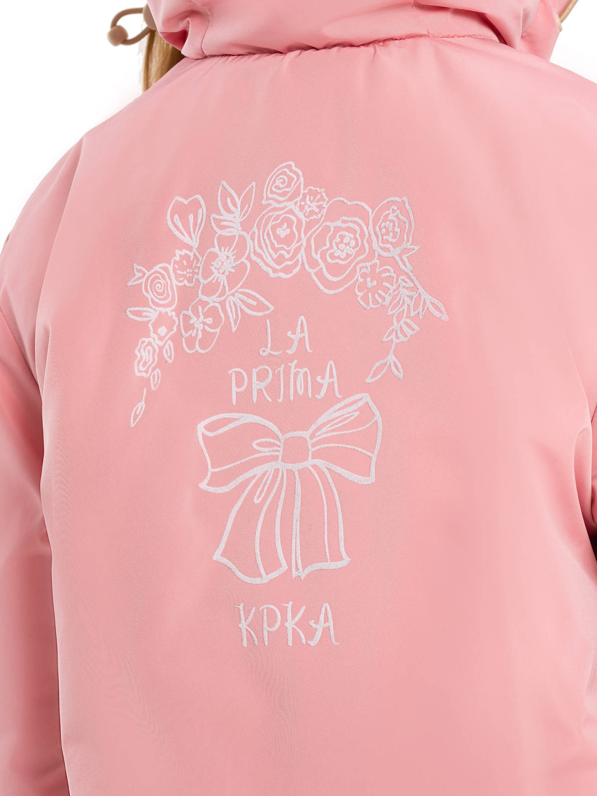 Демисезонная куртка в нежном розовом цвете — практичный выбор для девочки. Благодаря современной мембране 5000мм/5000г/м2/24ч модель надёжно защищает от влаги и обеспечивает комфортный микроклимат, а синтепоновый утеплитель плотностью 160 г/м² создаёт уютное тепло в прохладную погоду. Комфортная конструкция включает мягкий микрофлис на внутренней стороне воротника, который обеспечивает приятные тактильные ощущения, а мягкие эластичные рибы по низу изделия и рукавам делают модель особенно удобной. Регулируемый капюшон и ветрозащитная планка защищают от непогоды. Милые детали в виде бантиков на листочках прорезных карманов и патч на рукаве добавляют образу женственности. Нежный белый принт на спинке делает модель по-настоящему уникальной.