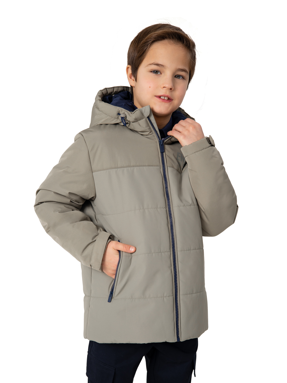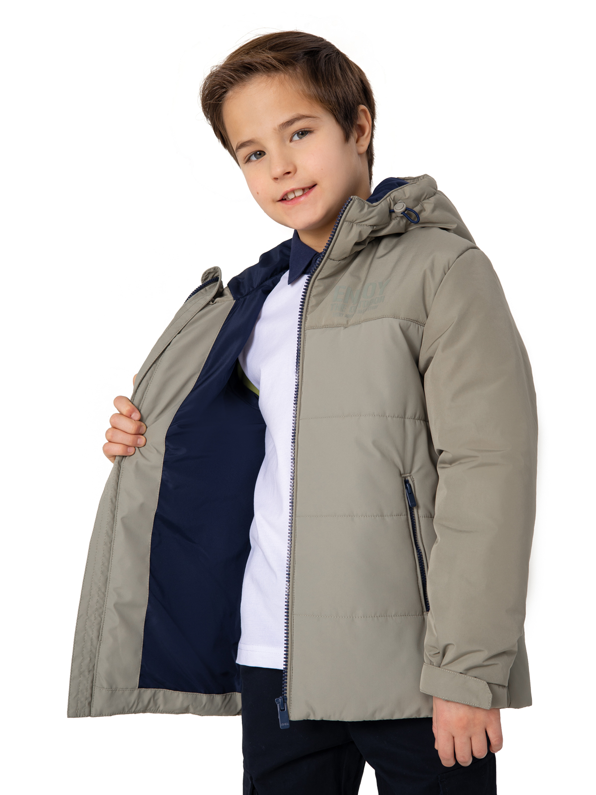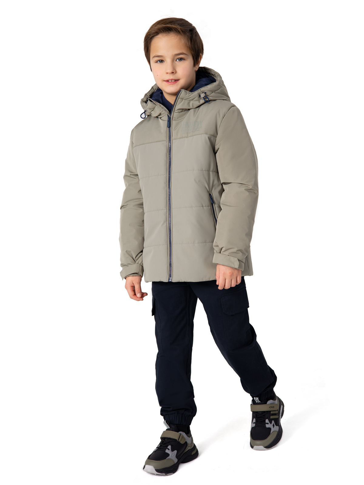 Стильная демисезонная куртка в благородном бежевом цвете станет отличным выбором для мальчика. Модель изготовлена из современного материала с мембраной 5000мм/5000г/м2/24ч, обеспечивающей надёжную защиту от влаги и отличную воздухопроницаемость. Утеплитель синтепон плотностью 160 г/м² гарантирует комфортную температуру в прохладную погоду. Дизайн дополнен контрастными элементами: тёмно-синей подкладкой и фурнитурой того же оттенка. Центральная молния, молнии в карманах и утяжка в регулируемом капюшоне выполнены в едином цветовом решении. Особую изюминку модели придаёт деликатный принт на груди, гармонично сочетающийся с основным цветом куртки. Практичная и стильная модель идеально подходит для повседневной носки.