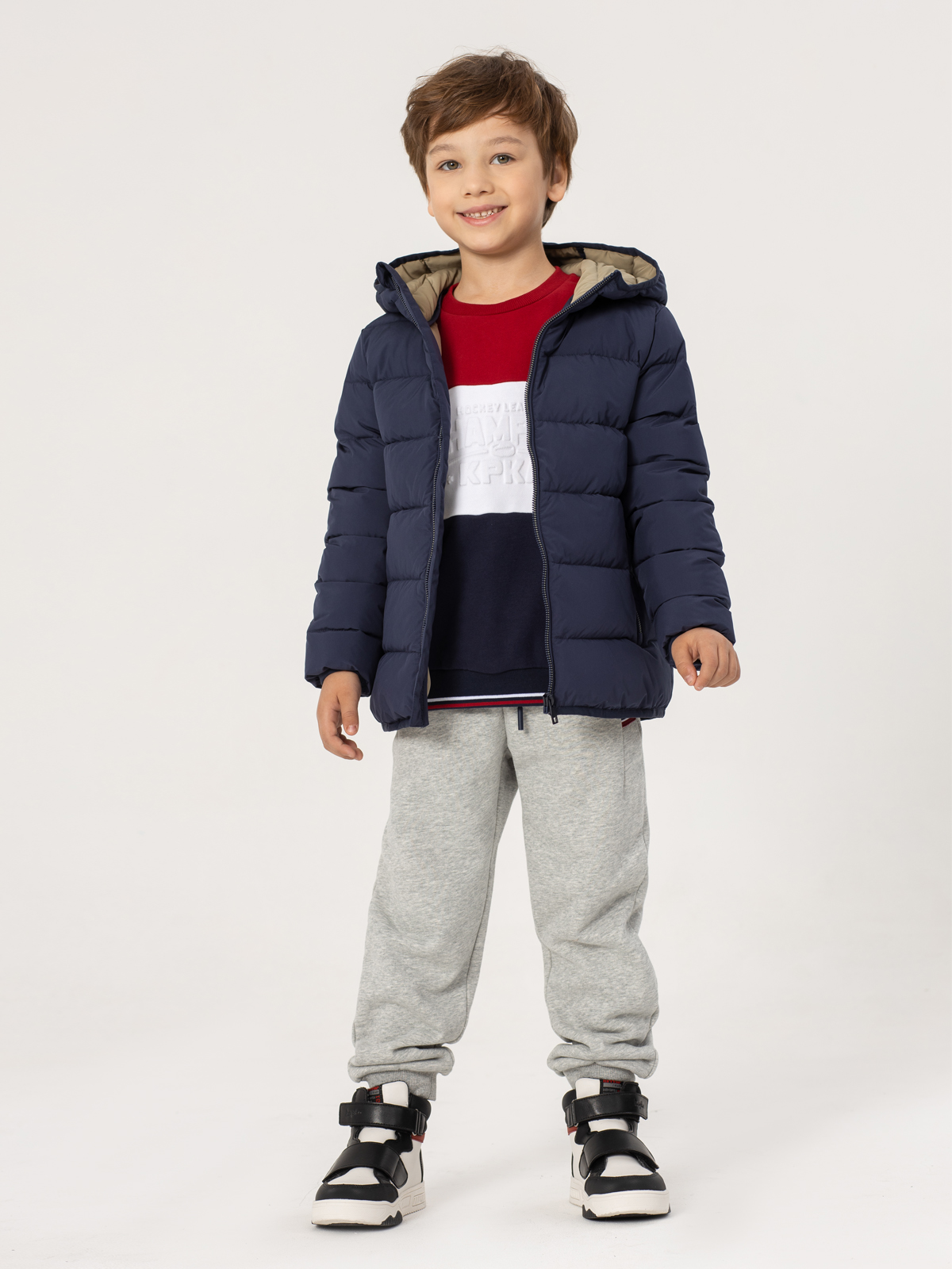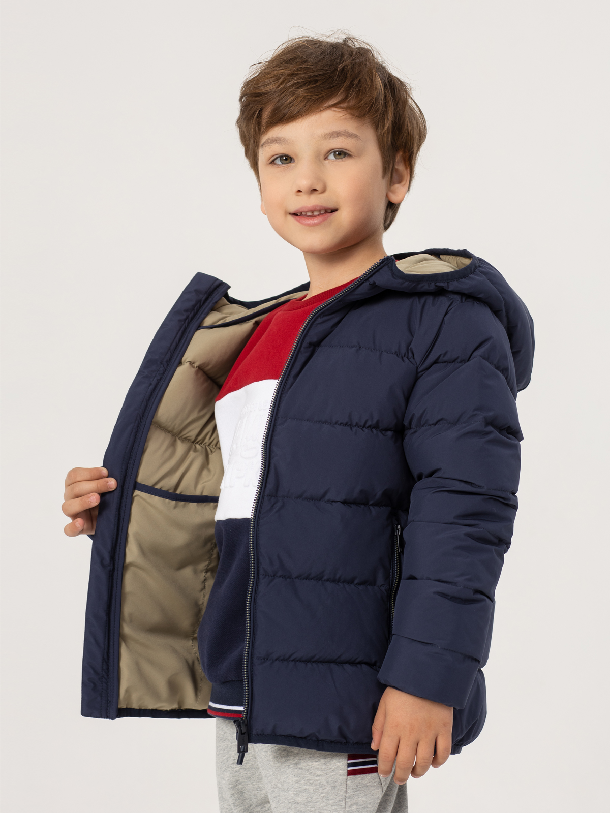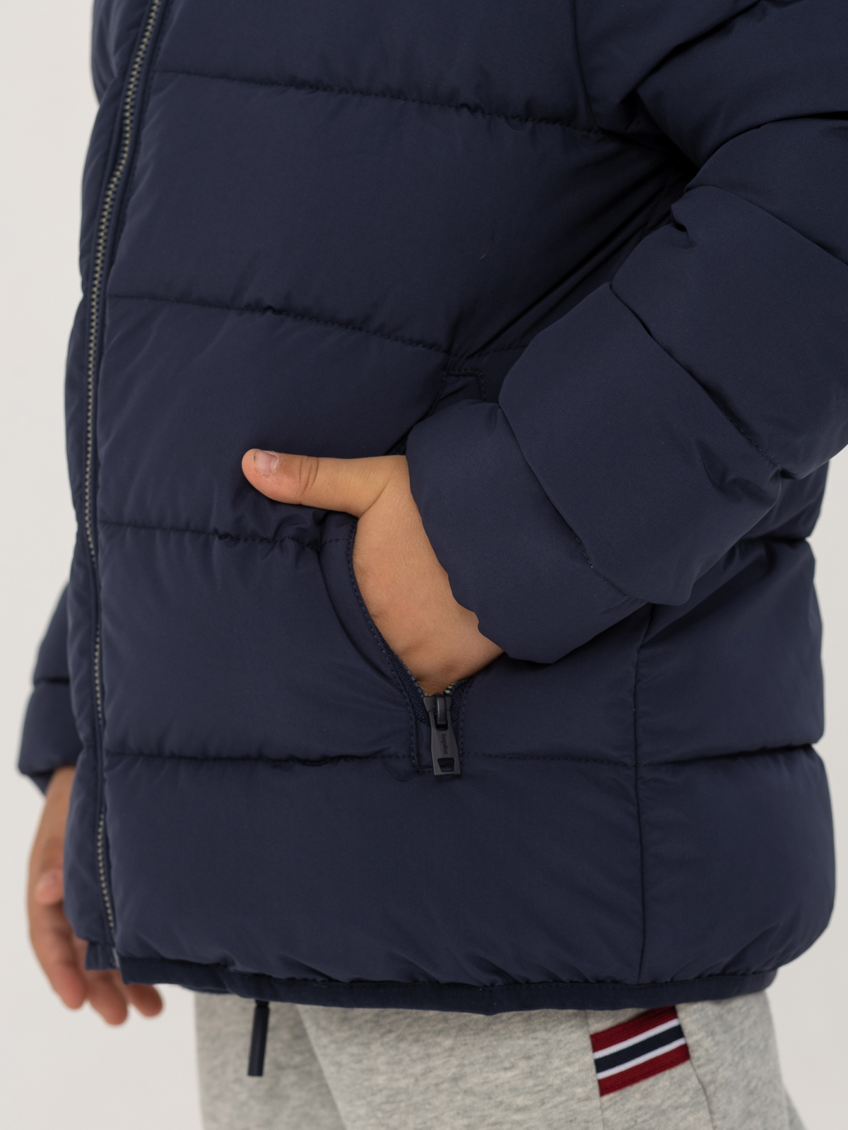 Демисезонная куртка в тёмно-синем цвете — идеальный выбор для активных мальчиков. Модель отличается стильным дизайном и практичностью, легко вписываясь как в спортивный, так и в повседневный образ. Куртка имеет удобный крой, который не сковывает движения ребёнка, а два боковых кармана обеспечивают удобство хранения мелочей. Мембрана 5000/5000 обеспечивает отличную водостойкость и воздухопроницаемость, а утеплитель Dupont Sorona mini ball 200 г/м² гарантирует оптимальную теплоизоляцию без добавления лишнего веса. Модель подойдёт для мальчиков, которые ценят комфорт и стиль в одежде, а также нуждаются в надёжной защите от непогоды.