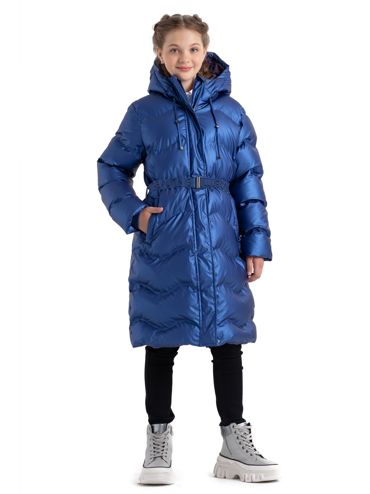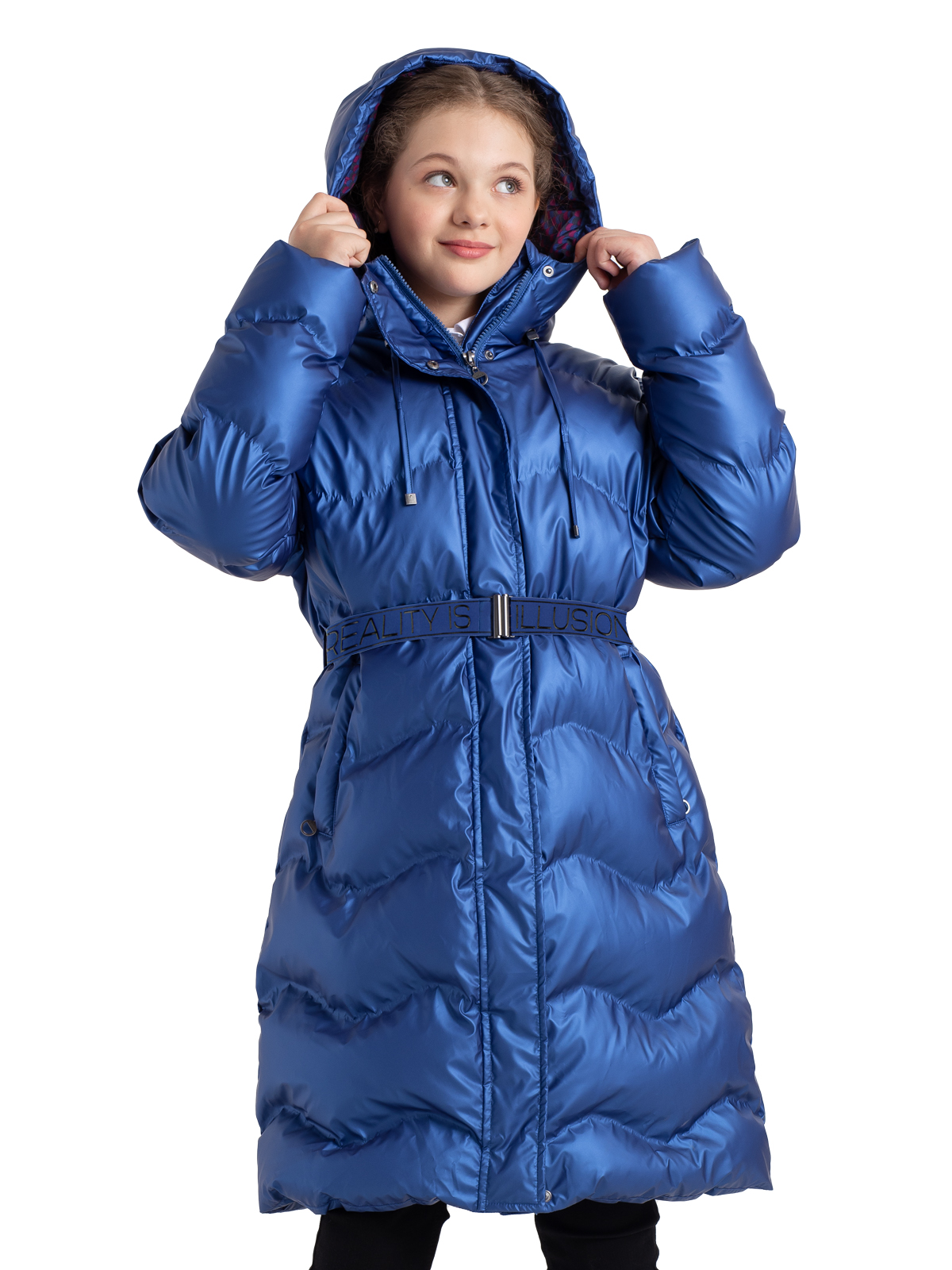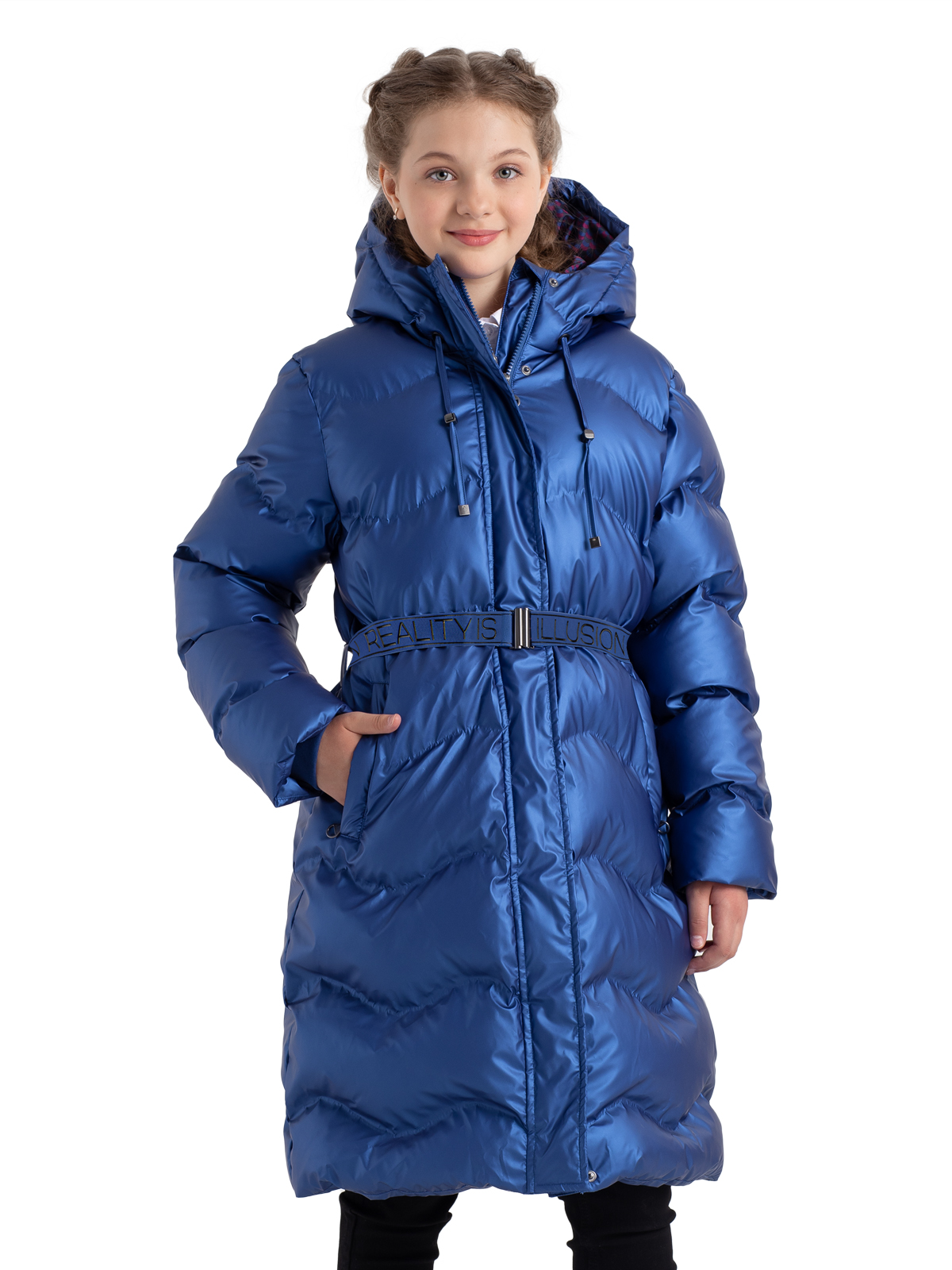 Удлиненный пуховик для девочки-подростка в трендовом цвете с блестящим финишем, имеет утеплитель - искусственный пух весом 300г/м2. Узор декоративной стежки создан с помощью тоннельной техники благодаря чему можно не бояться, что утеплитель "скатается". Оптимальная длина, цельный капюшон с регулируемой кулисой, манжеты на резинке, ветрозащитная планка обеспечивают защиту от холода и ветра. Съемный ремень с силиконовым принтом добавляет стиля и функциональности.