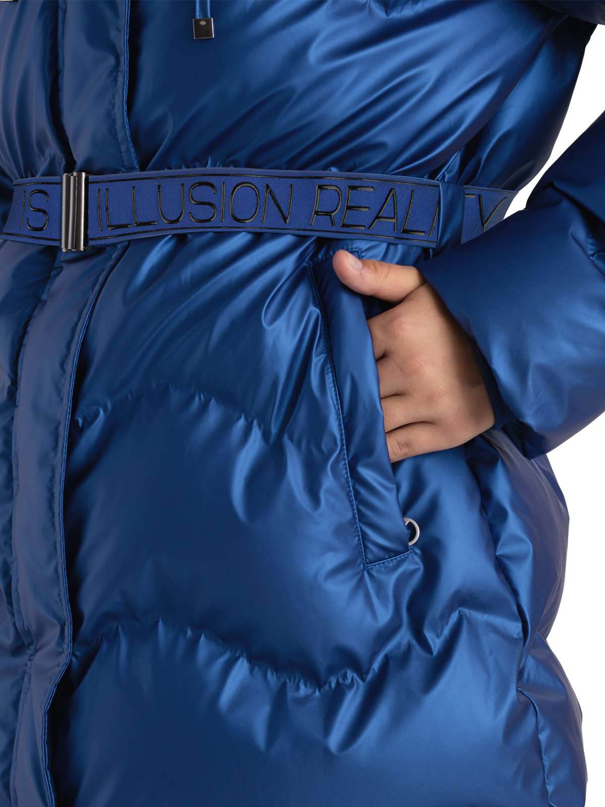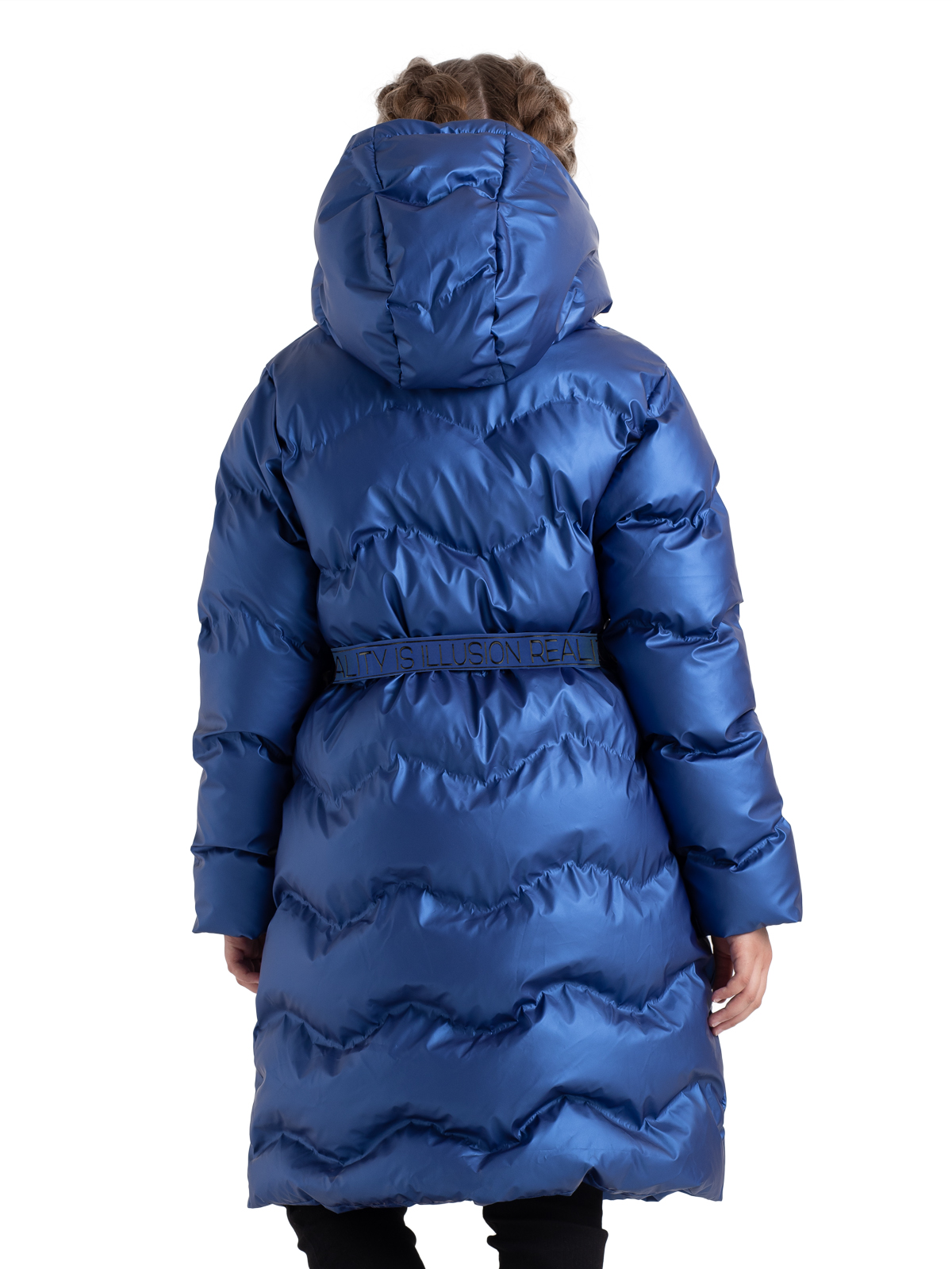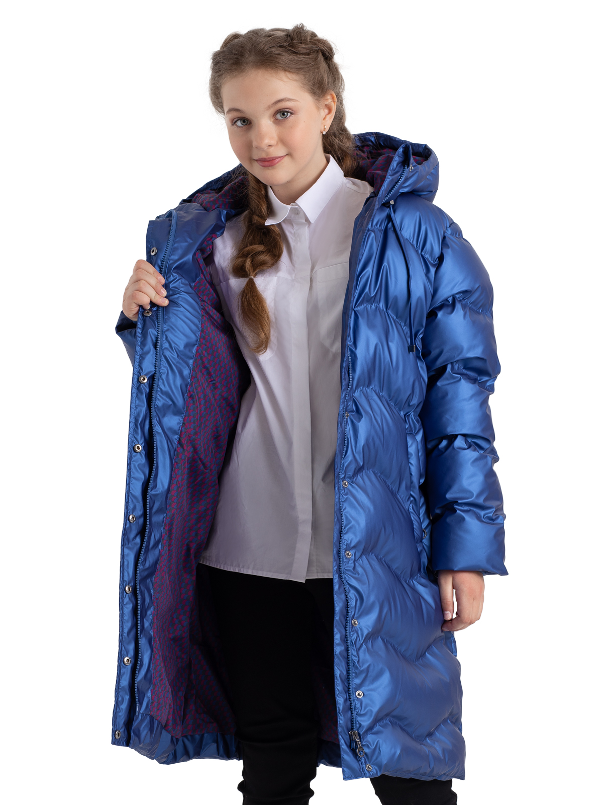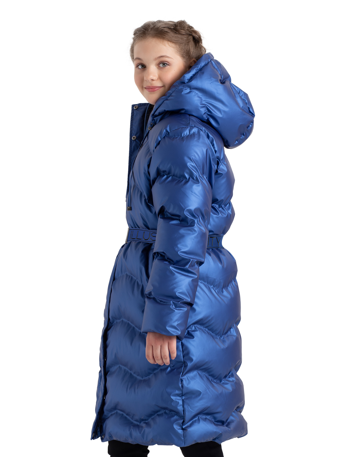 Удлиненный пуховик для девочки-подростка в трендовом цвете с блестящим финишем, имеет утеплитель - искусственный пух весом 300г/м2. Узор декоративной стежки создан с помощью тоннельной техники благодаря чему можно не бояться, что утеплитель "скатается". Оптимальная длина, цельный капюшон с регулируемой кулисой, манжеты на резинке, ветрозащитная планка обеспечивают защиту от холода и ветра. Съемный ремень с силиконовым принтом добавляет стиля и функциональности.