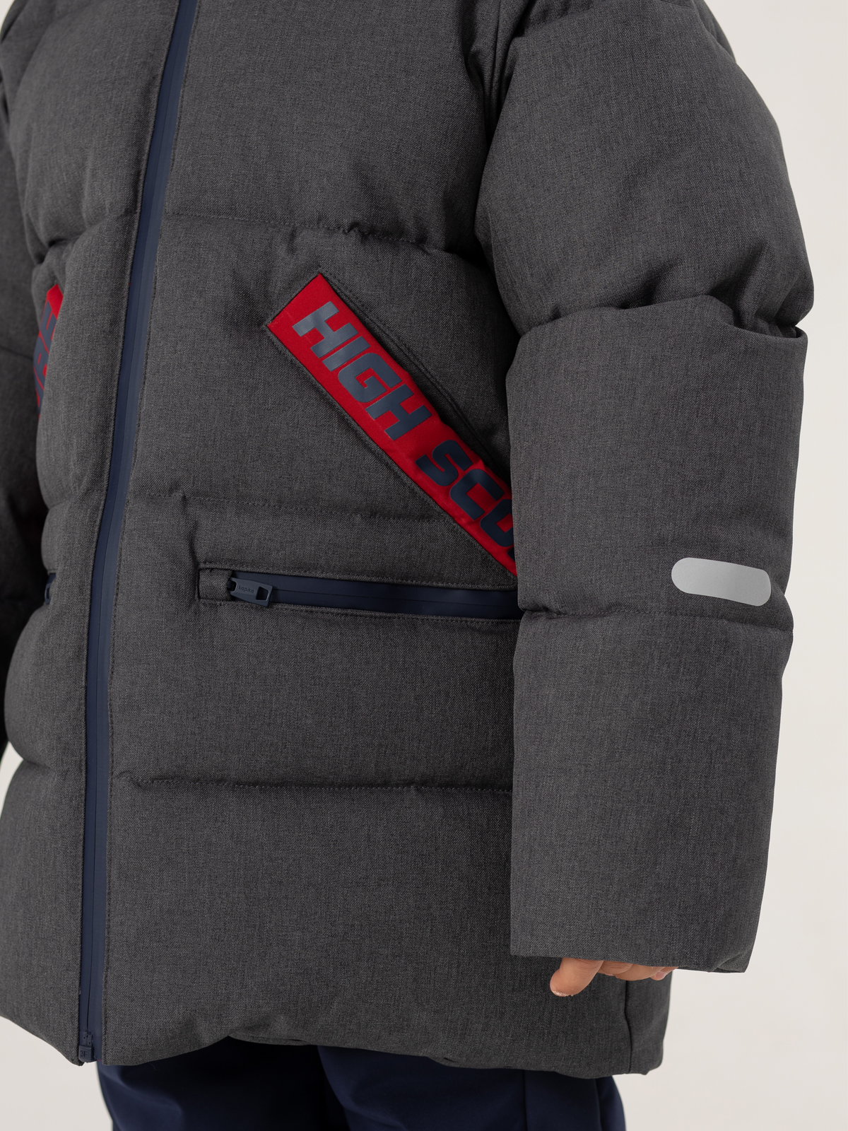 Куртка небольшого объема, прямого силуэта, слегка спущенная линия плеча. Модель выполнена из ткани я мембраной 5000мм/5000г/м2/24ч, надежно защищающей от влаги, а качественный утеплитель из искусственного пуха плотностью 350 г/м² эффективно сохранит тепло даже в сильный мороз. Воротник-стойка с застежкой на внутренние кнопки. Капюшон-шлем втачной, несъемный с застежкой на кнопки. По краю капюшона широкая притачная кулиса, регулируемая на стопор и шнур-резинку. Застежка центральная на тесьму-молнию, закрытая верхней планкой на кнопки. В нижней части переда карманы-листочки с застежкой на кнопку. Рукав втачной. По низу рукава цельнокроеная манжета на резинку. Низ куртки ровный. По низу, с внутренней стороны кулиса на шнур-резинку и стопор. Внутри куртки предусмотрены бретели-держатели.