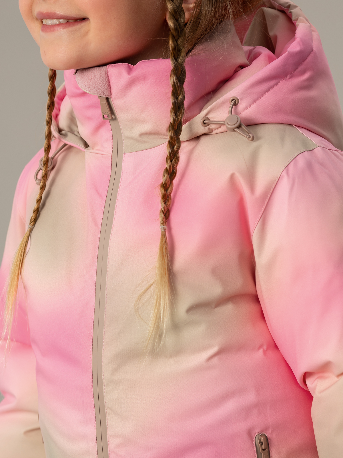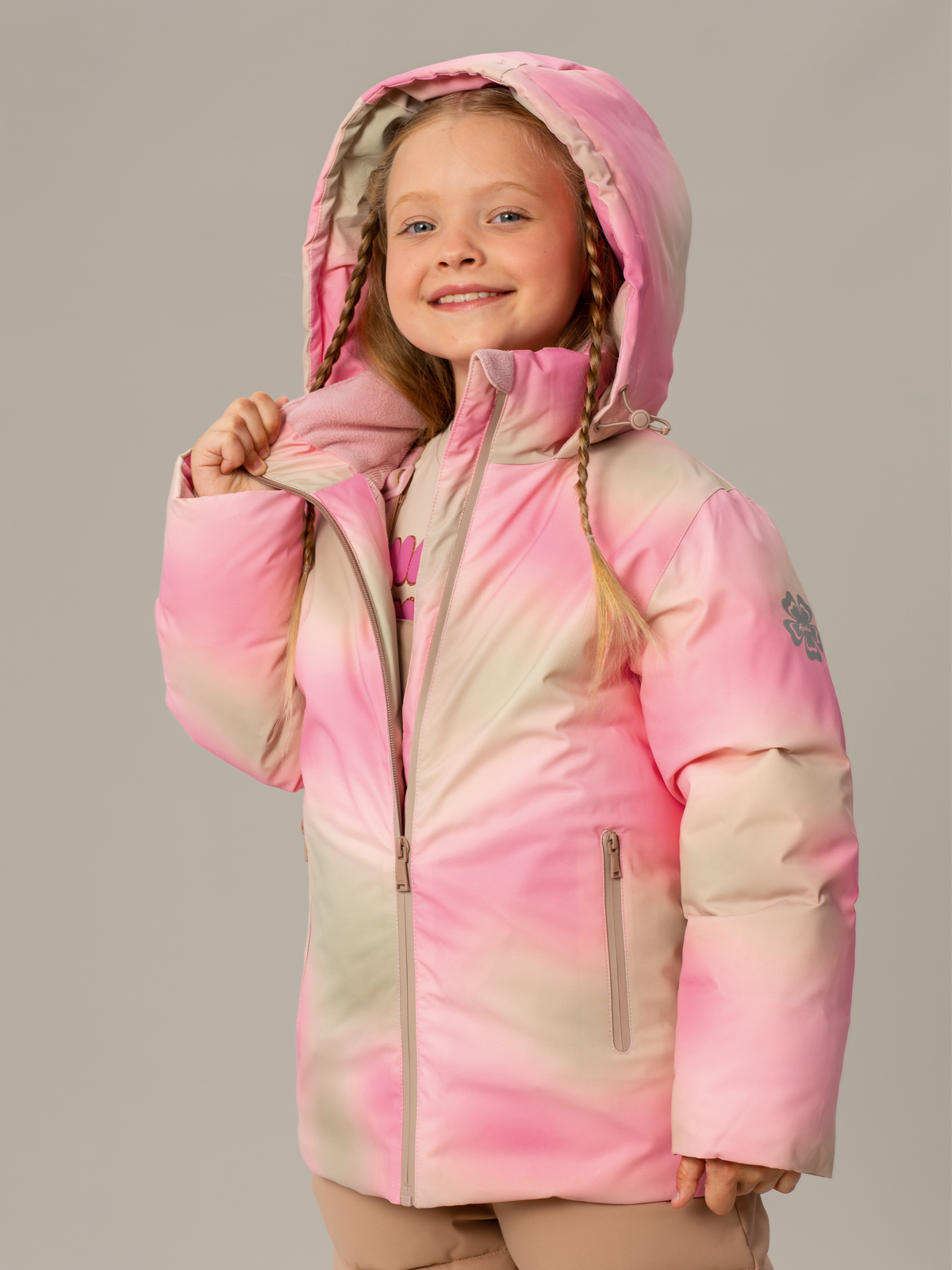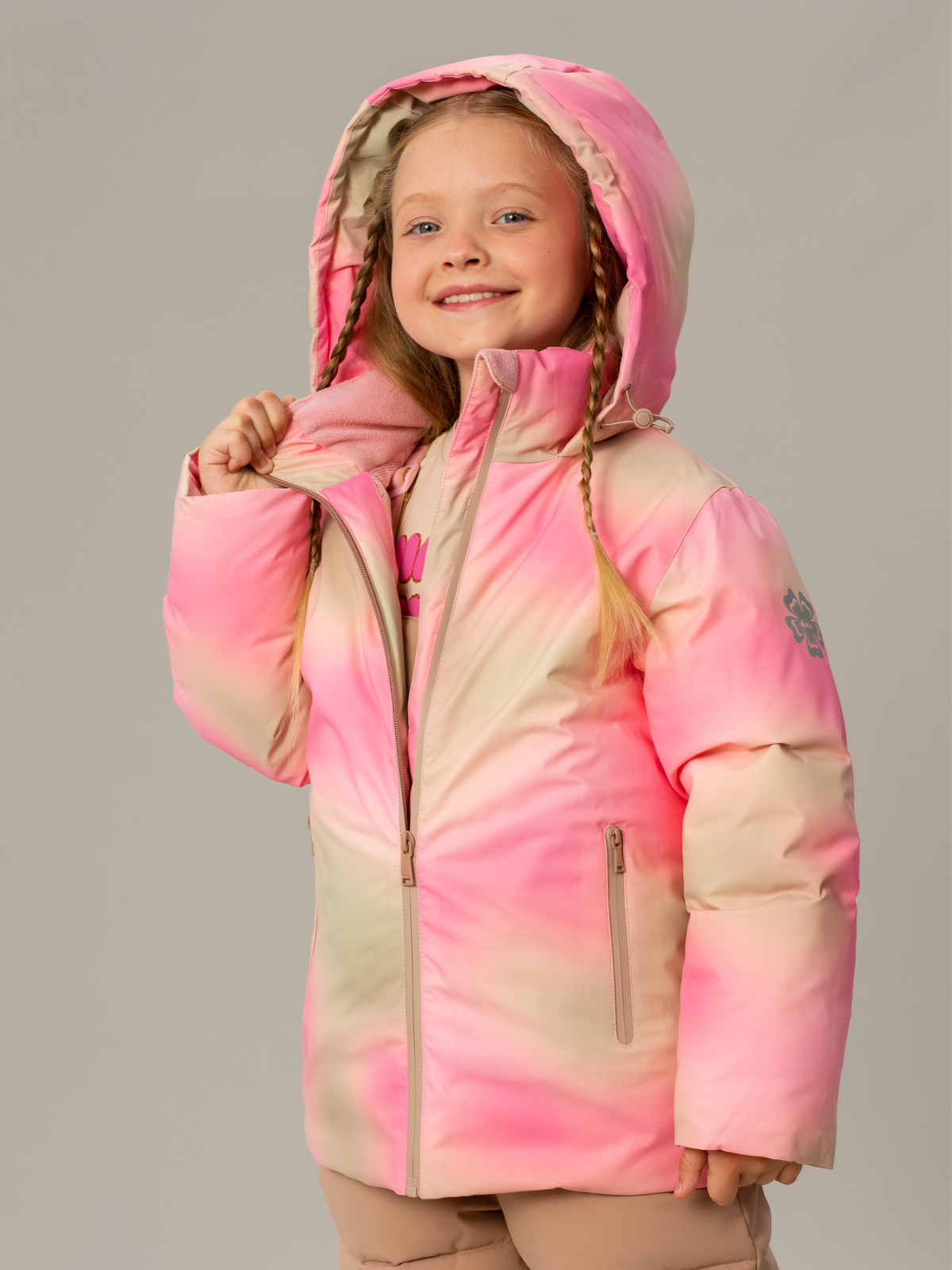 Зимняя куртка для девочки с оригинальным розово-бежевым принтом станет ярким акцентом в гардеробе. Модель идеально подходит для ежедневного использования, гармонично сочетаться как с джинсами, так и с юбками, позволяя создавать разнообразные стильные образы для любой ситуации. Куртка выполнена из высококачественной мембранной ткани с показателями 5000/5000, которая надёжно защищает от ветра и осадков, при этом обеспечивая отличную воздухопроницаемость. Это позволяет ребенку чувствовать себя комфортно даже при активном движении. Утеплитель — искусственный пух плотностью 300 г/м², который эффективно сохраняет тепло даже в сильные морозы. Внутренняя высокотехнологичная подкладка Omni Heat отражает тепло тела ребенка и возвращает его обратно.Практичные детали включают регулируемый капюшон, который обеспечивает дополнительную защиту от непогоды. Удобная застежка на молнии позволяет легко надевать и снимать куртку, а также надежно защищает от холода.