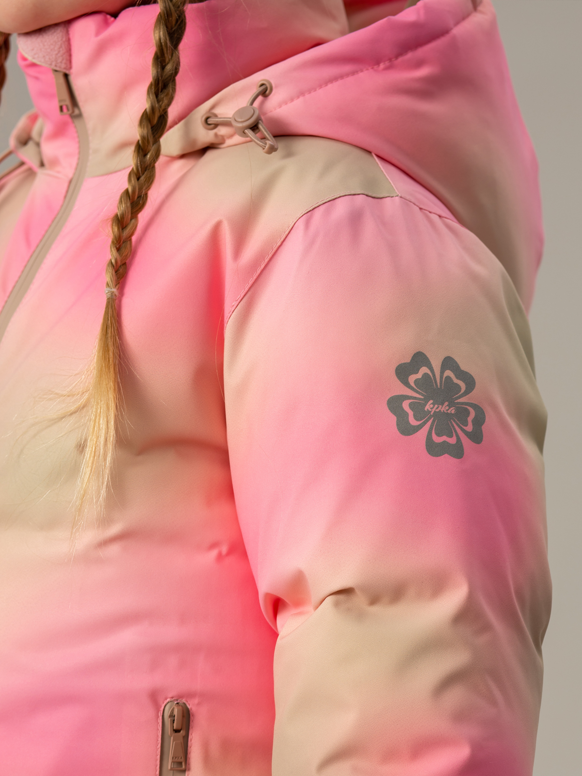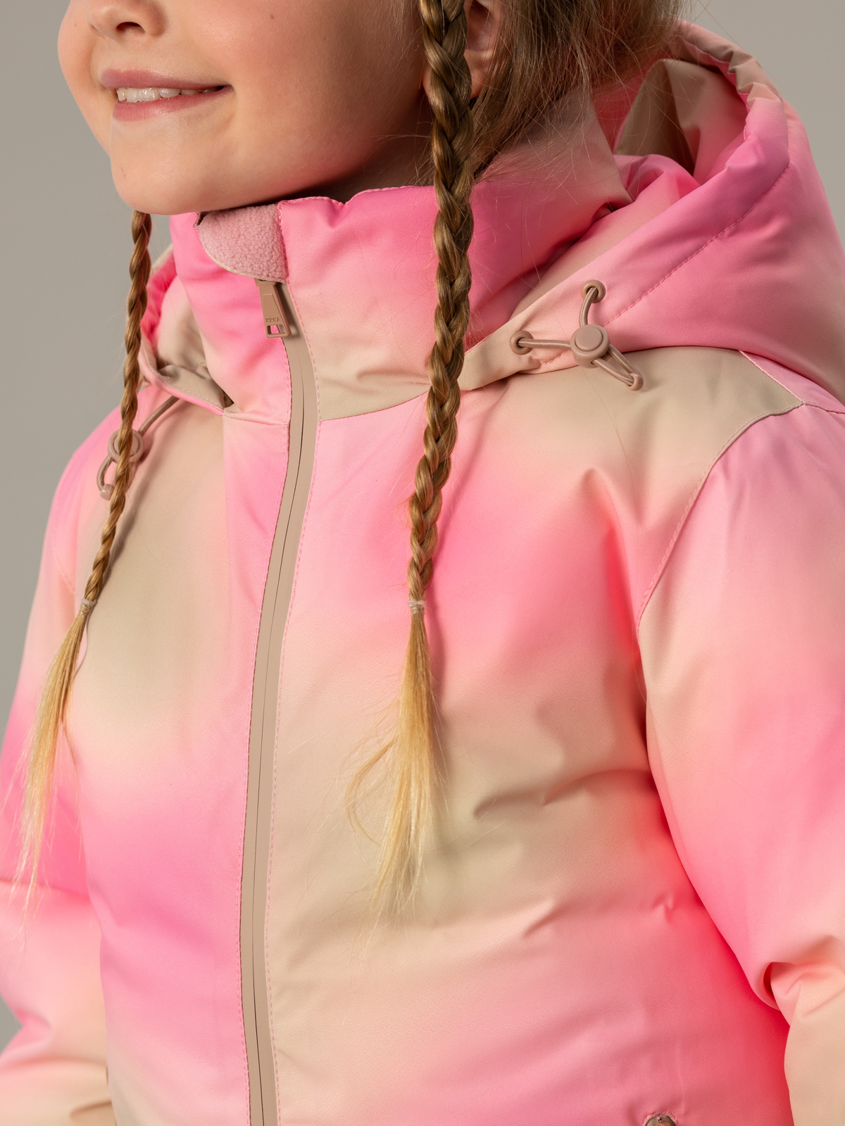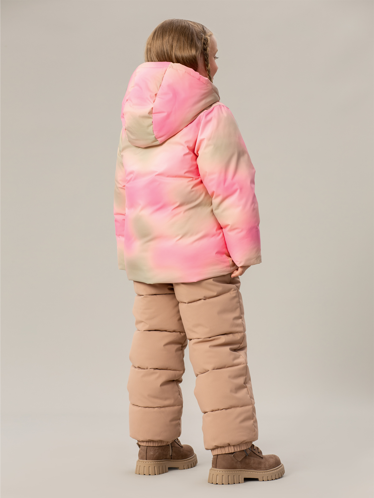 Зимняя куртка для девочки с оригинальным розово-бежевым принтом станет ярким акцентом в гардеробе. Модель идеально подходит для ежедневного использования, гармонично сочетаться как с джинсами, так и с юбками, позволяя создавать разнообразные стильные образы для любой ситуации. Куртка выполнена из высококачественной мембранной ткани с показателями 5000/5000, которая надёжно защищает от ветра и осадков, при этом обеспечивая отличную воздухопроницаемость. Это позволяет ребенку чувствовать себя комфортно даже при активном движении. Утеплитель — искусственный пух плотностью 300 г/м², который эффективно сохраняет тепло даже в сильные морозы. Внутренняя высокотехнологичная подкладка Omni Heat отражает тепло тела ребенка и возвращает его обратно.Практичные детали включают регулируемый капюшон, который обеспечивает дополнительную защиту от непогоды. Удобная застежка на молнии позволяет легко надевать и снимать куртку, а также надежно защищает от холода.