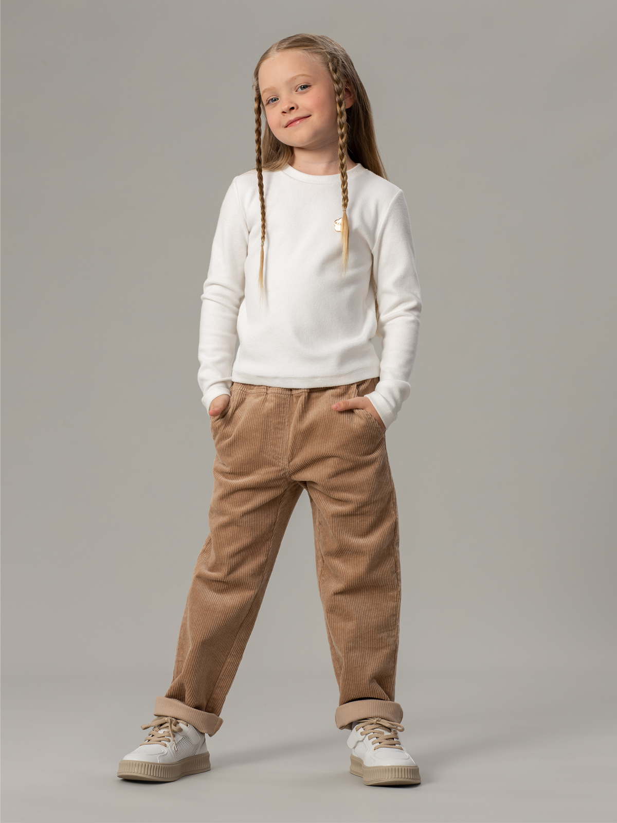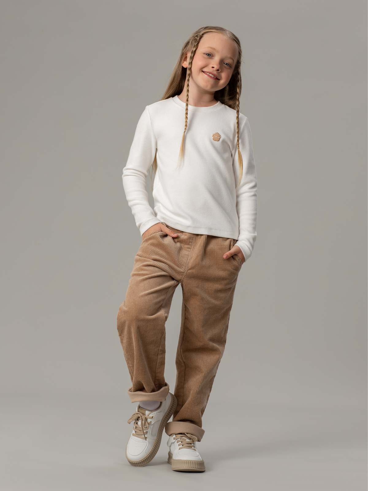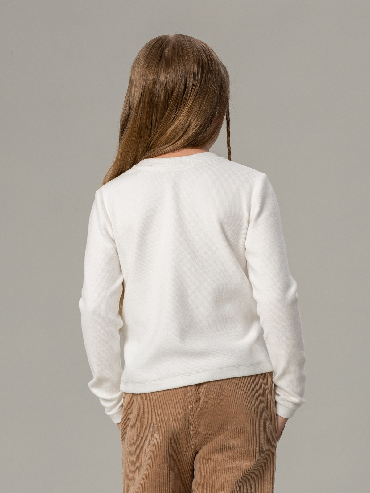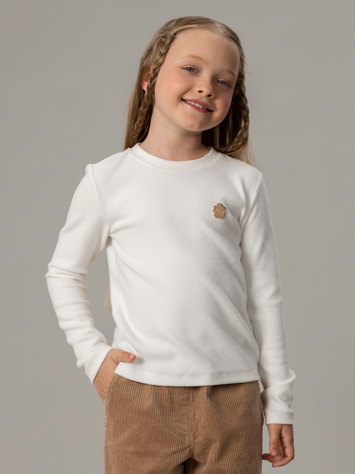 Базовый лонгслив белого цвета для девочек изготовлен из ткани, в состав которой входят хлопок, вискоза и эластан. Эта комбинация материалов обеспечивает высокую мягкость и комфорт при носке, делая лонгслив идеальным выбором для повседневного использования.Модель легко комбинируется с джинсами, юбками и другой одеждой, становясь незаменимой базовой вещью в гардеробе девочки. Лонгслив имеет свободный крой, который не стесняет движений и позволяет ребенку чувствовать себя комфортно в течение всего дня.