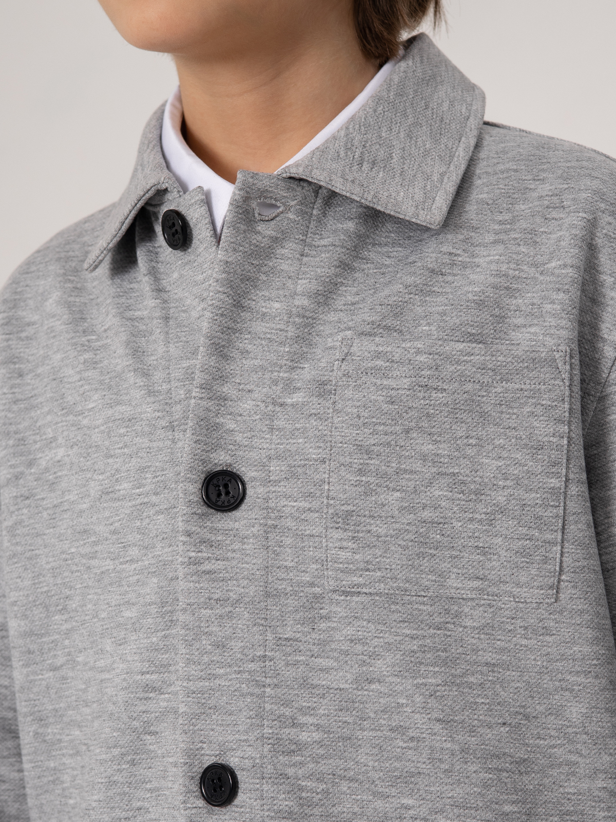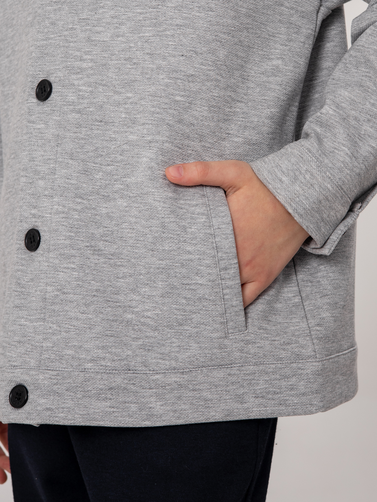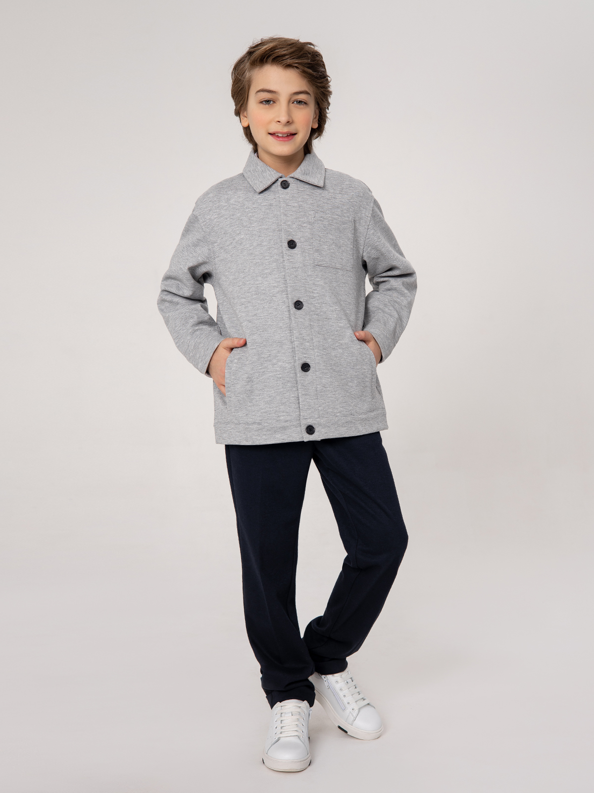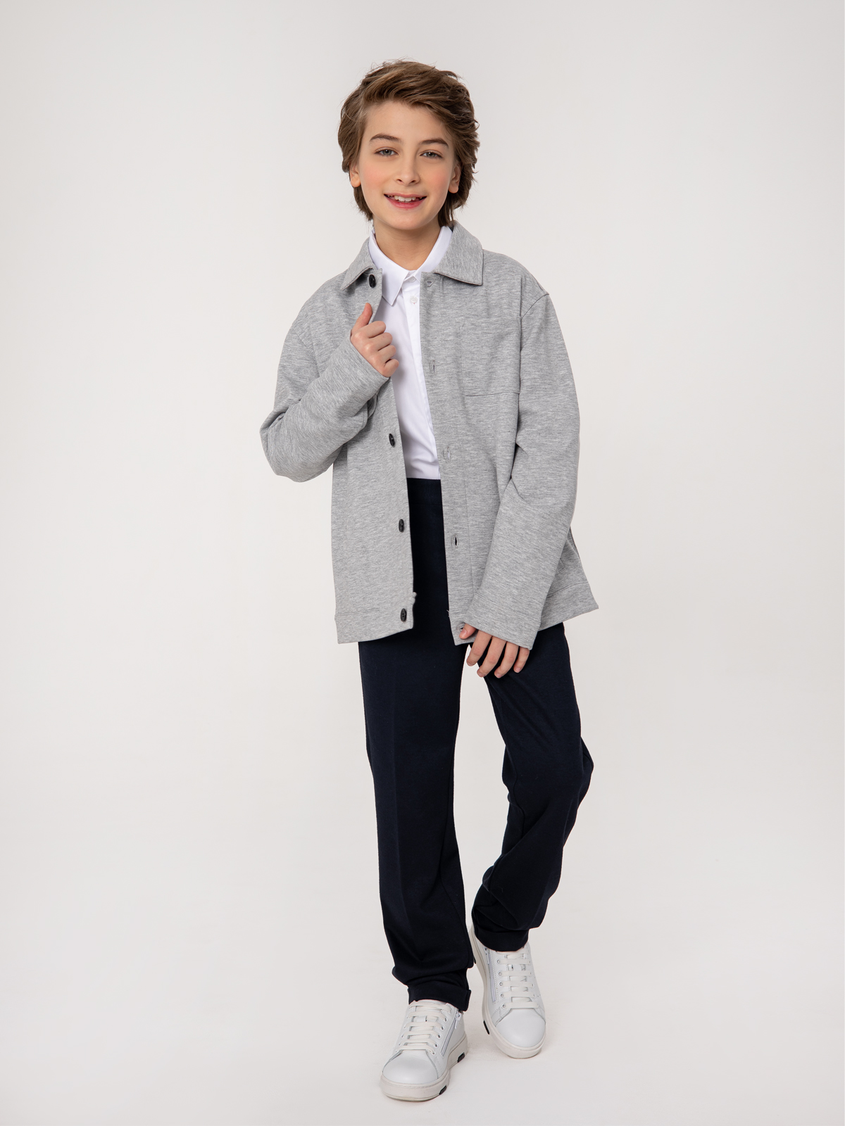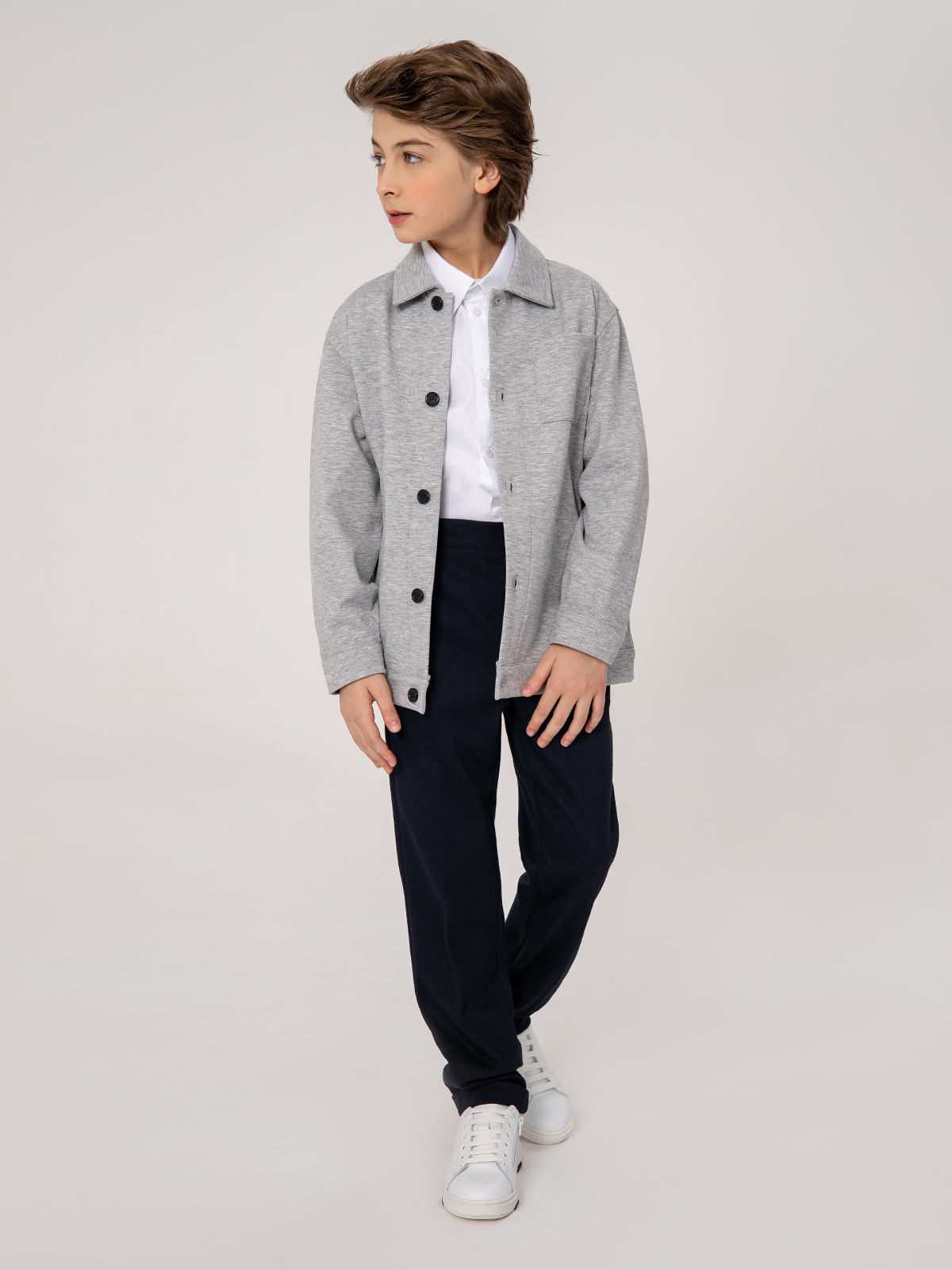Трикотажный пиджак для школы трендового рубашечного кроя. Выполненный из фактурной поливискозы пиджак позволит свободно двигаться и выглядеть стильно. Тщательно выверенная конструкция, свободный крой и эластичная ткань, позволяют ребенку комфортно находиться в школе длительное время и не чувствовать себя скованно.