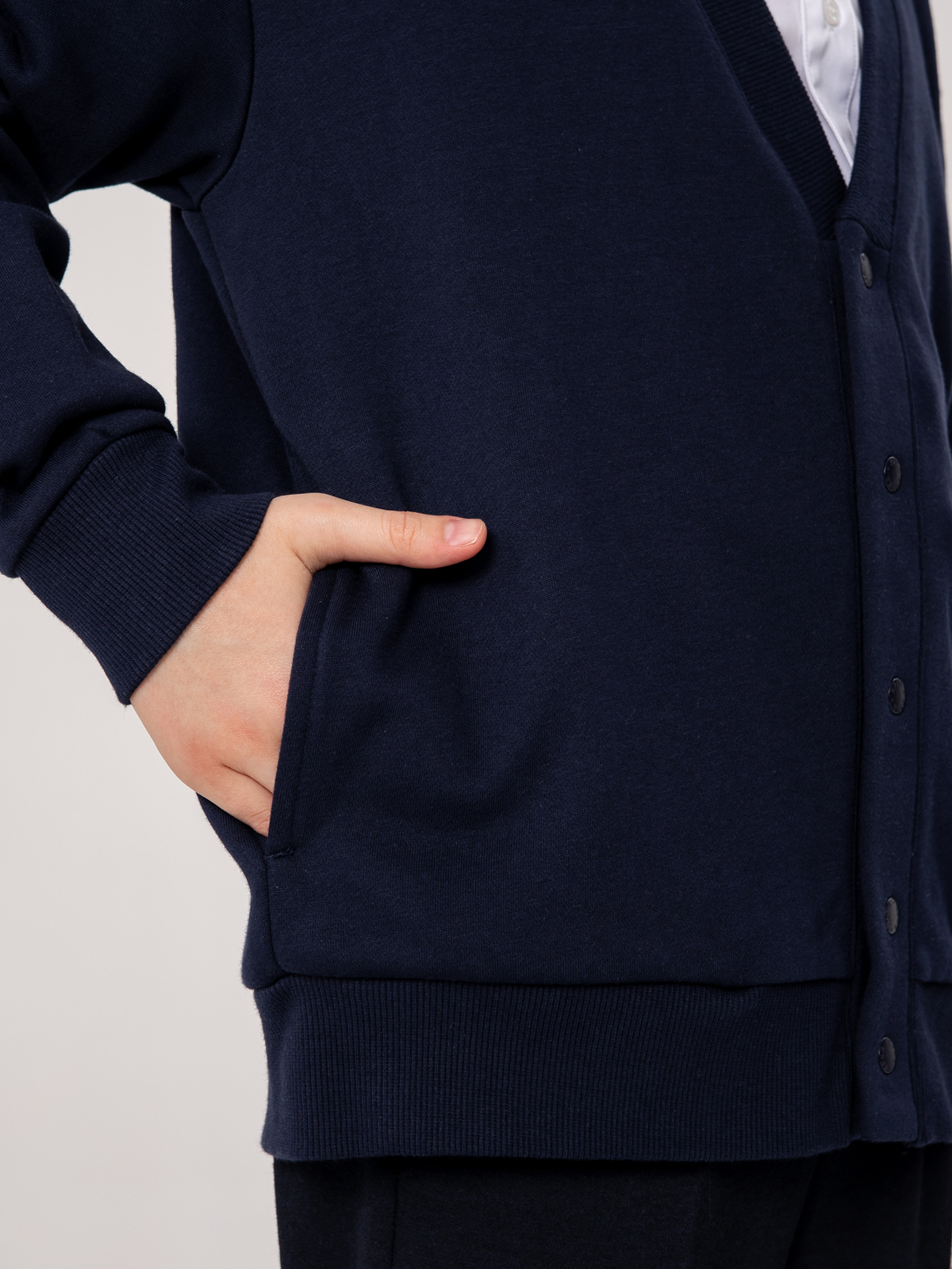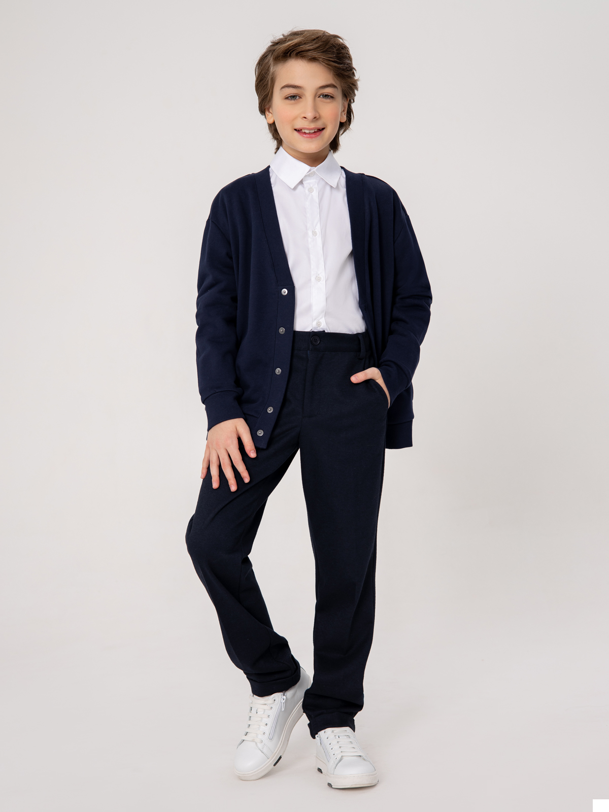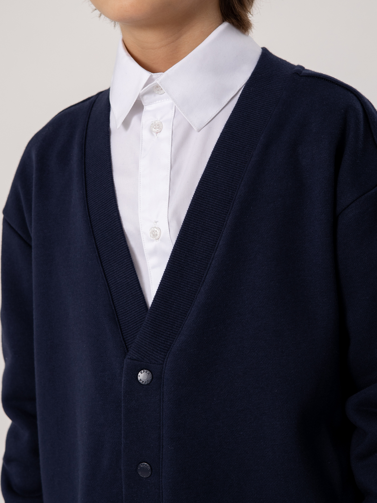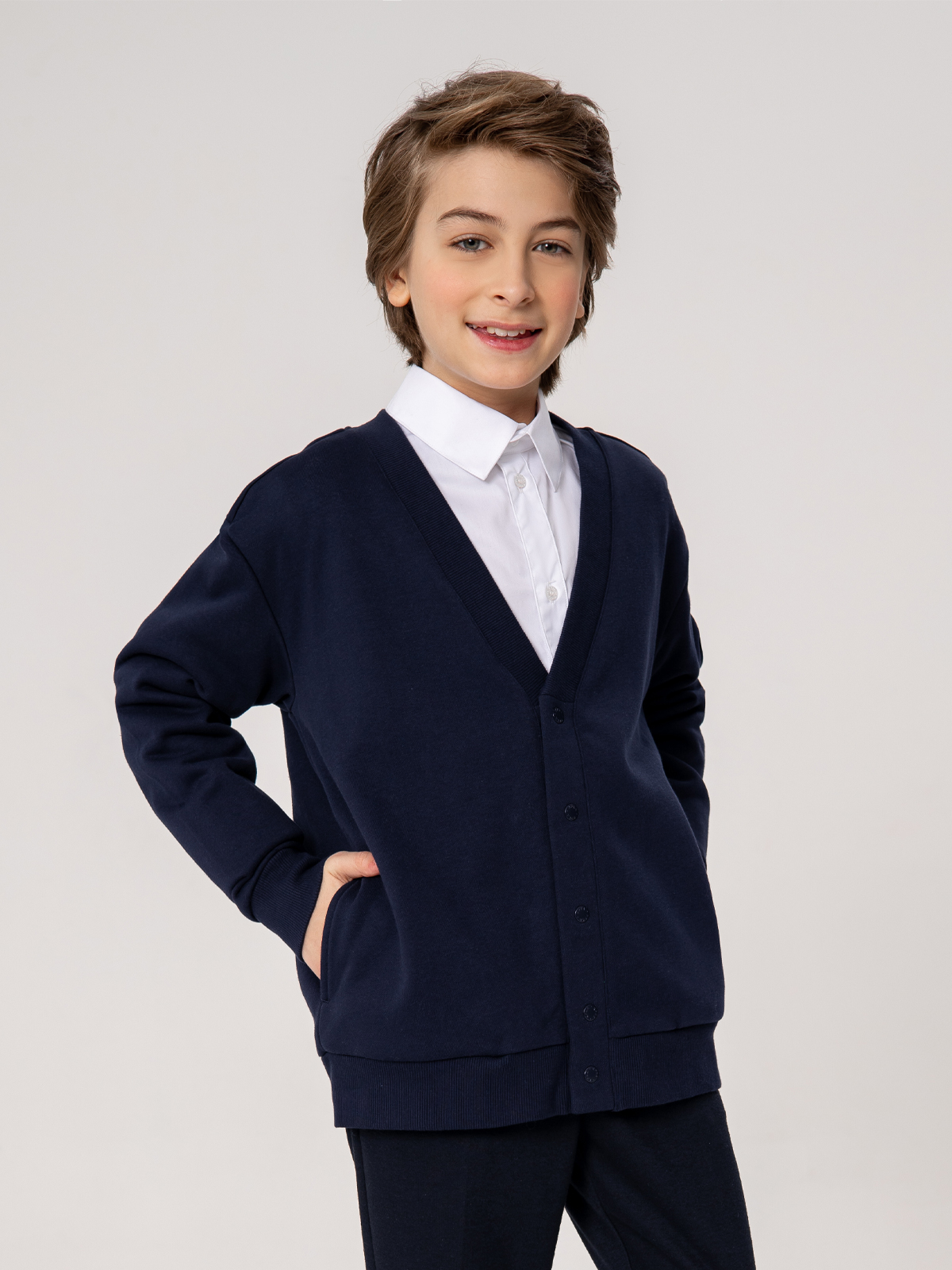 Трендовый джемпер оверсайз силуэта из футера с начесом не только защитит от холода, но и позволит создать стильные школьные образы. Манжеты и низ изделия из рибаны. Удобная застежка на кнопки.
