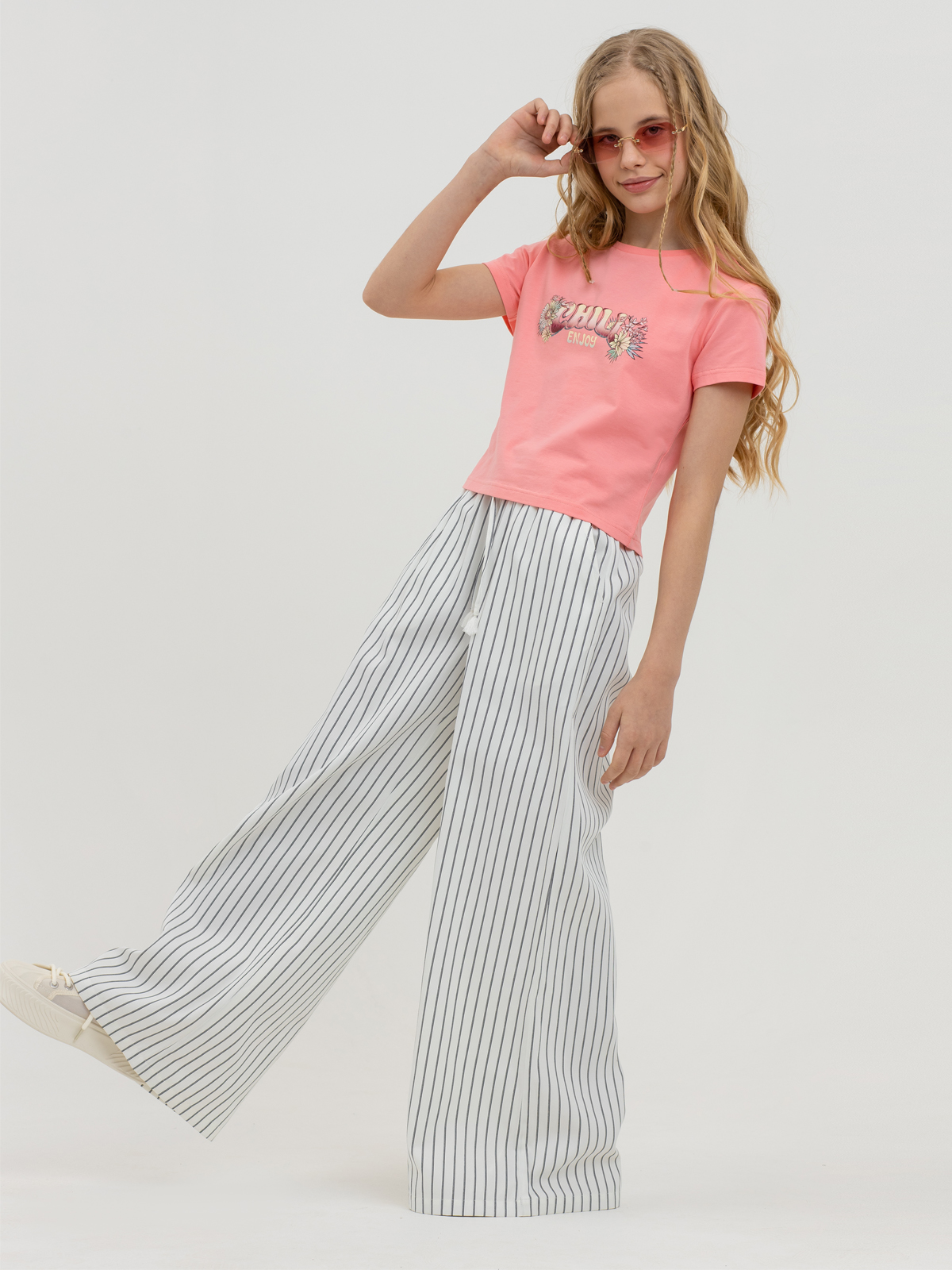 Брюки для девочек — идеальный выбор для активных игр и повседневного комфорта, сочетающий натуральные материалы и продуманный дизайн. Мягкая, дышащая и гипоаллергенная ткань впитывает влагу, обеспечивает терморегуляцию и приятна для детской кожи в любую погоду. Расслабленный крой с комфортной средней посадкой гарантирует комфорт во время эксплуатации. Эластичный пояс с кулиской регулируется по обхвату, не натирает и надежно фиксируется. Боковые карманы добавляют практичности — удобно хранить полезные мелочи.
