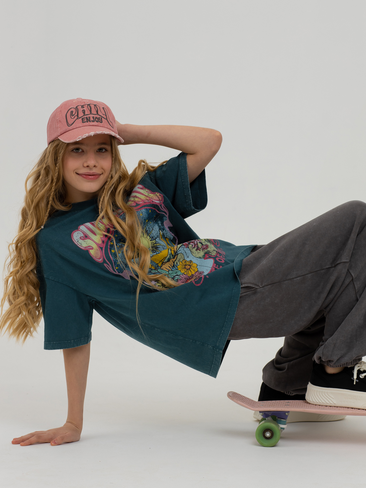 Футболка с принтом - универсальная вещь в гардеробе. Свободный прямой крой со спущенной линией плеча обеспечивает легкость движений и естественный силуэт. Круглый вырез горловины и короткие рукава добавляют изделию практичности.