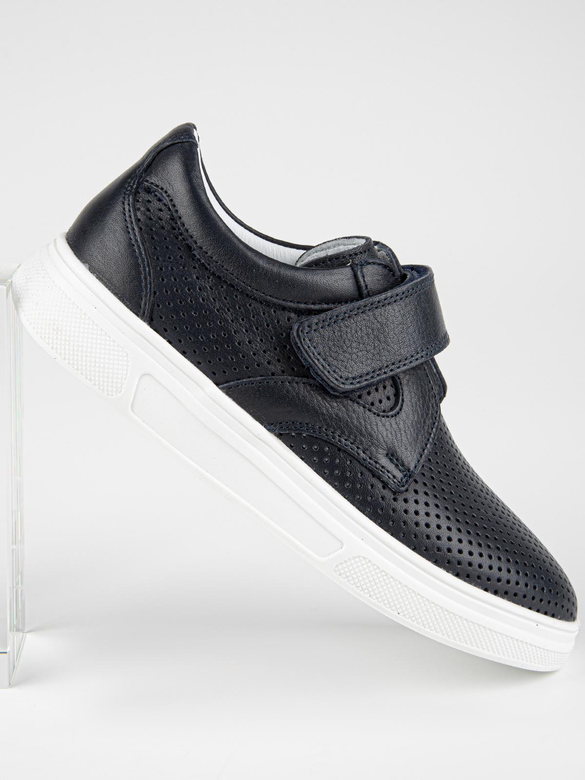 Повседневные полуботинки для мальчика из натуральной кожи обеспечивают правильную циркуляцию воздуха, а наличие подсводника и жёсткого задника создает дополнительный комфорт. Липучка ускоряет и облегчает процесс обувания. Подошва из гибкого износостойкого материала ТЭП.