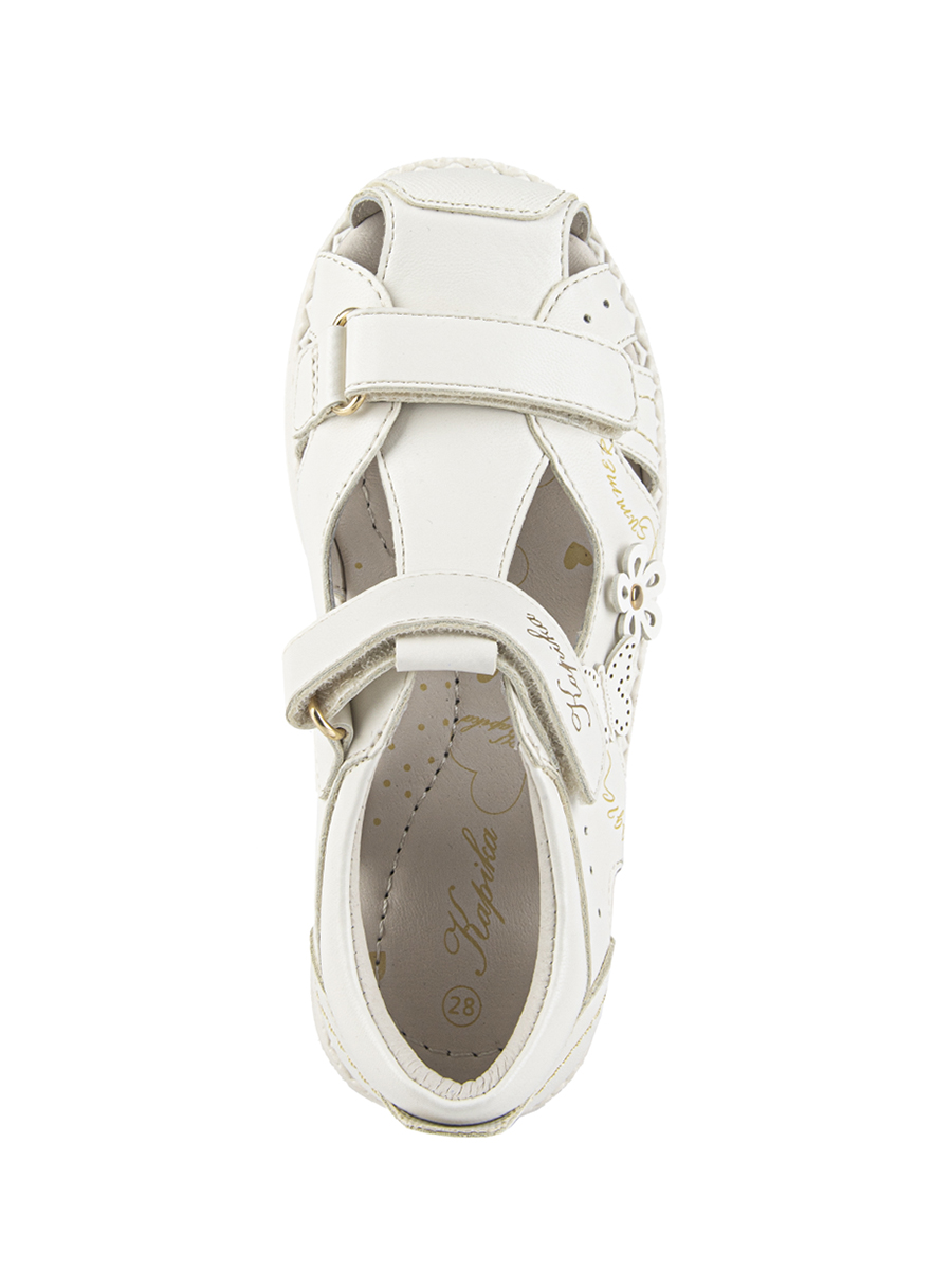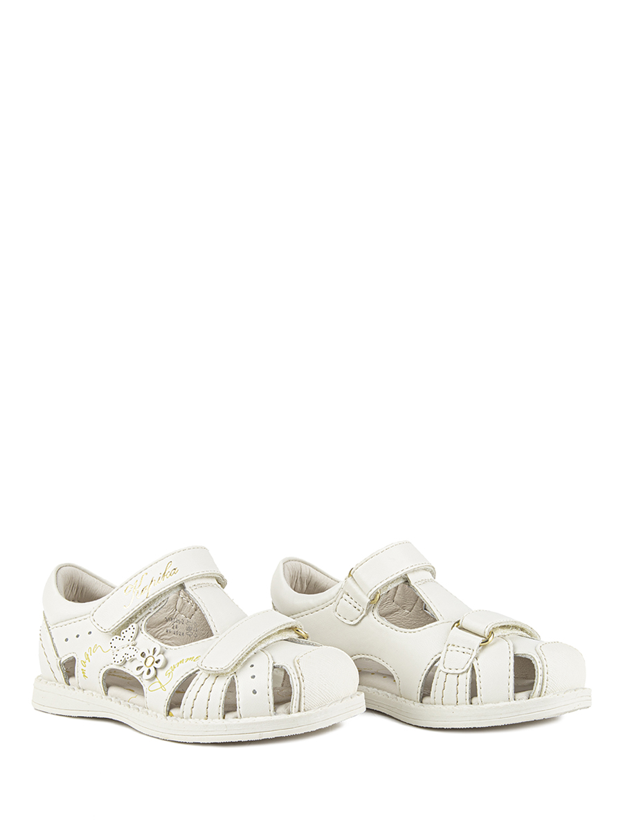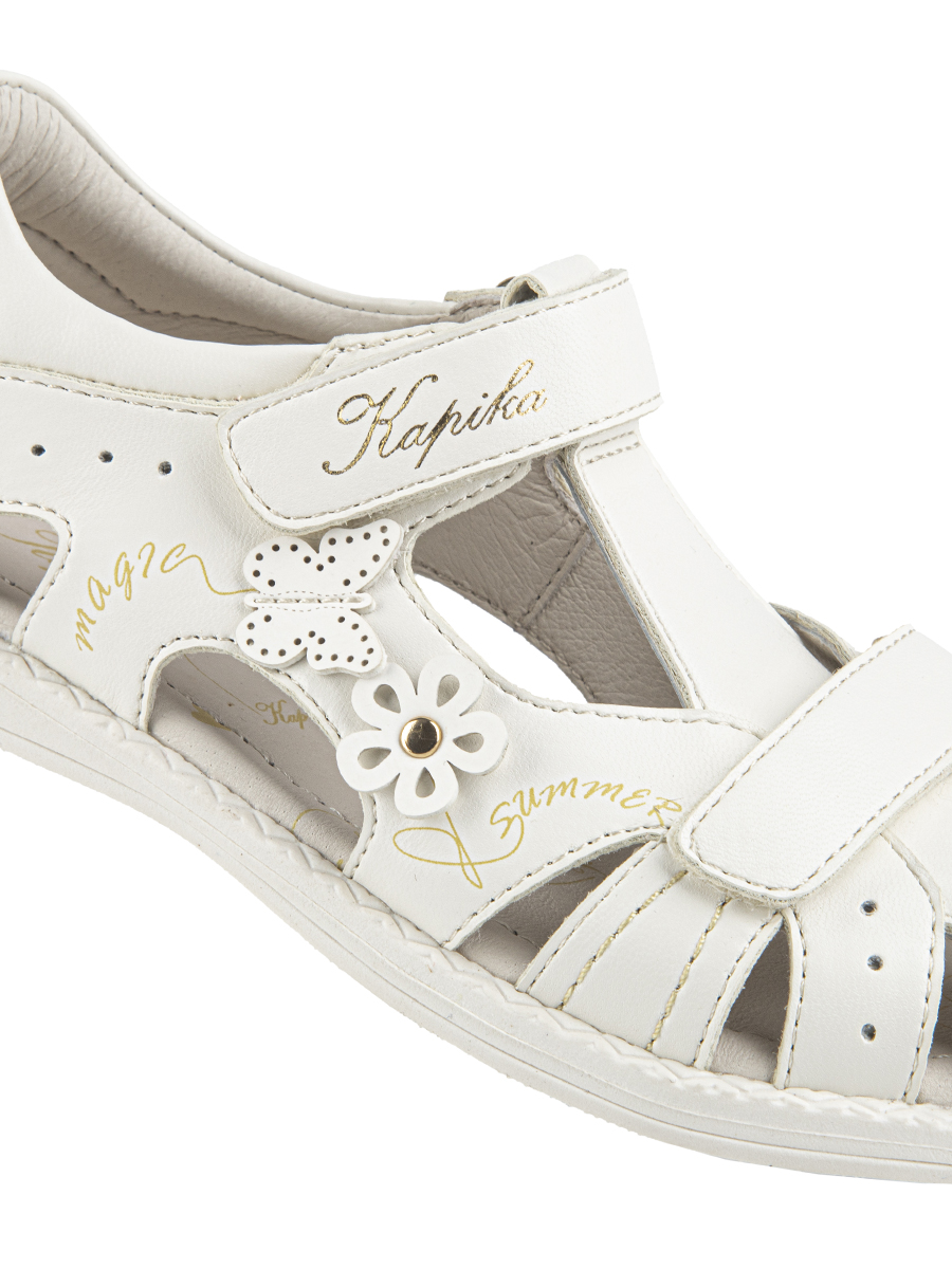 Эти сандалии для девочки изготовлены из искусственного материала для верхней части, но имеют подкладку и стельку из натуральной кожи для комфорта. Они также имеют жесткий задник и подсводник для поддержки и формирования правильной формы стопы. Подошва сделана из термопластичной резины (TPR), что обеспечивает долговечность и сцепление с поверхностью.