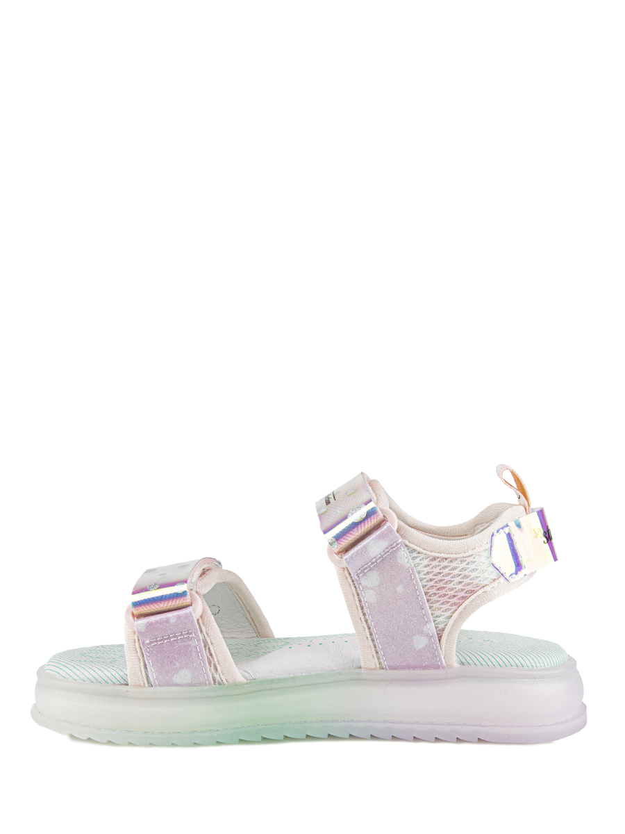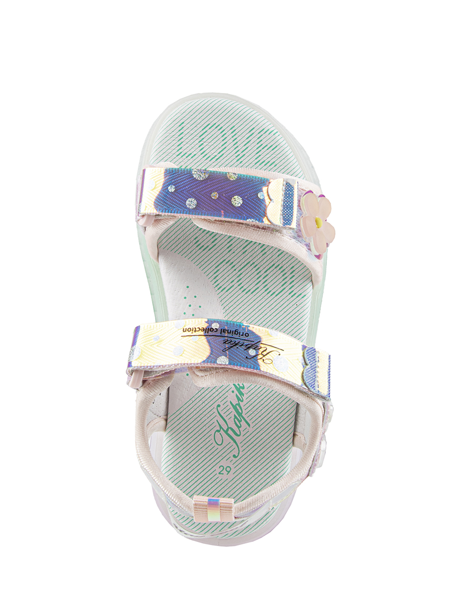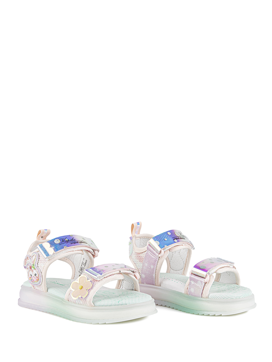 Модные босоножки для девочки с верхом из высокопрочной искуственной кожи и текстиля, будут надежно фиксироваться на ноге, за счет липучки. Натуральная кожа в подкладке и стельке обеспечит комфортное ношение в течении дня. Облегченная подошва отличается отличной амортизацией.