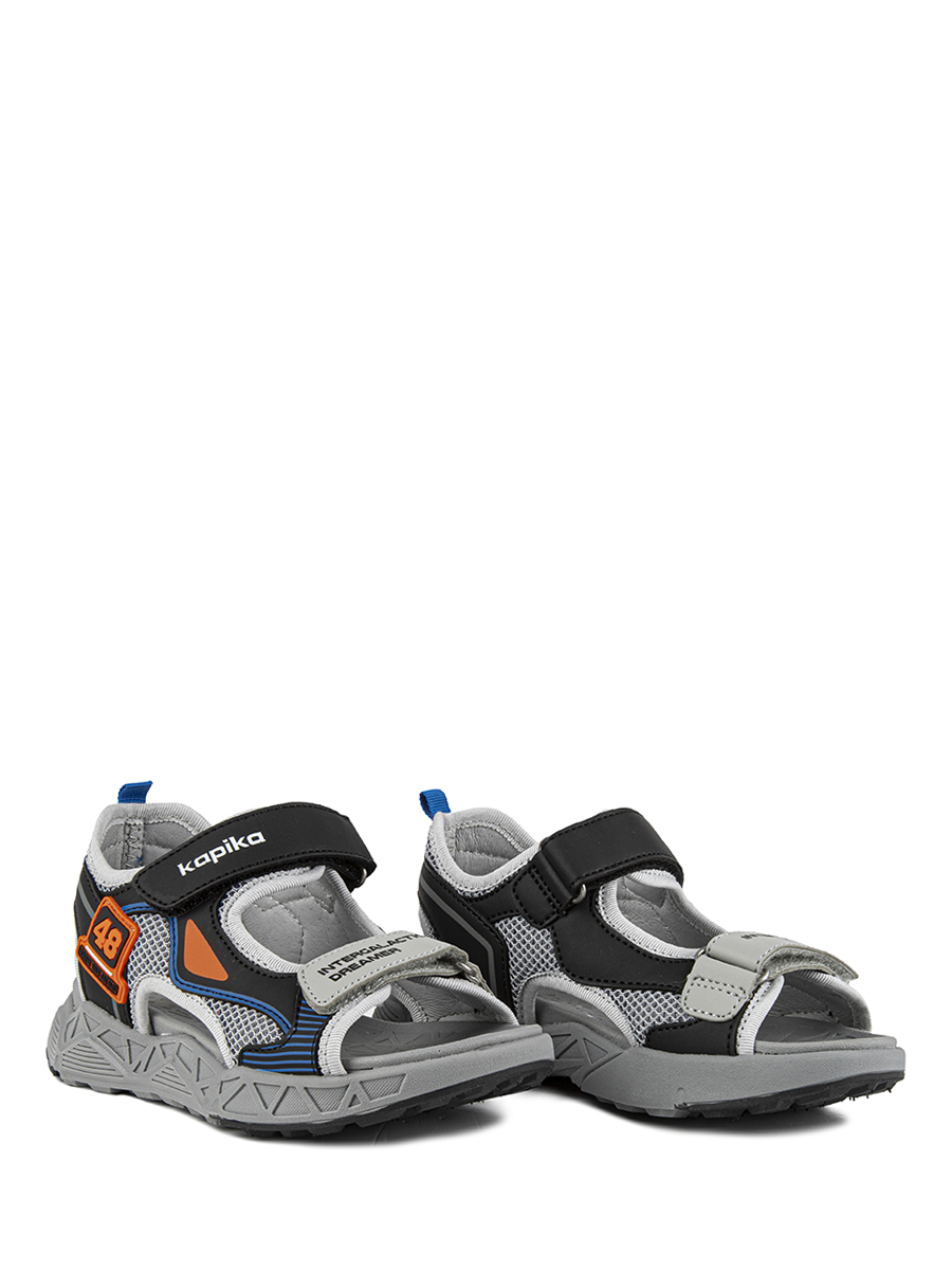 Открытые модные босоножки на спортивной подошве понравятся каждому мальчишке. Материал верха сочетает в себе искусственную кожу и текстиль. Липучки помогут отрегулировать посадку по ноге, а подкладка из натуральной кожи обеспечит комфортную носку. Легкая и гибкая подошва отлично амортизирует и создает дополнительный комфорт.