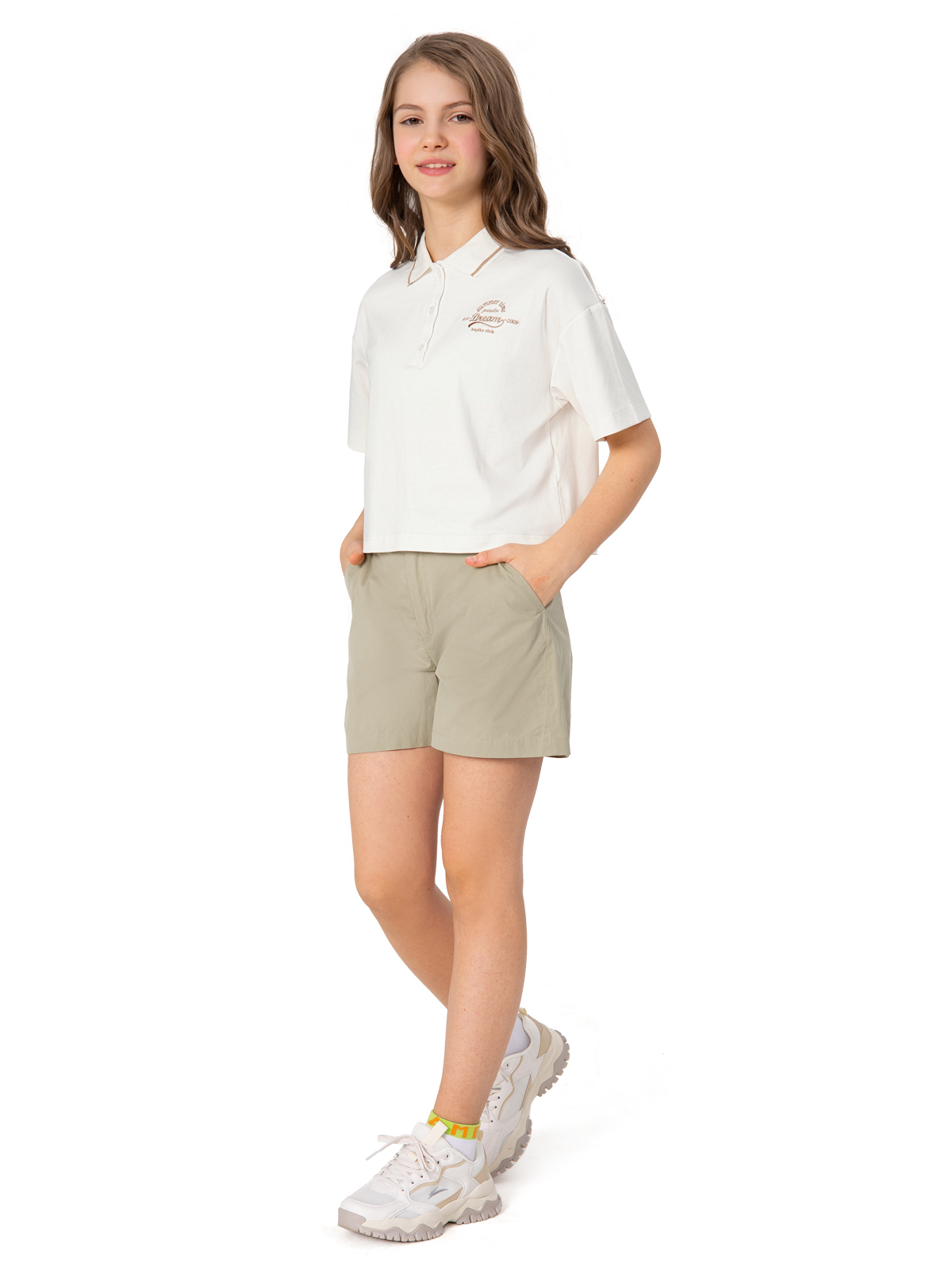 Хлопковые шорты цвета хаки в стиле сафари. Идеально подойдут для повседневной носки в летние жаркие дни. Данная модель дополнена текстильным ремнем и функциональной потайной регулировкой объема.