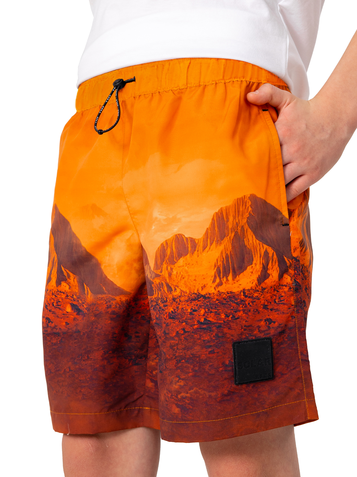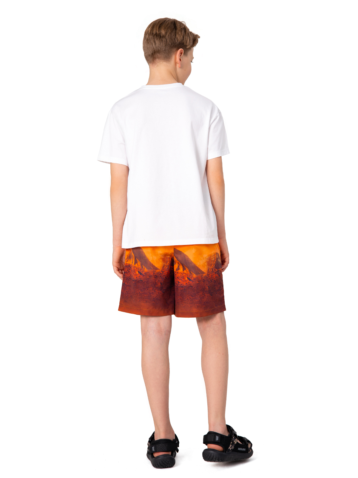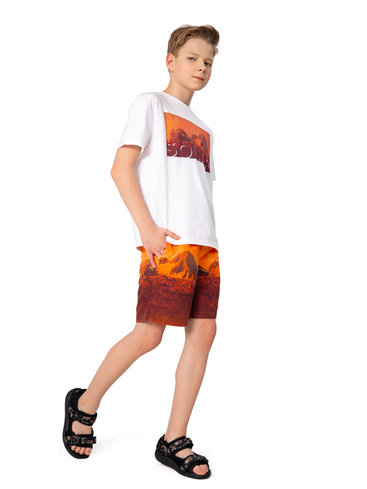 Борд-шорты для мальчика выполнены из качественной дышащей ткани, тактильно приятной для кожи ребенка. Внутри трусы из мягкой эластичной сетки. Шорты на резинке комфортно садятся по фигуре, не сползая и не скатываясь во время плавания. Модные шорты подходят не только для плавания, но и для активного времяпрепровождения на свежем воздухе. Главной особенностью данной модели является изображение, которое было создано при помощи ИИ
