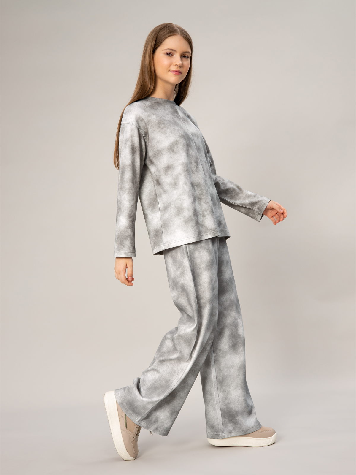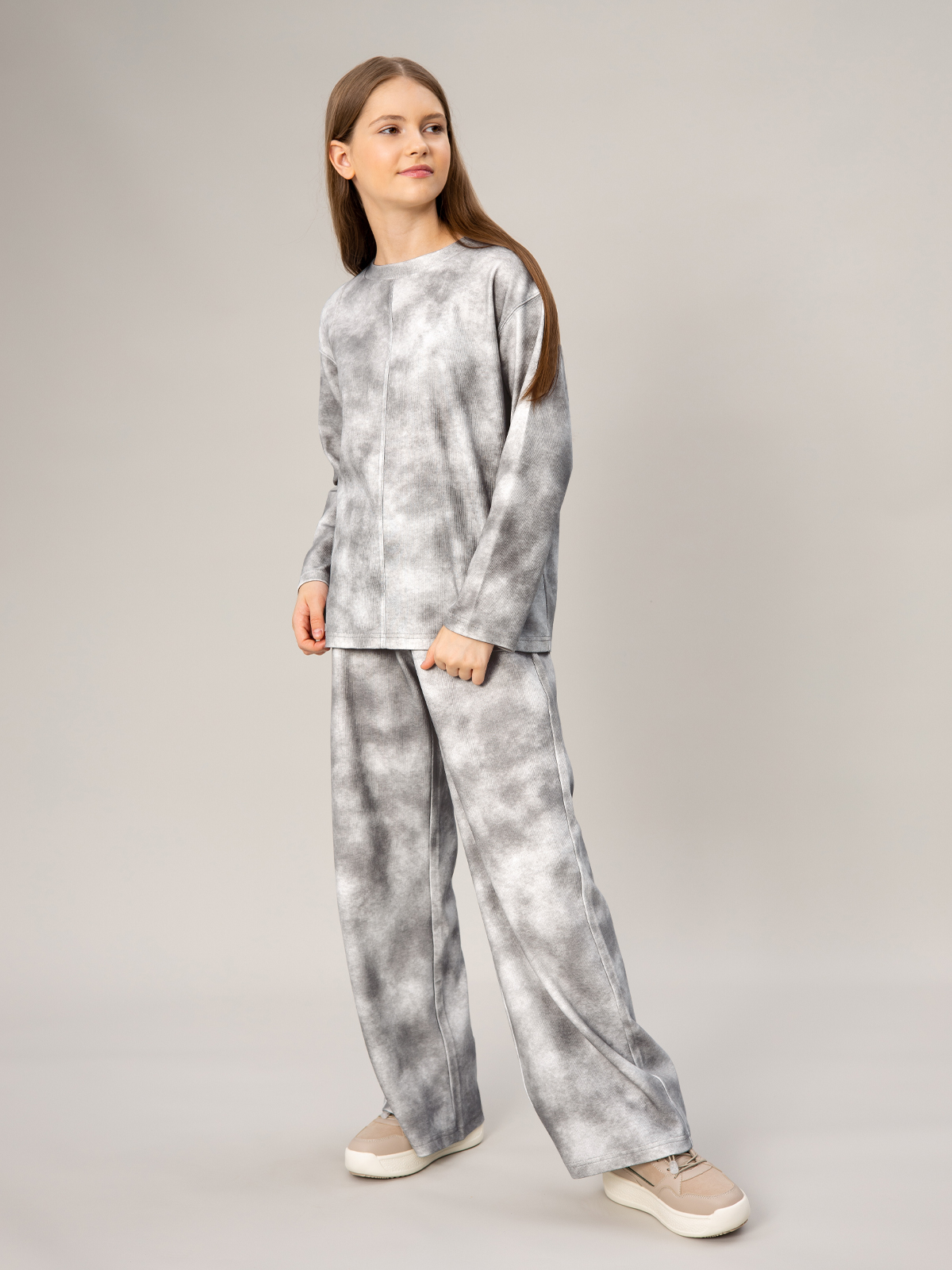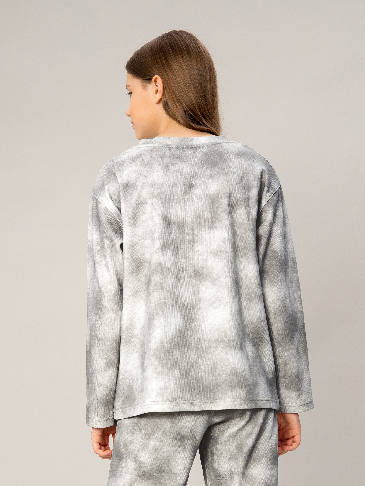 Стильный свитшот для девочки с оригинальным серым принтом — идеальный выбор для повседневной носки. Модель отличается свободным кроем, который обеспечивает комфорт при движении и не стесняет движений. Особенность дизайна — декоративный шов спереди, который добавляет изделию современный акцент. Ткань из вискозы, полиэстера и эластана делает свитшот приятным к телу, износостойким и практичным в уходе. Вискоза обеспечивает хорошую воздухопроницаемость, полиэстер добавляет прочности и устойчивости к деформации, а эластан гарантирует идеальную посадку по фигуре. Свитшот прекрасно подходит как для школьных занятий, так и для активного отдыха. Оригинальный принт и современный дизайн делают его модным элементом гардероба девочки.