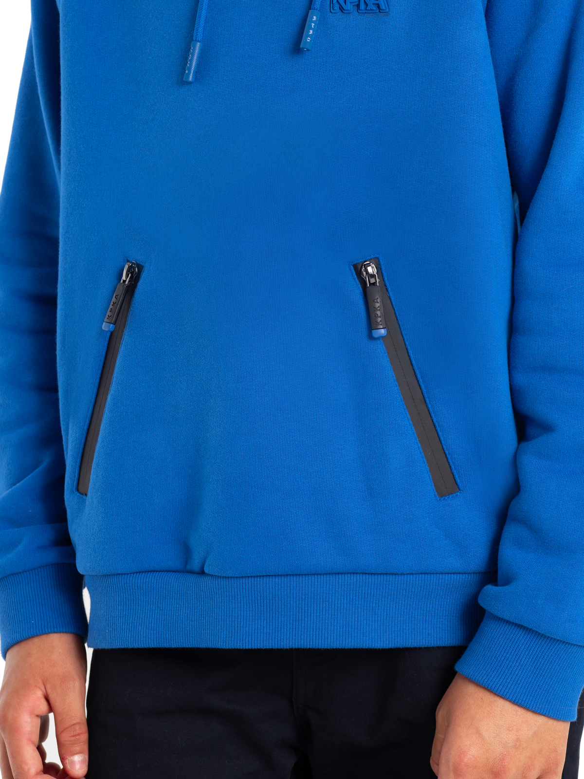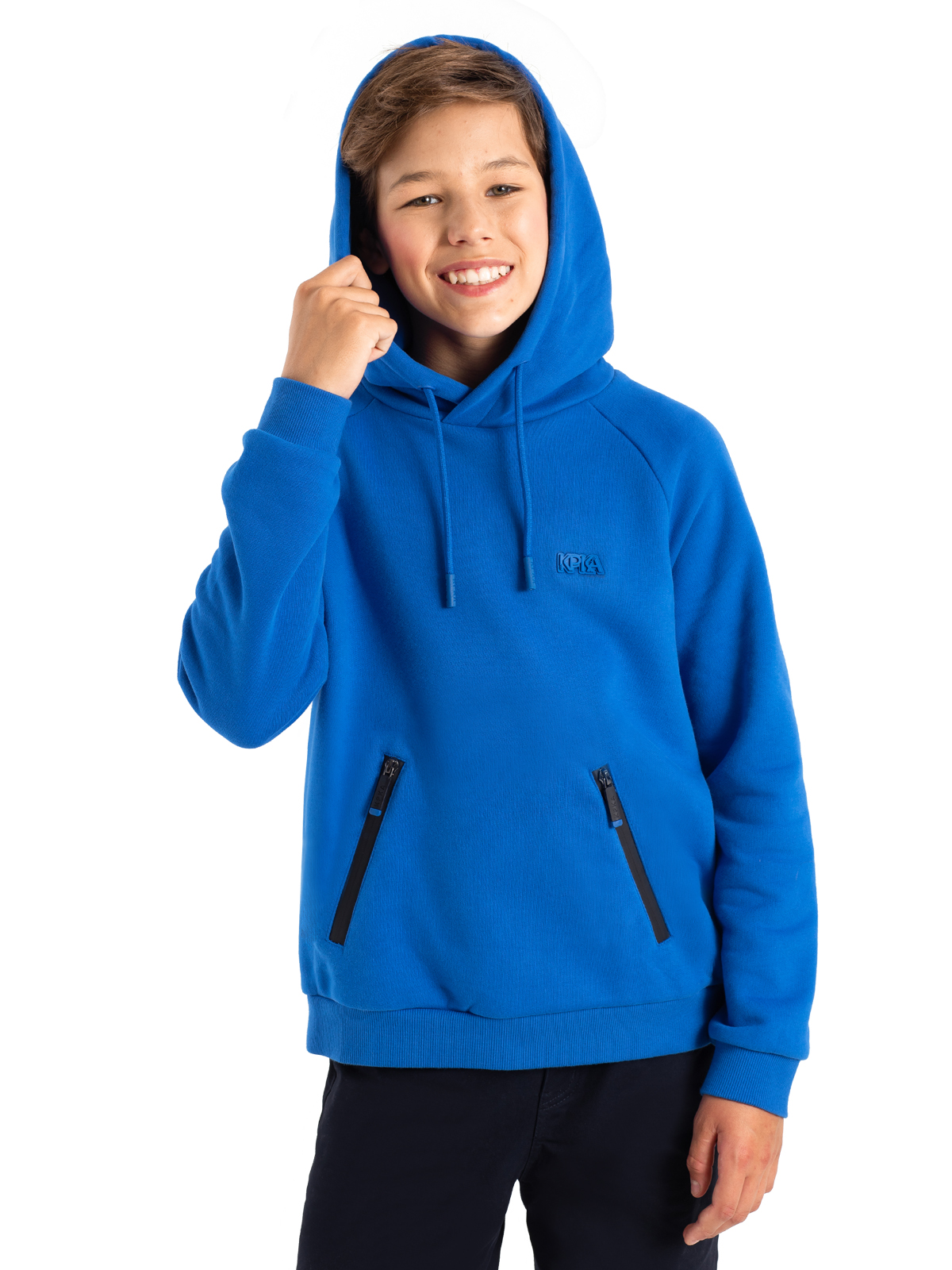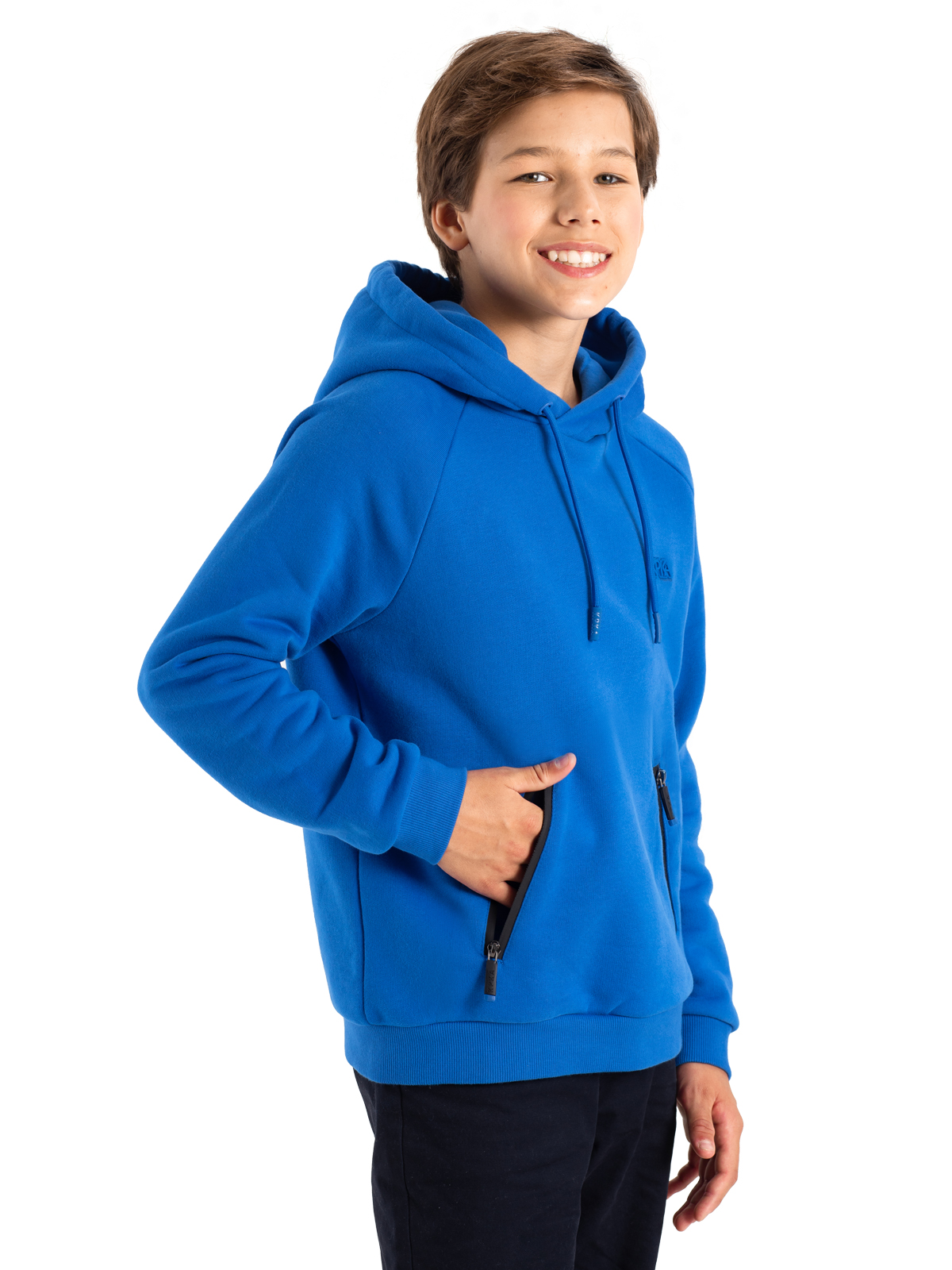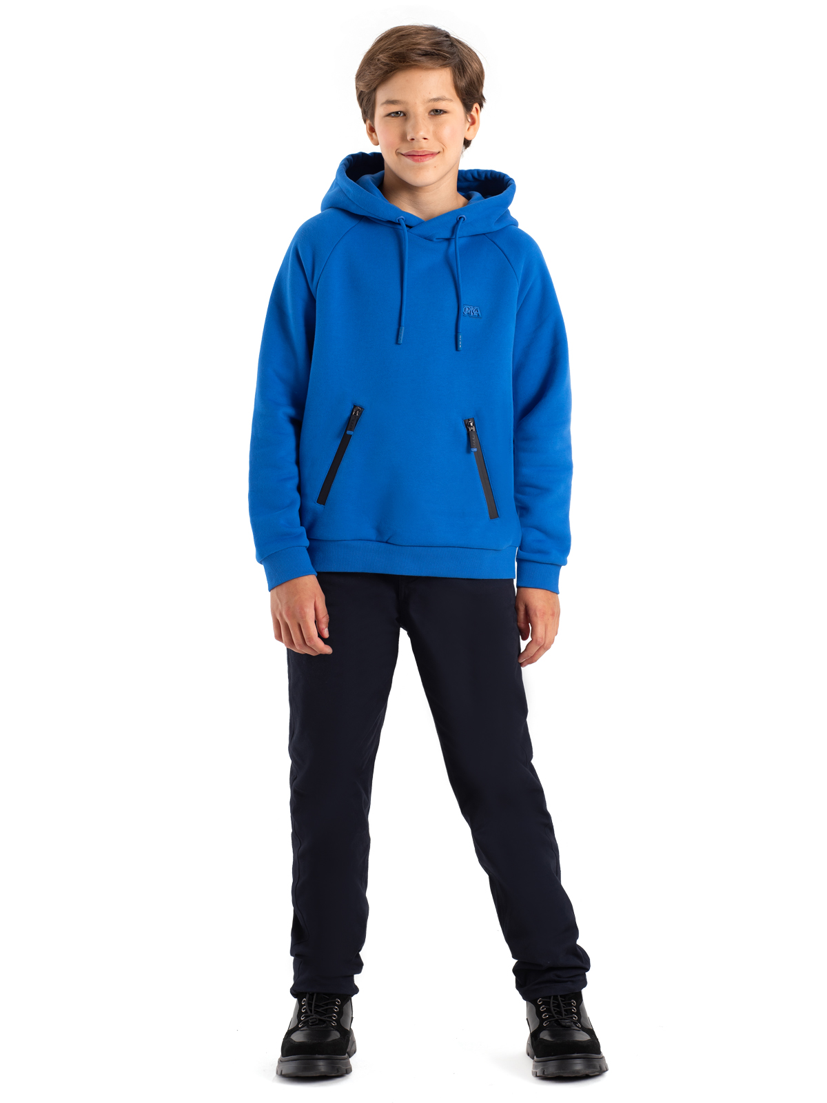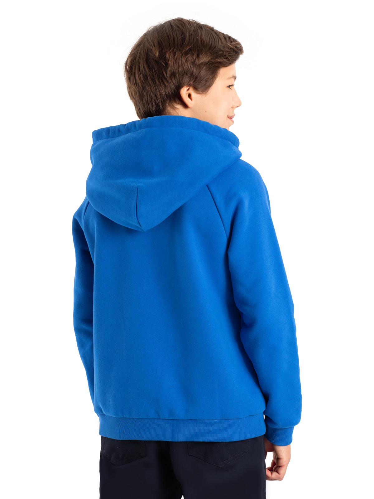 Яркая синяя толстовка для мальчика-подростка выполнена из комфортного материала — смеси хлопка с полиэстером, что обеспечивает отличную посадку и долговечность изделия. Модель оснащена практичным капюшоном на завязках, двумя удобными карманами на молниях для надёжного хранения мелочей и брендированным патчем на груди, который гармонично сочетается с основным цветом. Мягкие рибы по низу изделия и на манжетах гарантируют комфортную посадку и защиту от ветра. Эта стильная толстовка станет отличным выбором для повседневной носки, занятий спортом и активного отдыха. Сочетание качественных материалов и продуманного дизайна делает её незаменимой частью гардероба современного подростка.