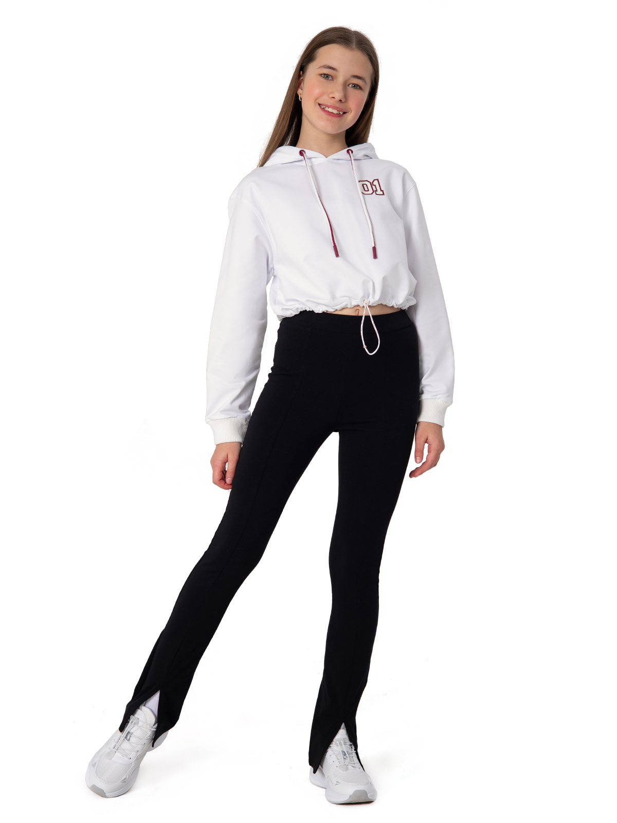 Стильная укороченная толстовка для девочки-подростка выполнена в чистом белом цвете, который легко комбинируется с любыми элементами гардероба. Модель дополнена удобным капюшоном на контрастных завязках, что добавляет образу индивидуальности. Декоративная вышивка на груди придаёт изделию модный акцент. Мягкие рибы по низу рукавов обеспечивают комфортную посадку, а кулиска по низу изделия позволяет регулировать силуэт под индивидуальные предпочтения. Эта модель станет отличным выбором для создания современных подростковых образов, сочетая в себе практичность и стиль. Качественные материалы гарантируют долговечность и комфорт при носке.