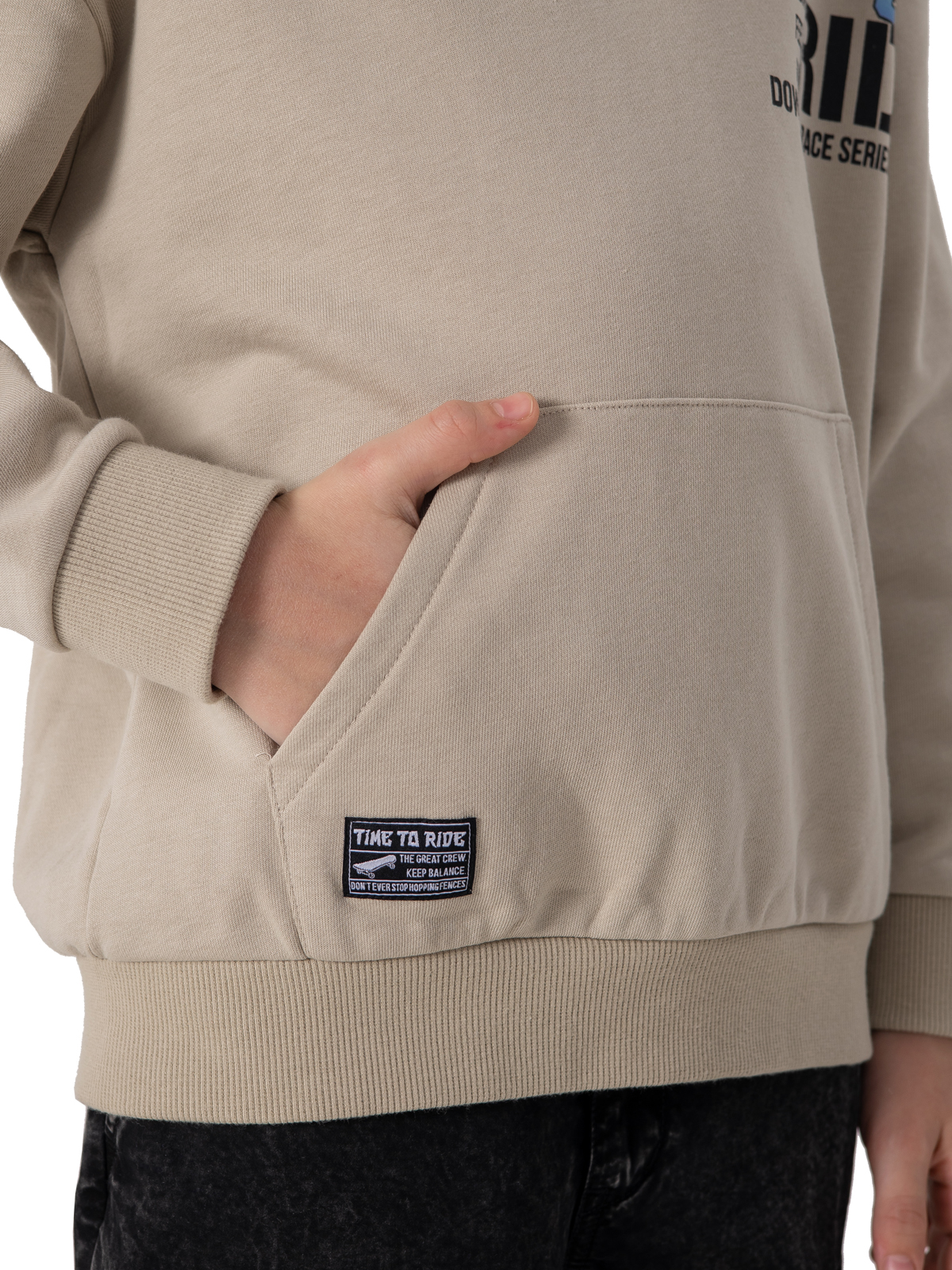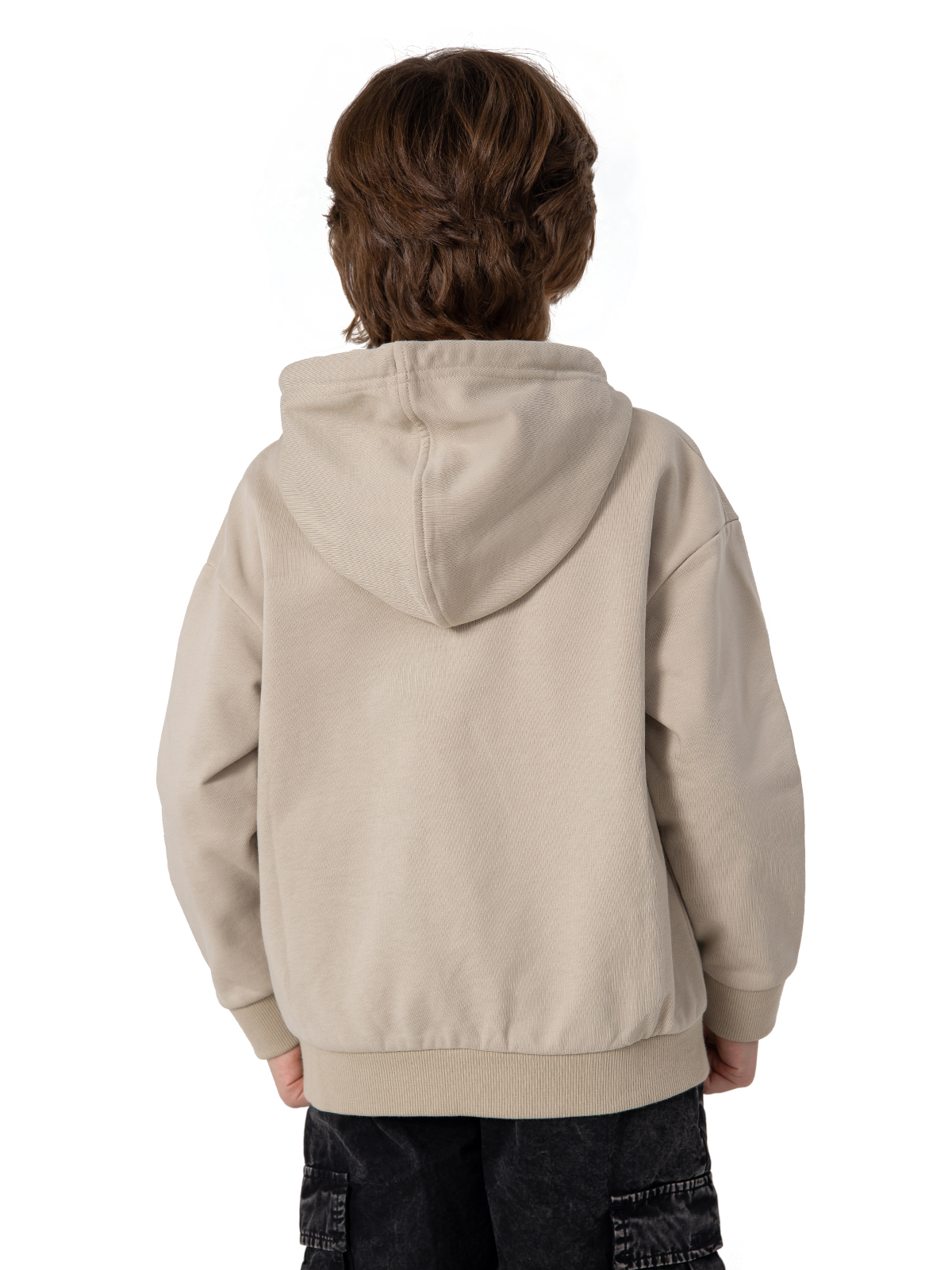 Уютная толстовка в бежевом цвете выполнена из комфортного материала — смеси хлопка с полиэстером, что обеспечивает отличную воздухопроницаемость и долговечность. Внутренняя подкладка из 100% хлопка делает изделие особенно приятным к телу. Модель оснащена практичным капюшоном с регулируемыми завязками, выразительным принтом на груди и удобным карманом-кенгуру. Мягкие рибы по низу изделия и рукавам гарантируют комфортную посадку и защиту от ветра. Благодаря качественным материалам толстовка сохраняет форму после стирки и остаётся такой же мягкой и приятной в носке. Идеальный выбор для повседневной носки и активного отдыха.