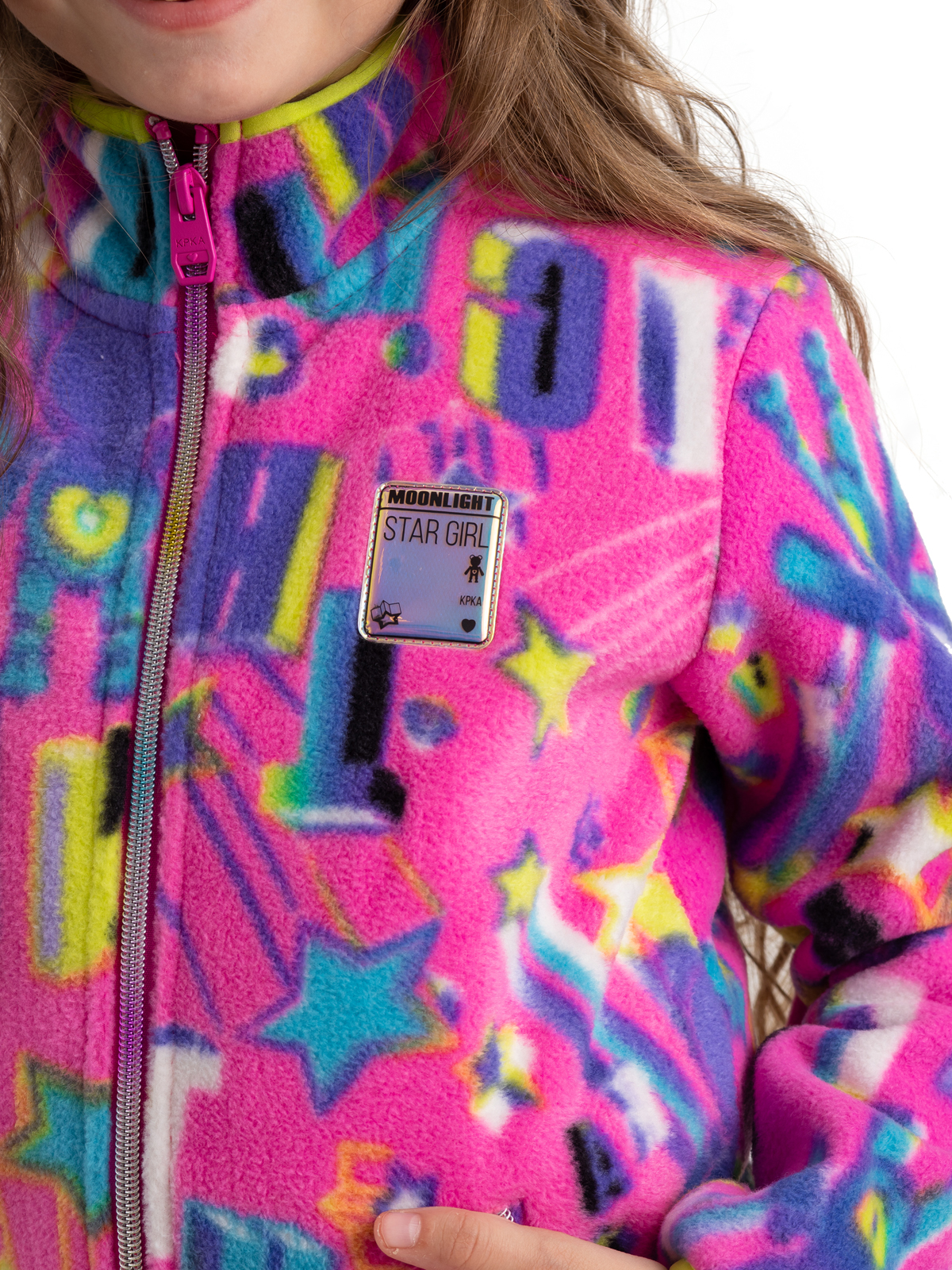Толстовка изготовлена из мягкой микрофлисовой ткани, плотностью 380 гр/м2. Теплая и легкая, не сковывает движения, флисовая толстовка идеально подойдет, как для прогулок, активного отдыха, так и при повседневной носке. Одежда из флиса отлично сохраняет тепло, почти не впитывает влагу, обладает хорошей воздухопроницаемостью, не вызывает аллергии и весьма приятна на ощупь. Воротник стойка полностью закрывает горло, предотвращает от попадания холодного ветра. Модель дополнена контрастной отстрочкой по рукавам, низу и горловине, переливающимися молниями и трендовым патчем.