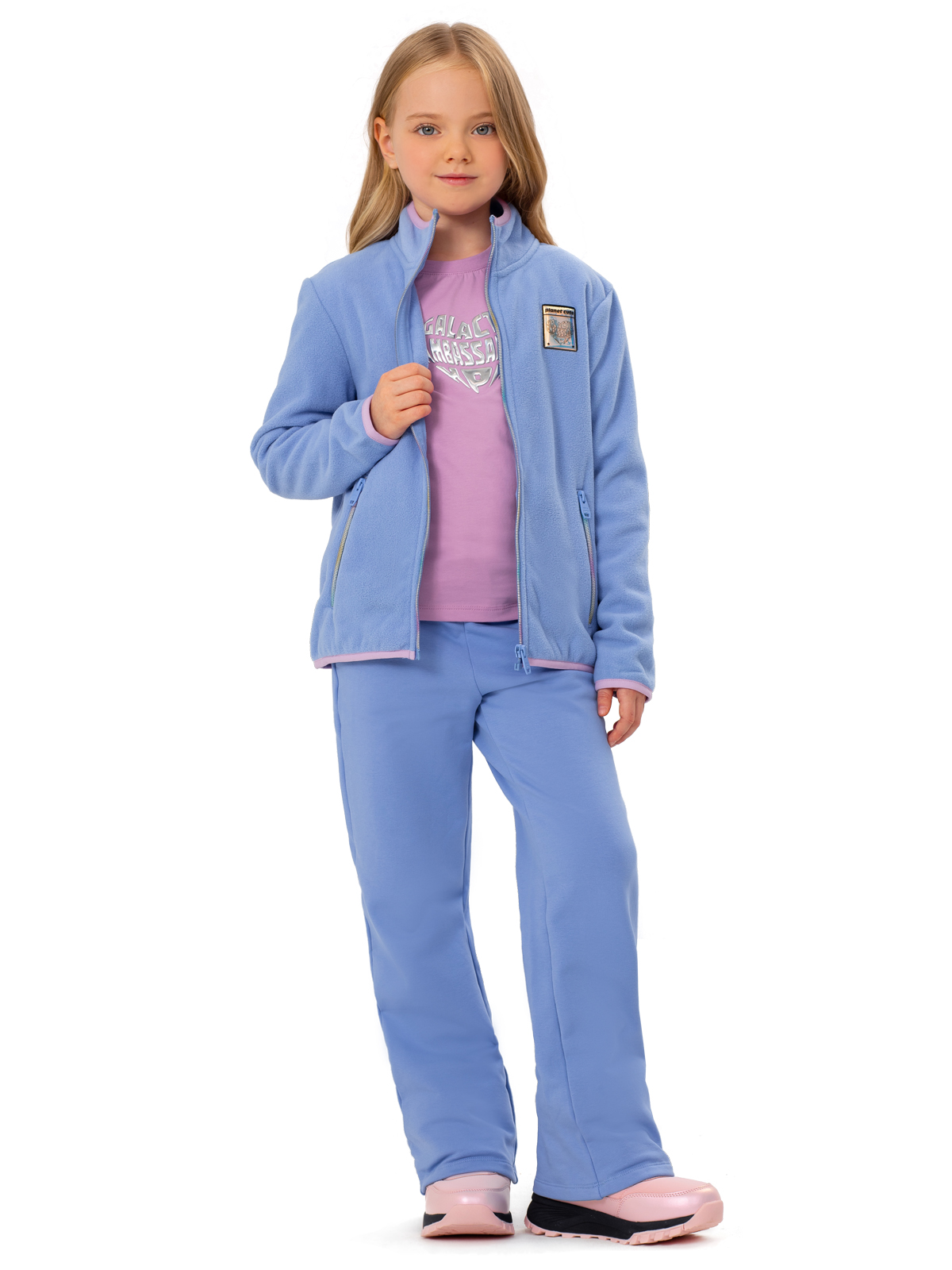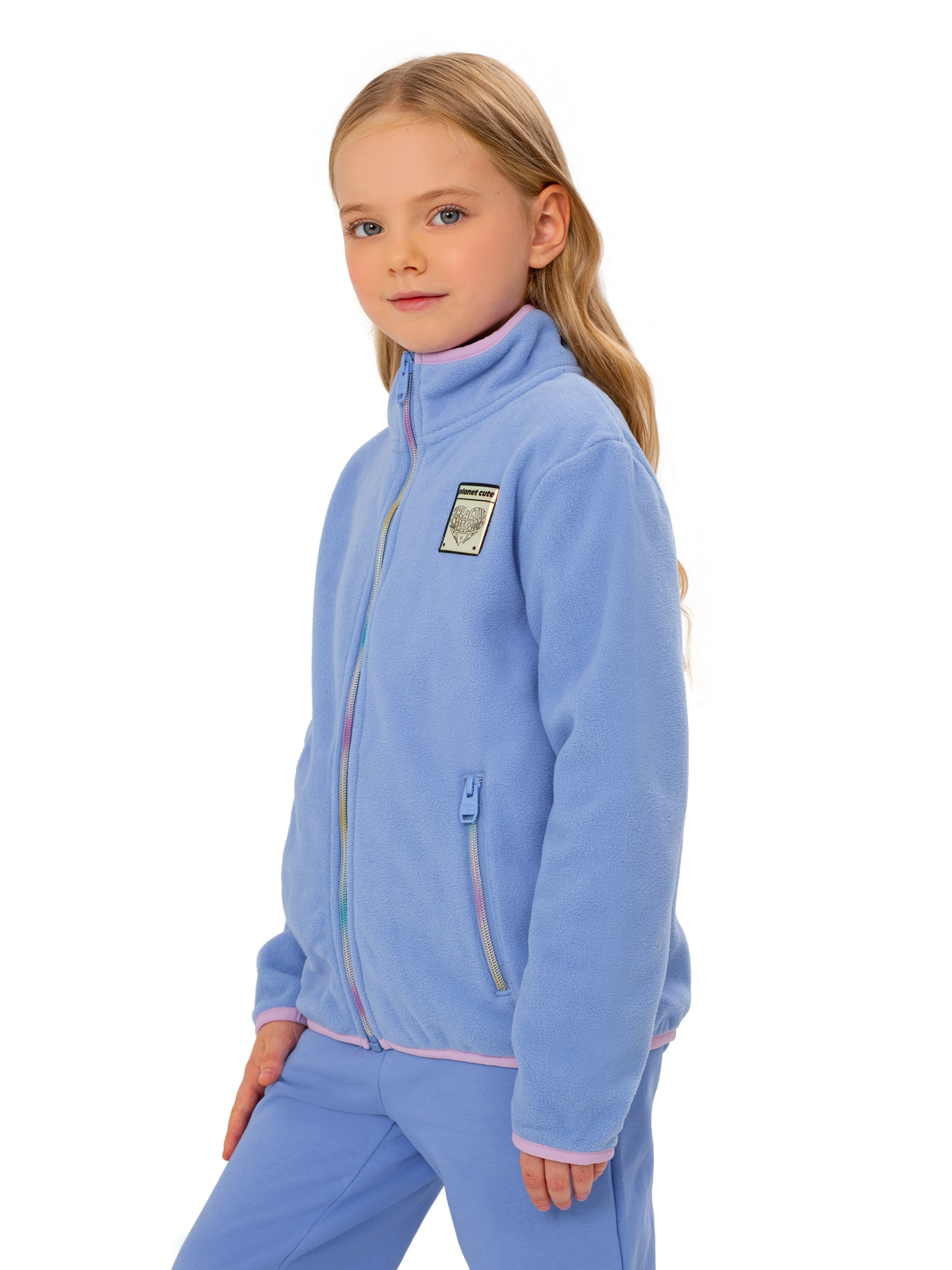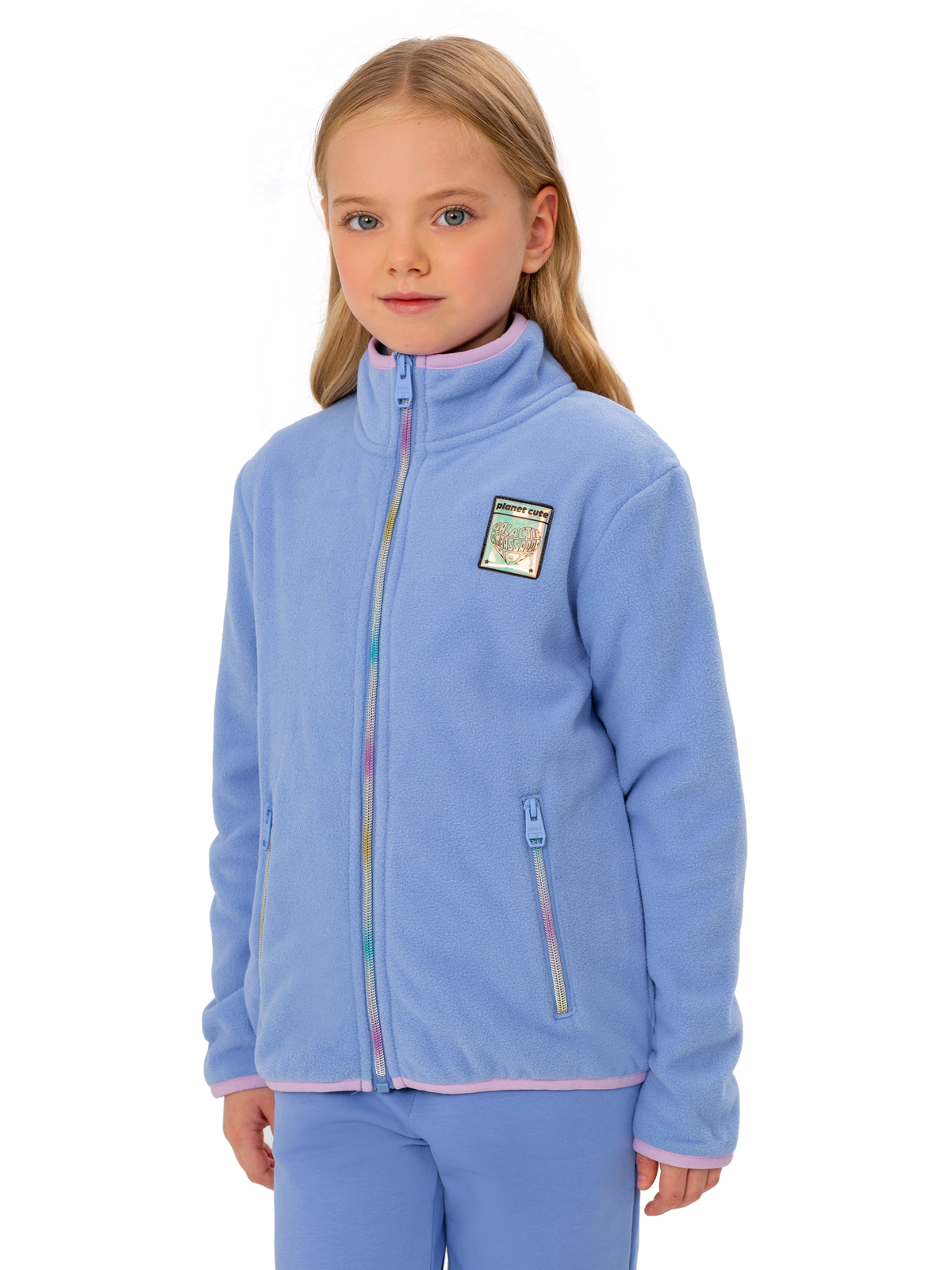 Толстовка изготовлена из мягкой микрофлисовой ткани, плотностью 230 гр/м2. Теплая и легкая, не сковывает движения, флисовая толстовка идеально подойдет, как для прогулок, активного отдыха, так и при повседневной носке. Одежда из флиса отлично сохраняет тепло, почти не впитывает влагу, обладает хорошей воздухопроницаемостью, не вызывает аллергии и весьма приятна на ощупь. Воротник стойка полностью закрывает горло, предотвращает от попадания холодного ветра. Модель дополнена контрастной отстрочкой по рукавам, низу и горловине, переливающимися молниями и трендовым патчем.